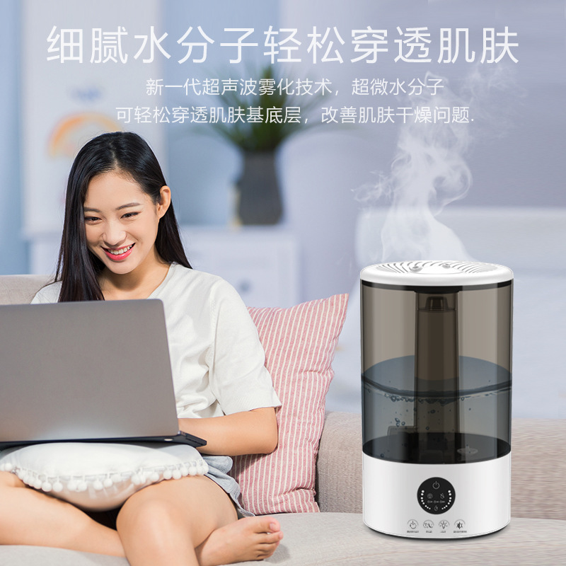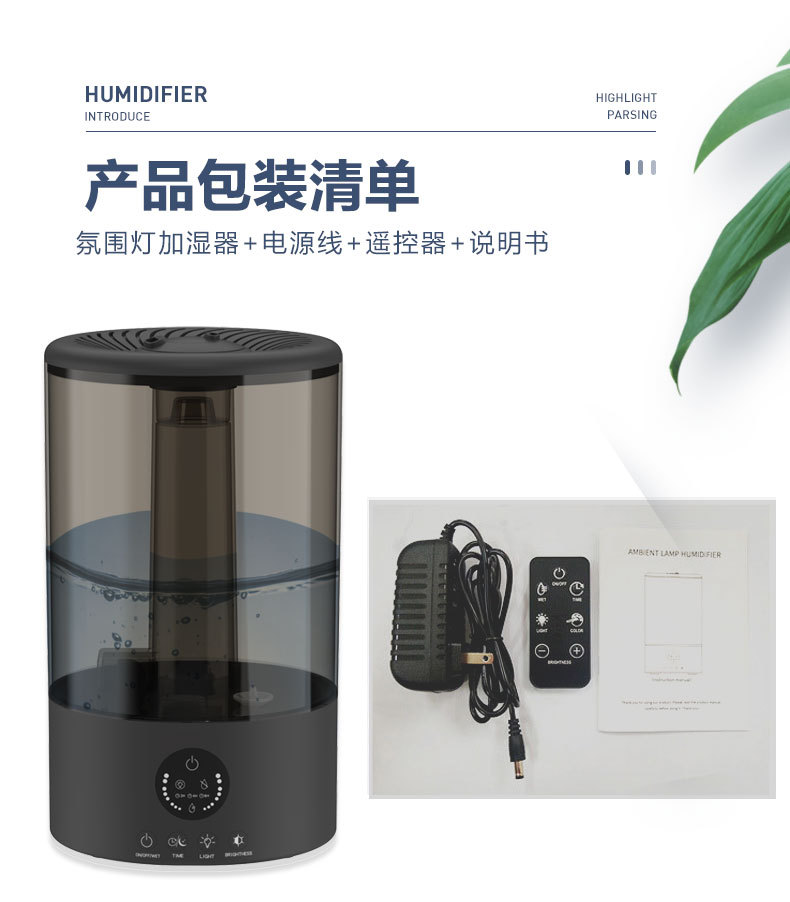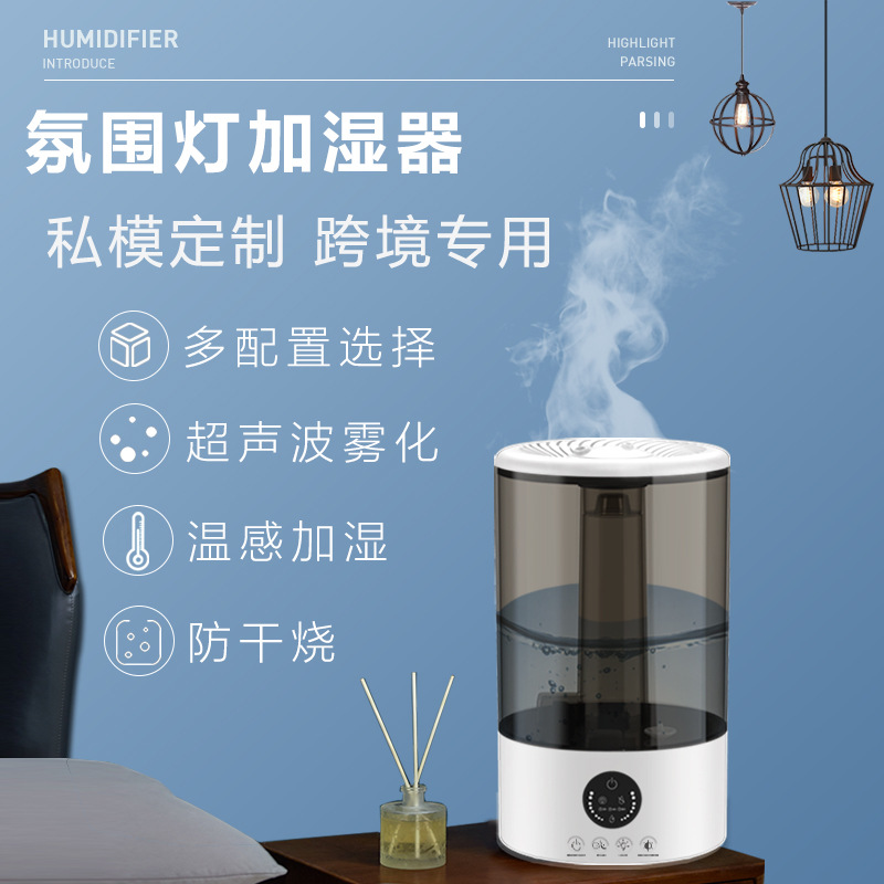 外贸跨境双喷雾大容量加湿器超声波家用氛围灯空气加湿器3L厂家