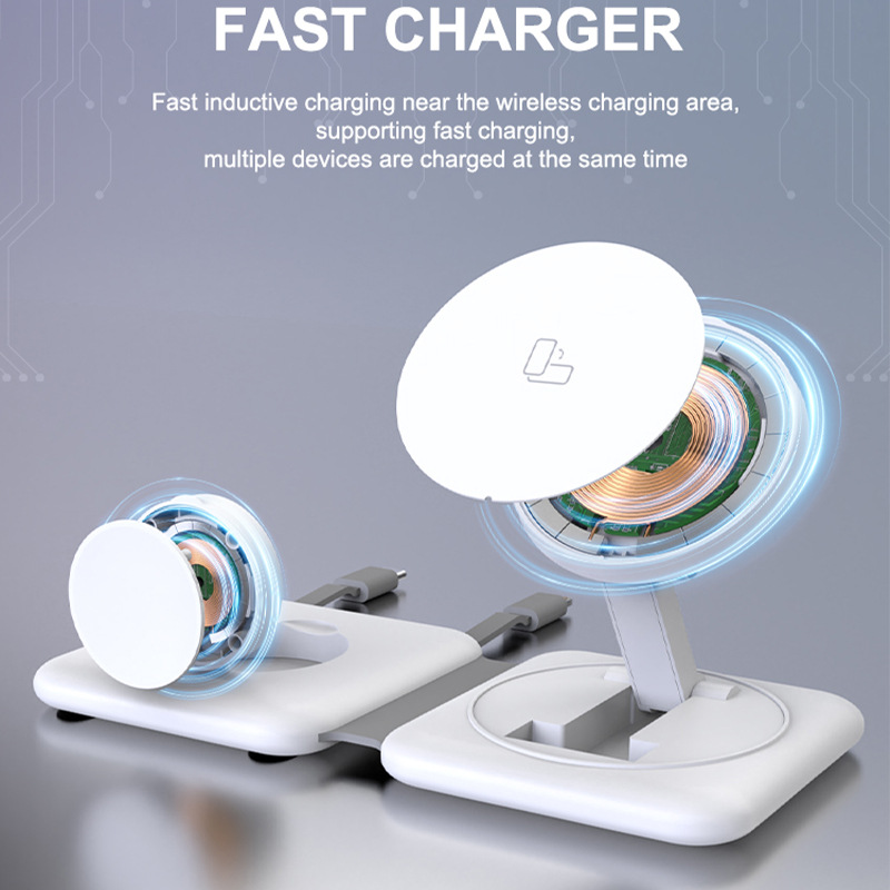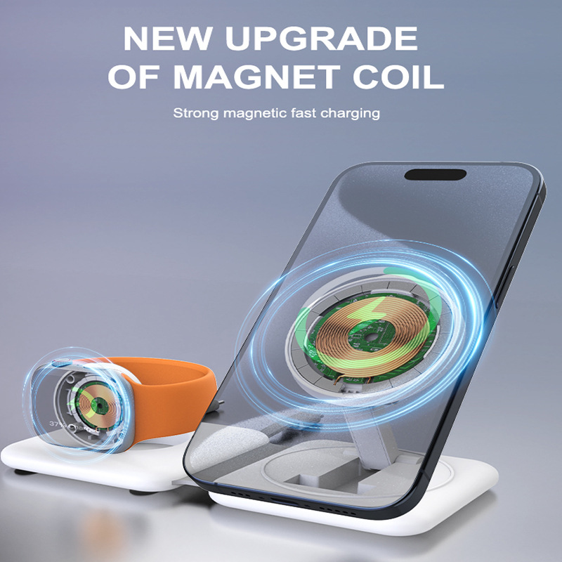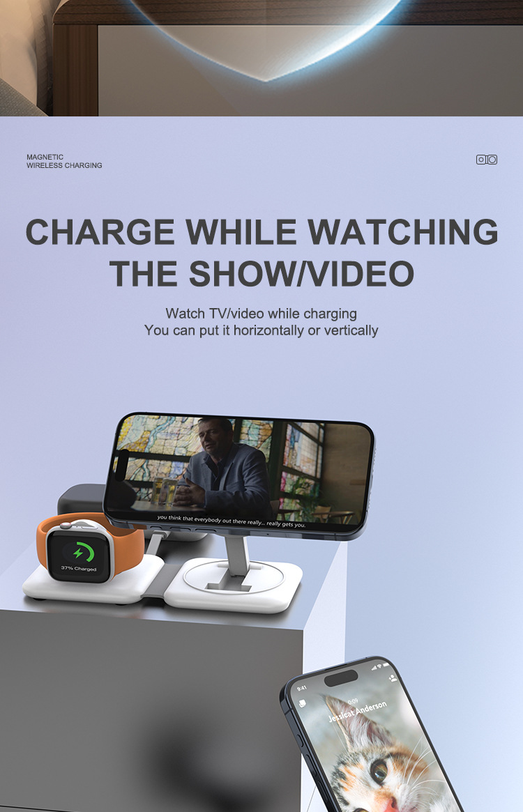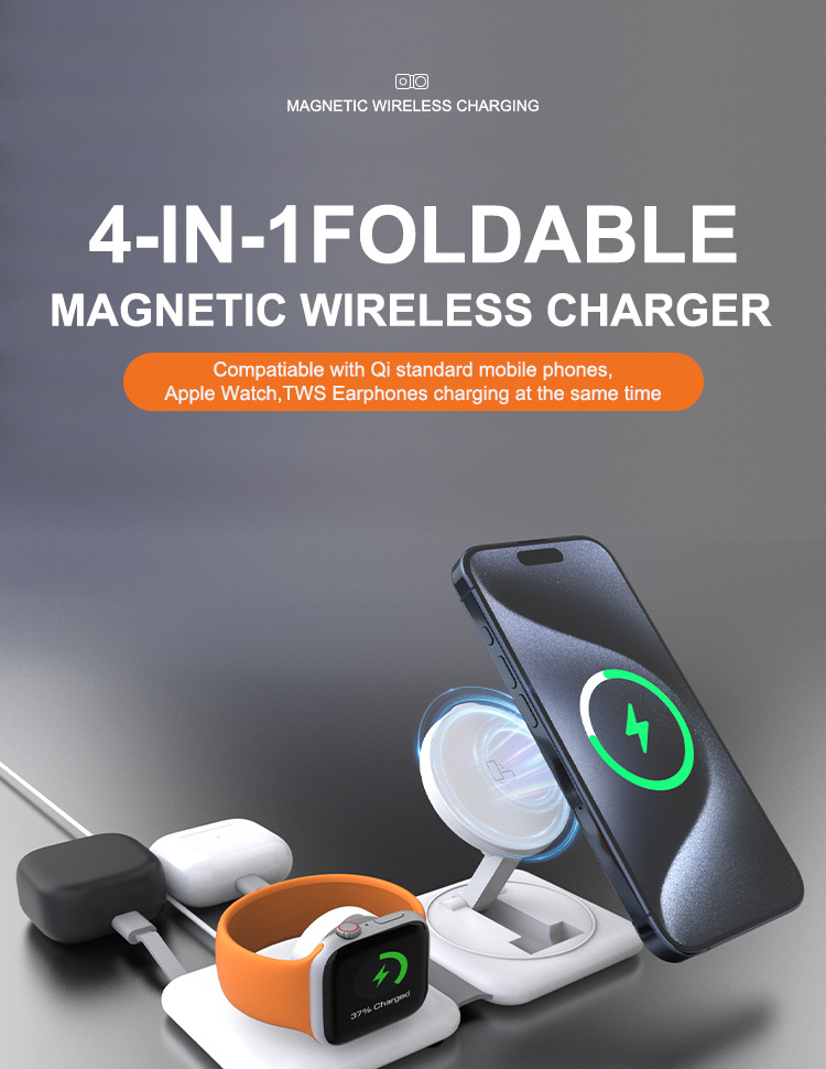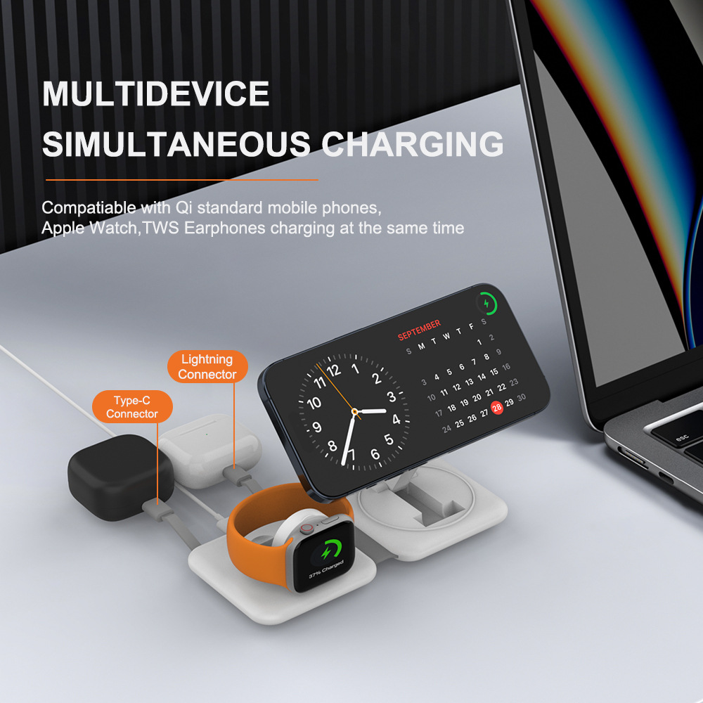 桌面磁吸快充支架 三合一四合一 适用苹果手机手表耳机无线充电器