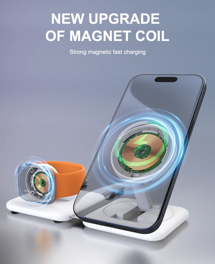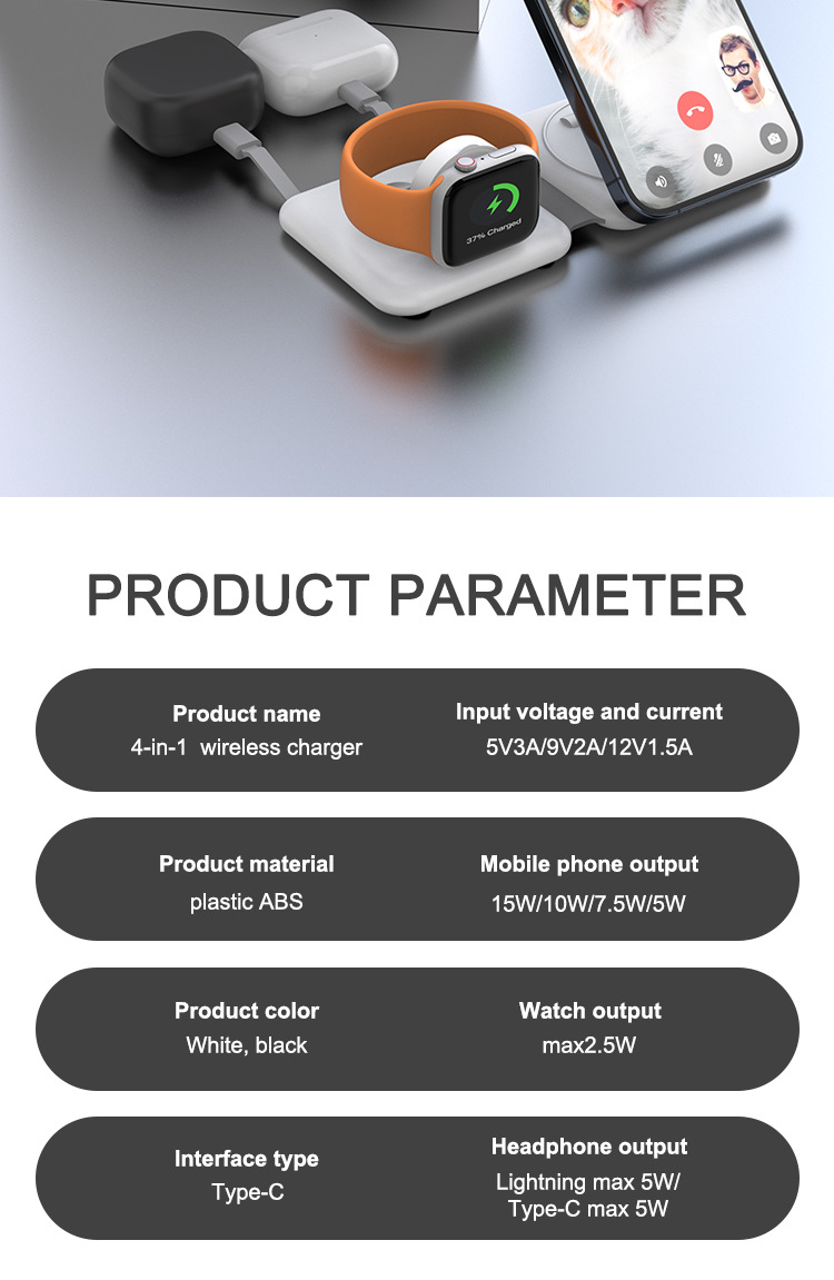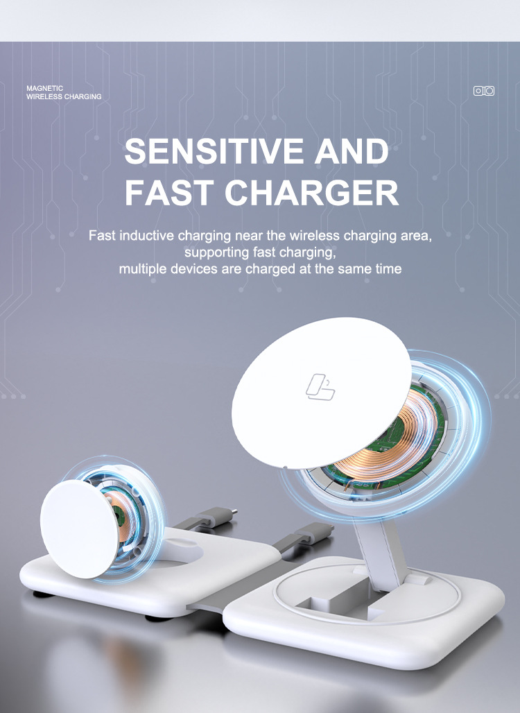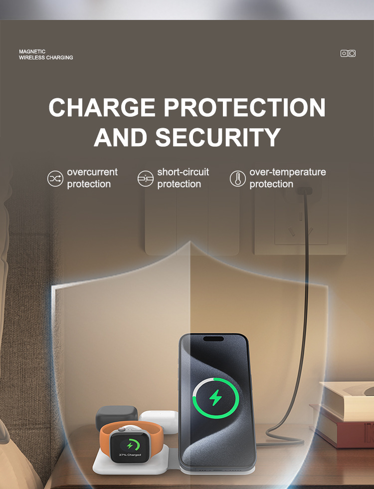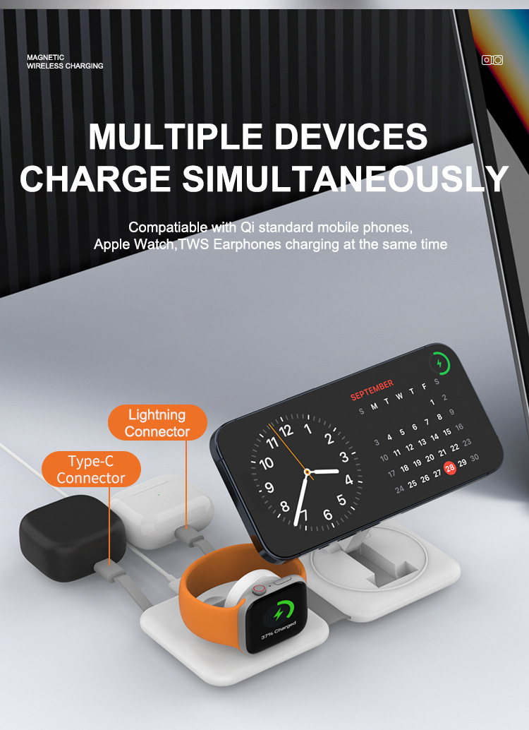 桌面磁吸快充支架 三合一四合一 适用苹果手机手表耳机无线充电器