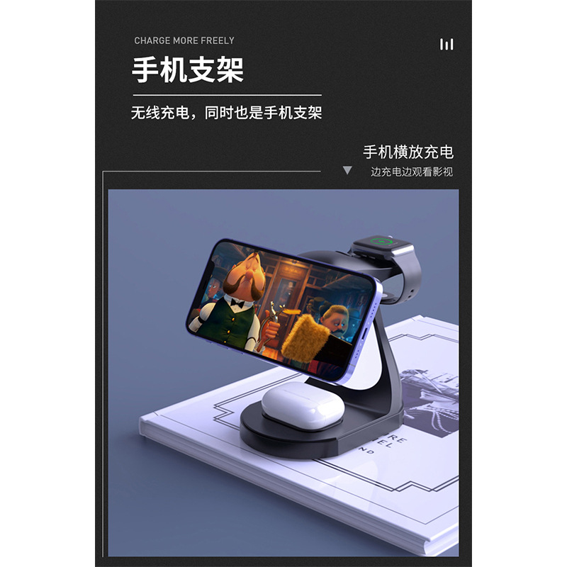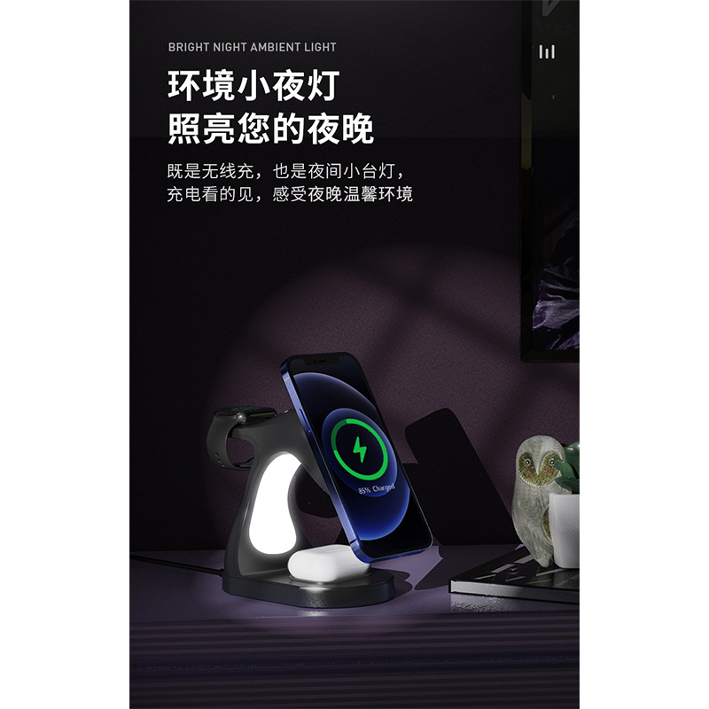 新款磁吸四合一无线充可调节支架+小夜灯桌面手机无线充电器12/13