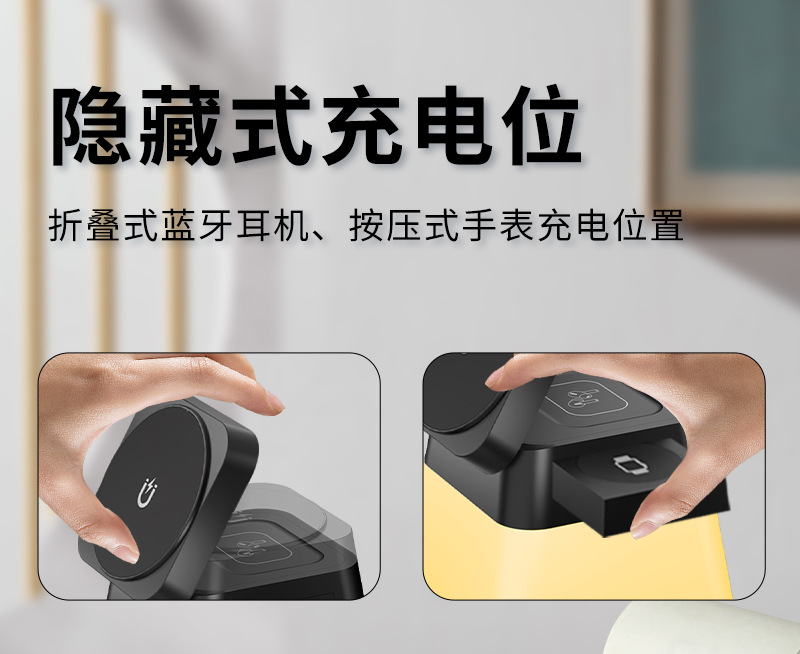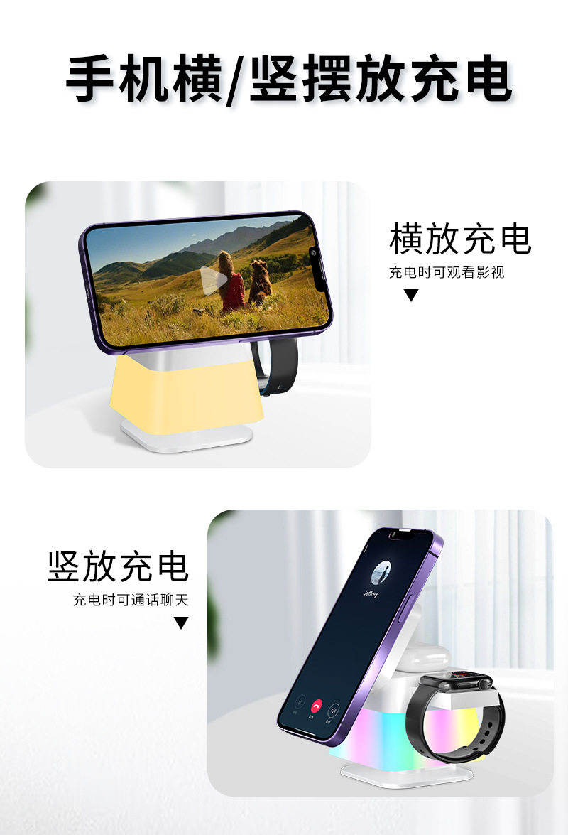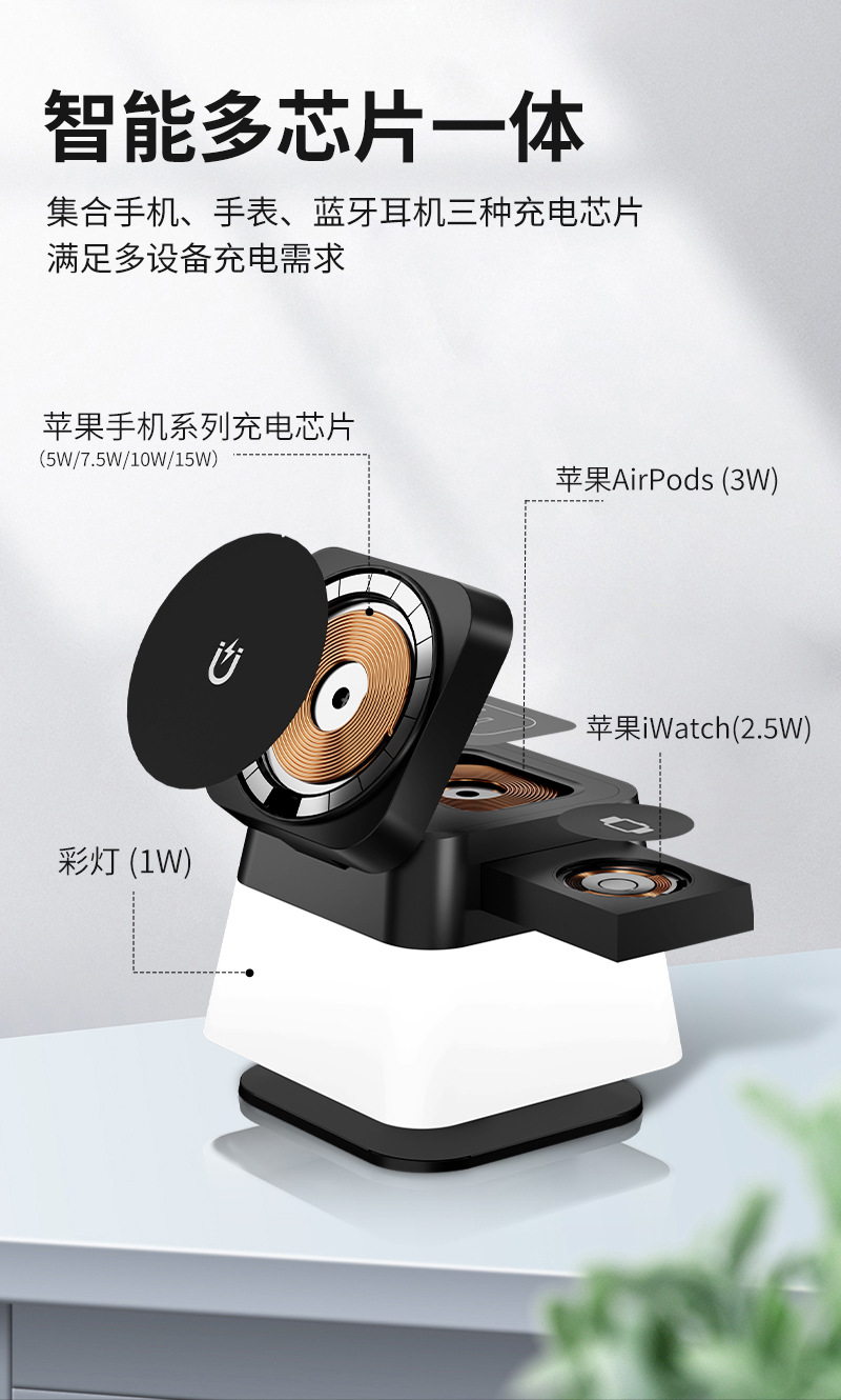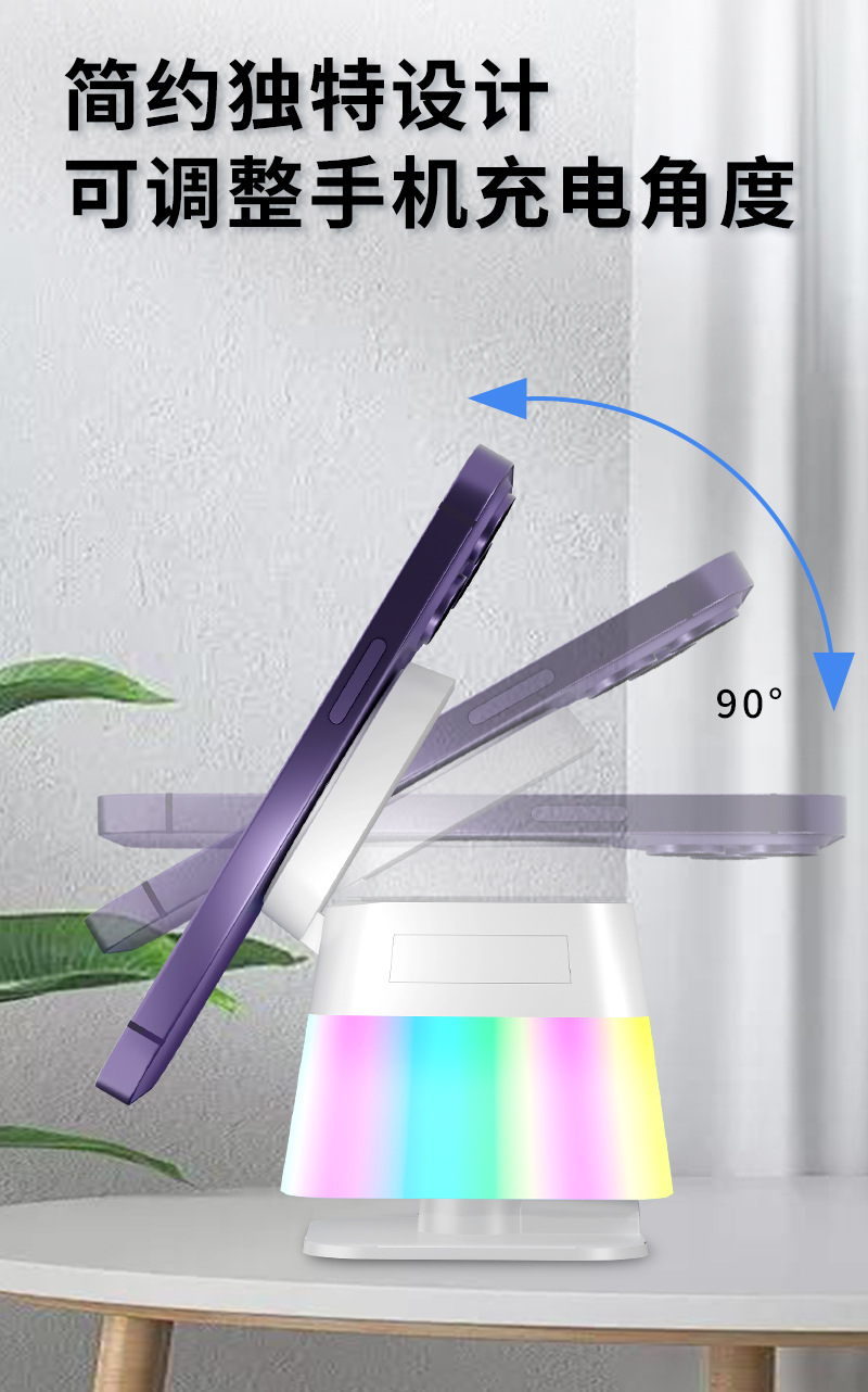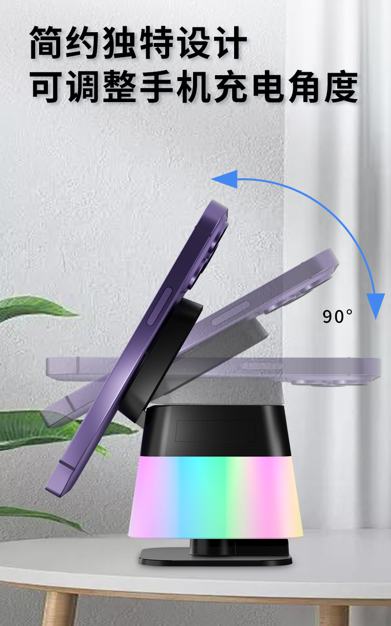 新款 磁吸折叠无线充 360°可旋转磁吸无线充电器小夜灯手机支架