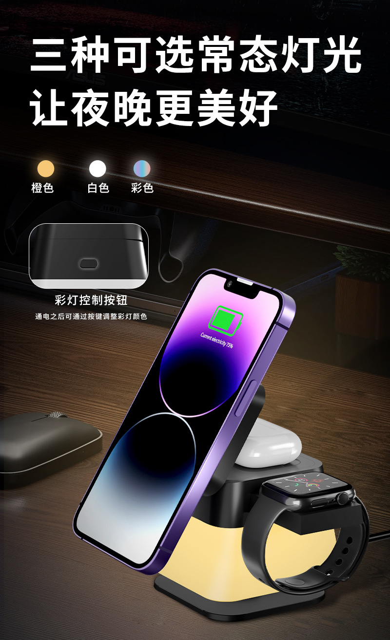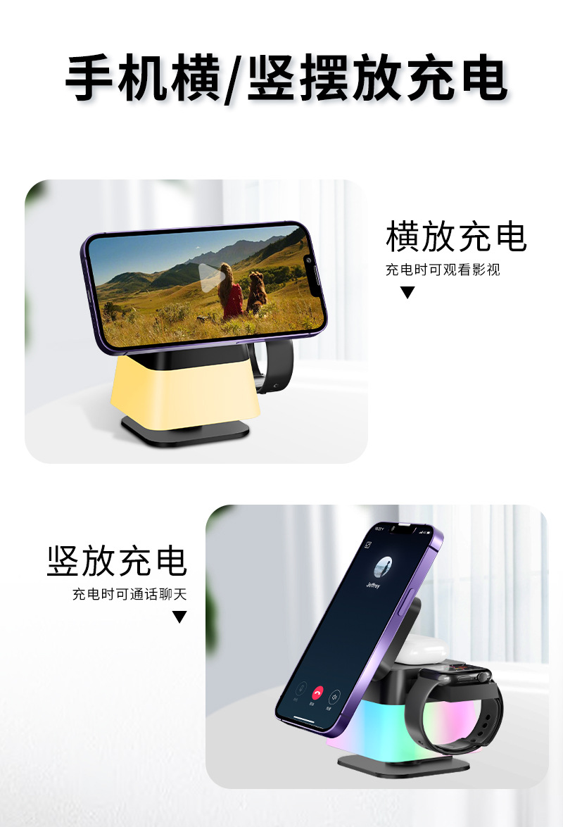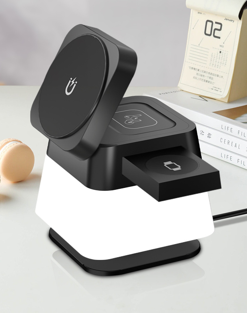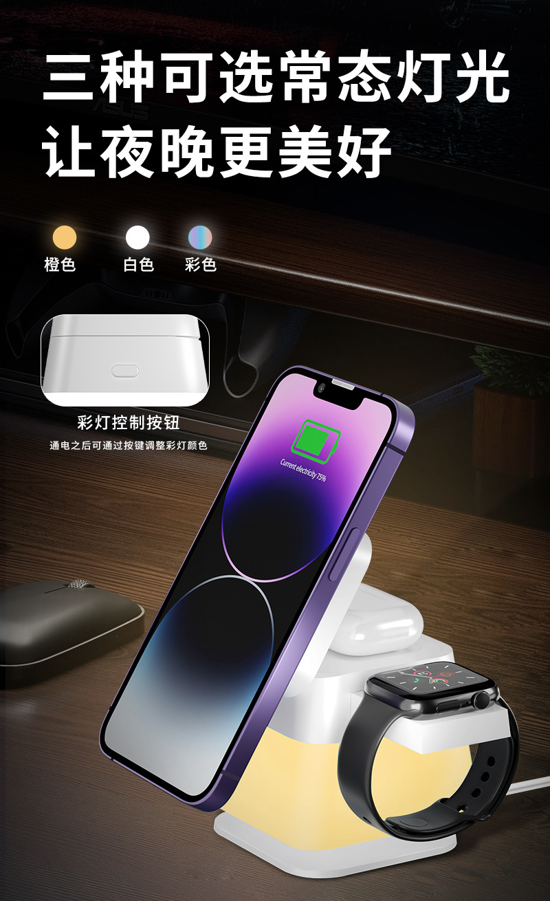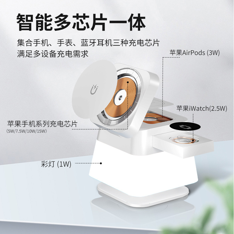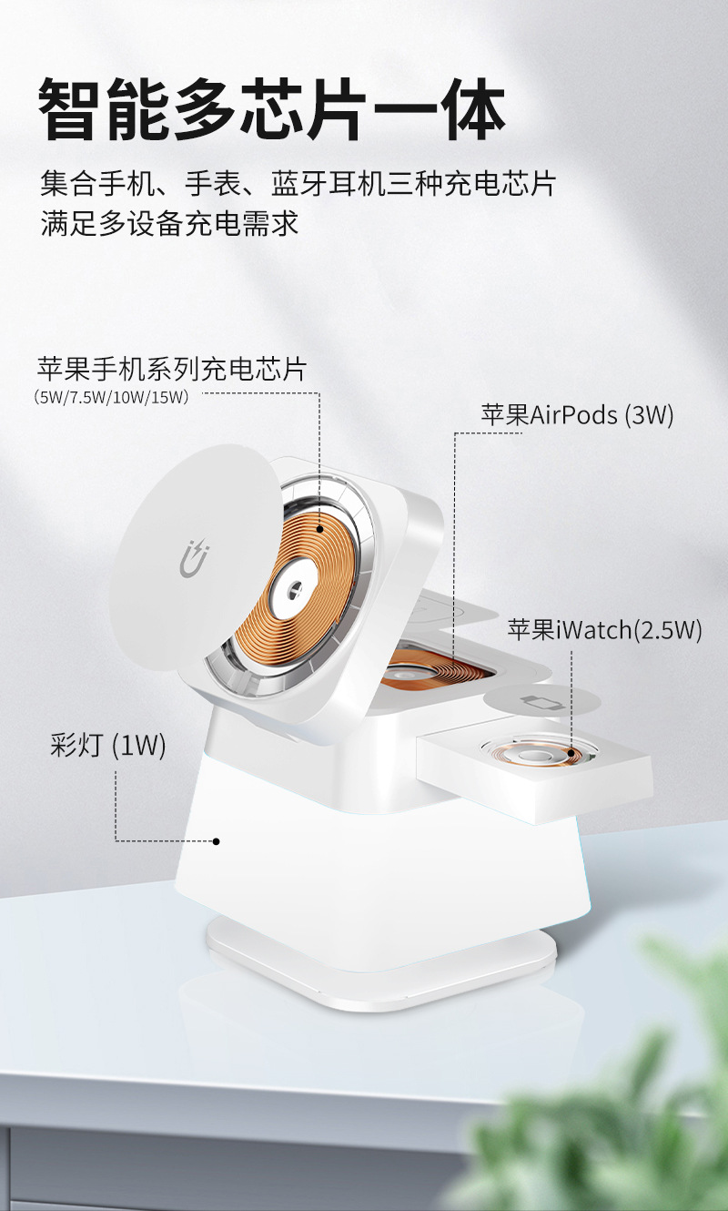 新款 磁吸折叠无线充 360°可旋转磁吸无线充电器小夜灯手机支架