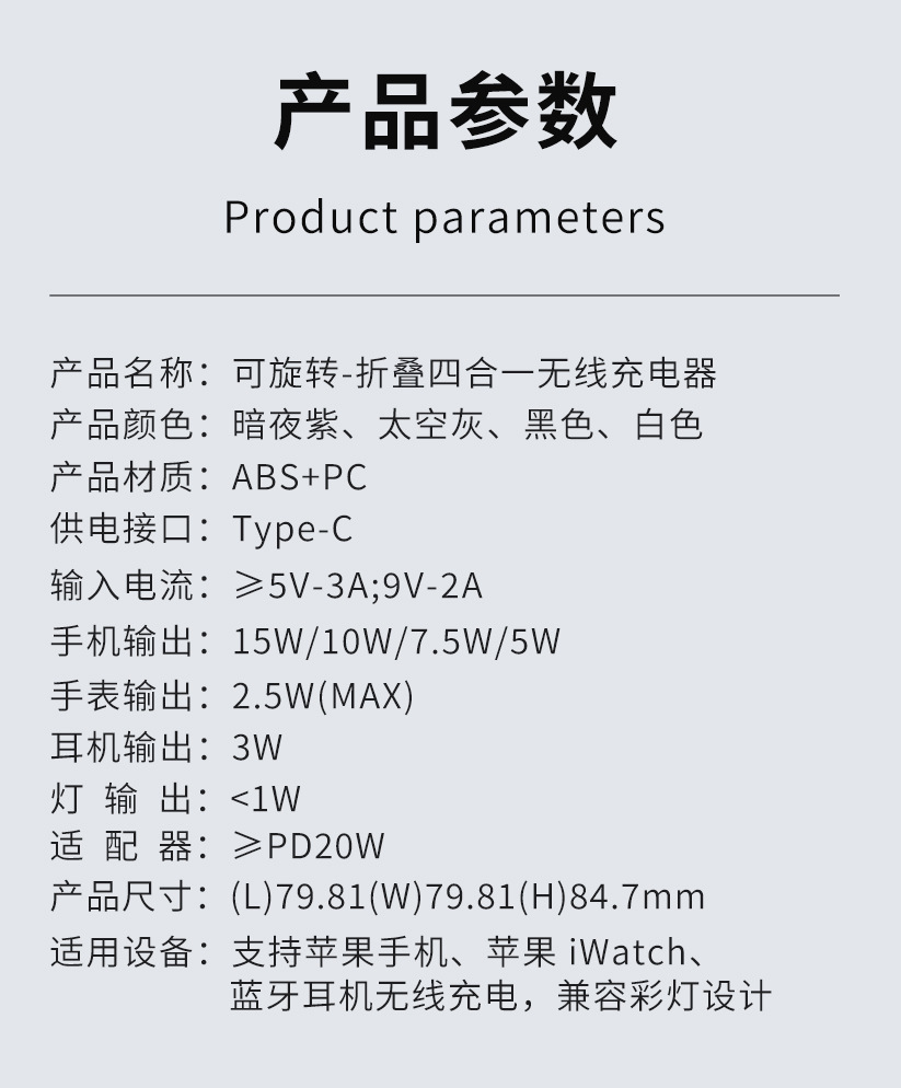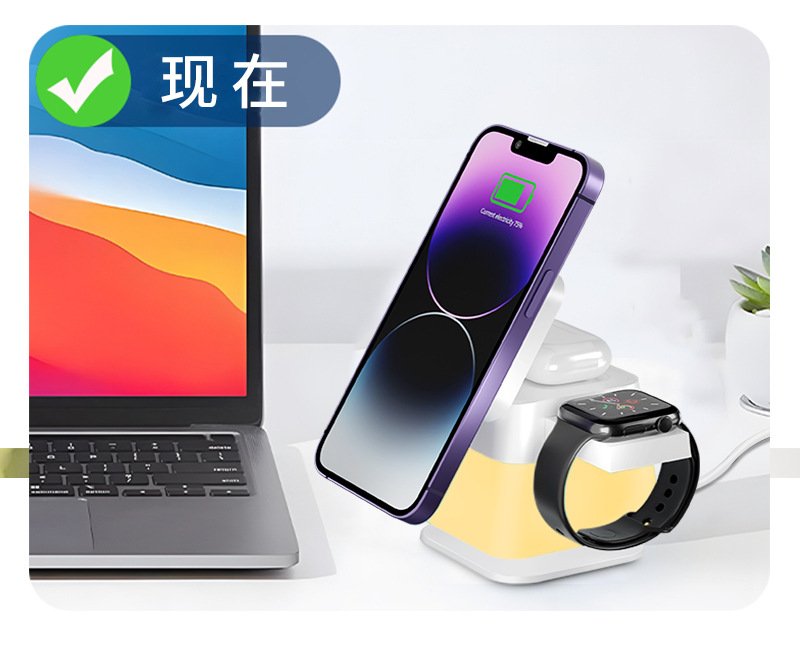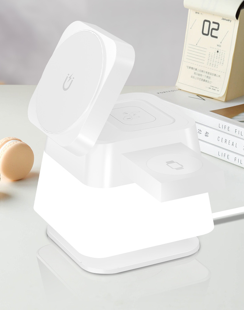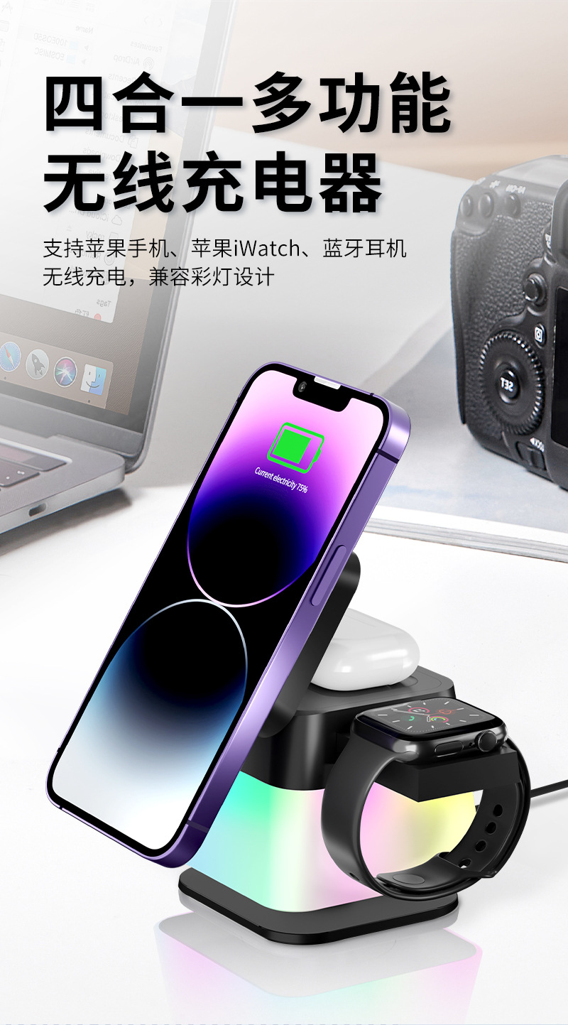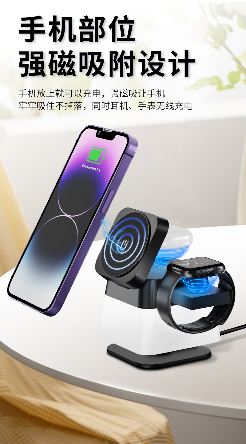 新款 磁吸折叠无线充 360°可旋转磁吸无线充电器小夜灯手机支架