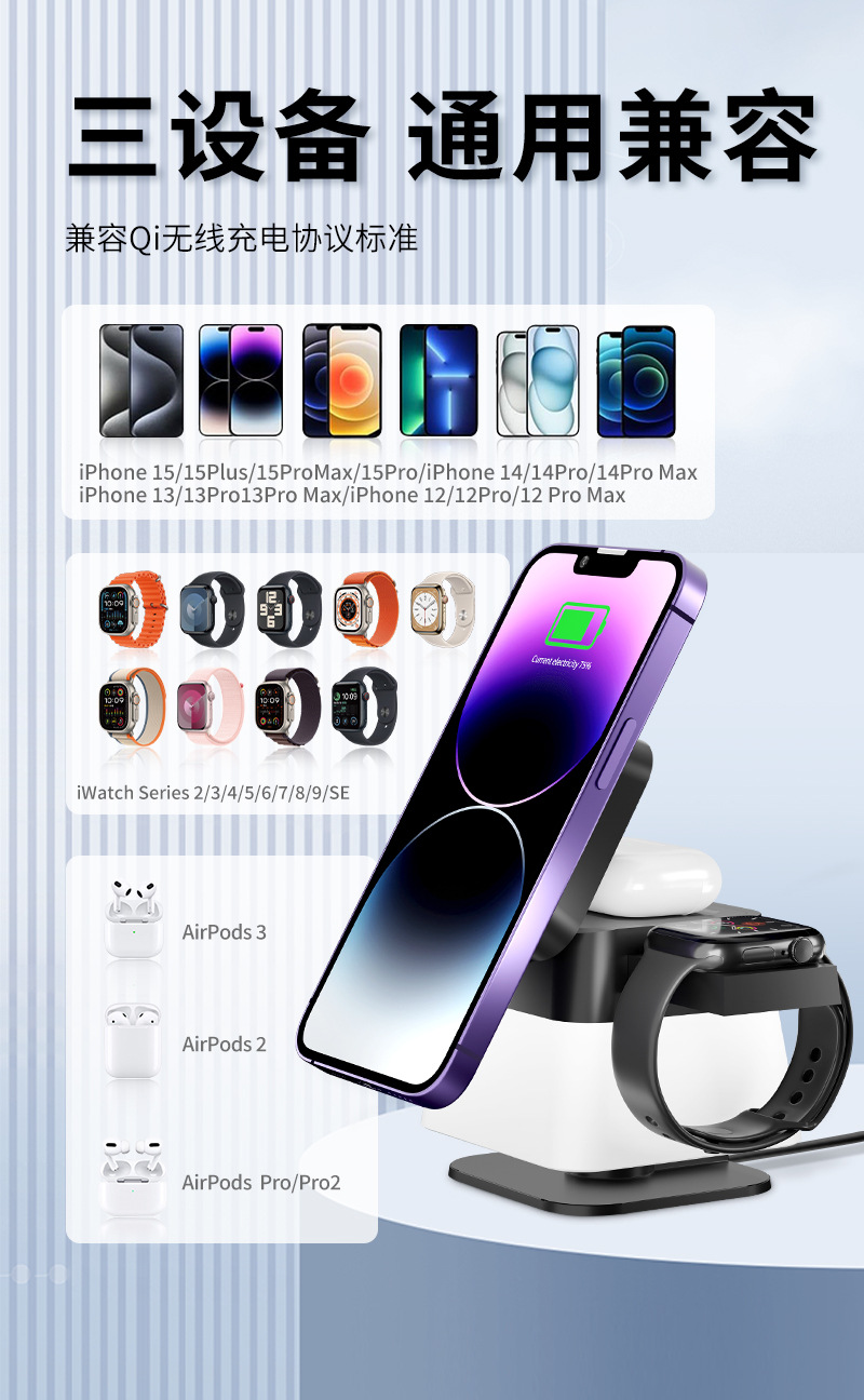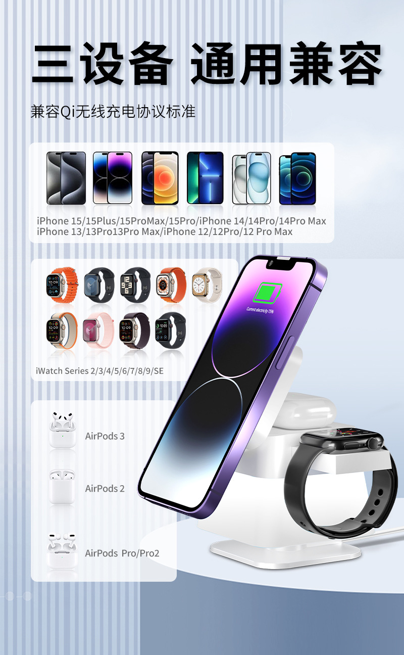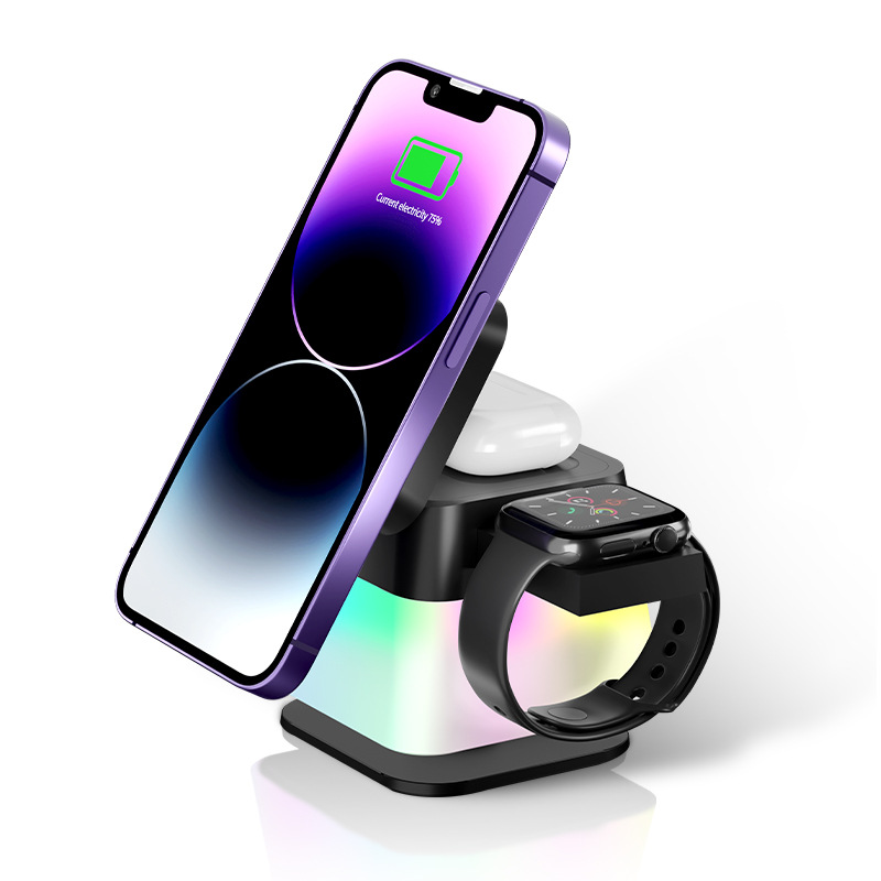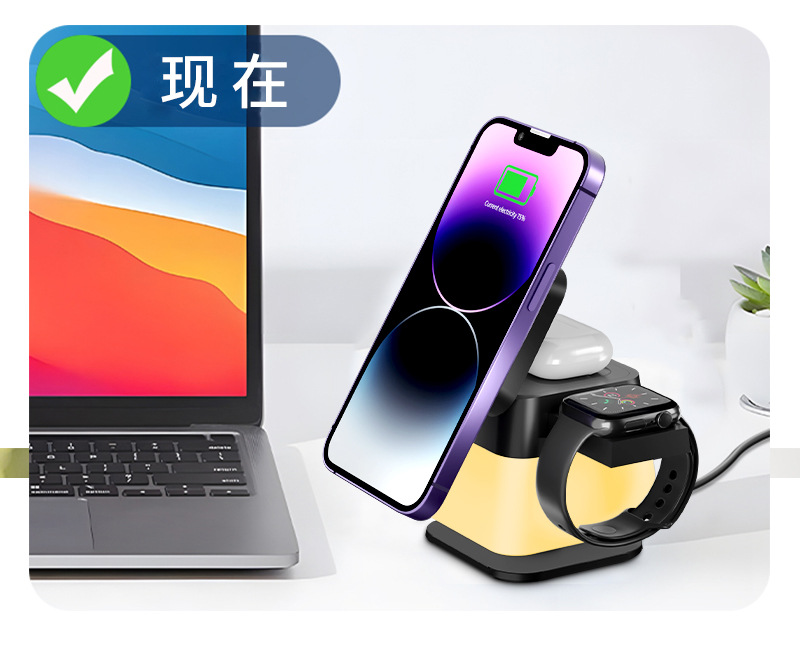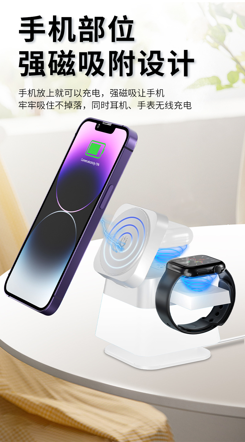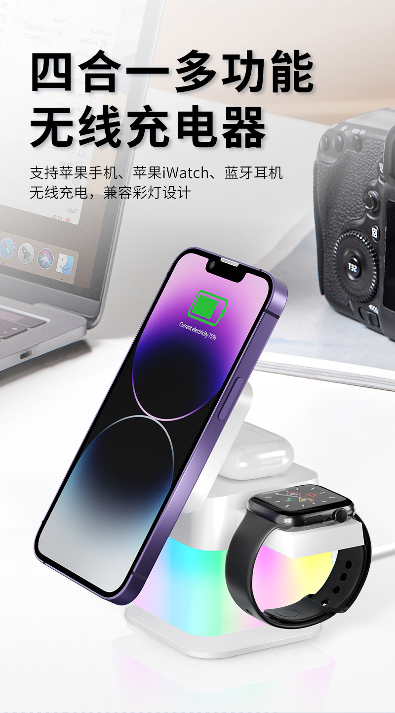 新款 磁吸折叠无线充 360°可旋转磁吸无线充电器小夜灯手机支架