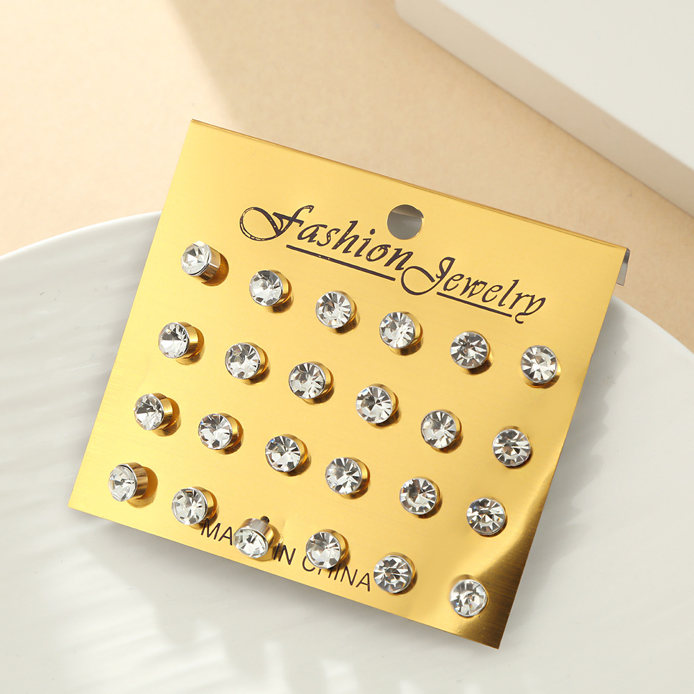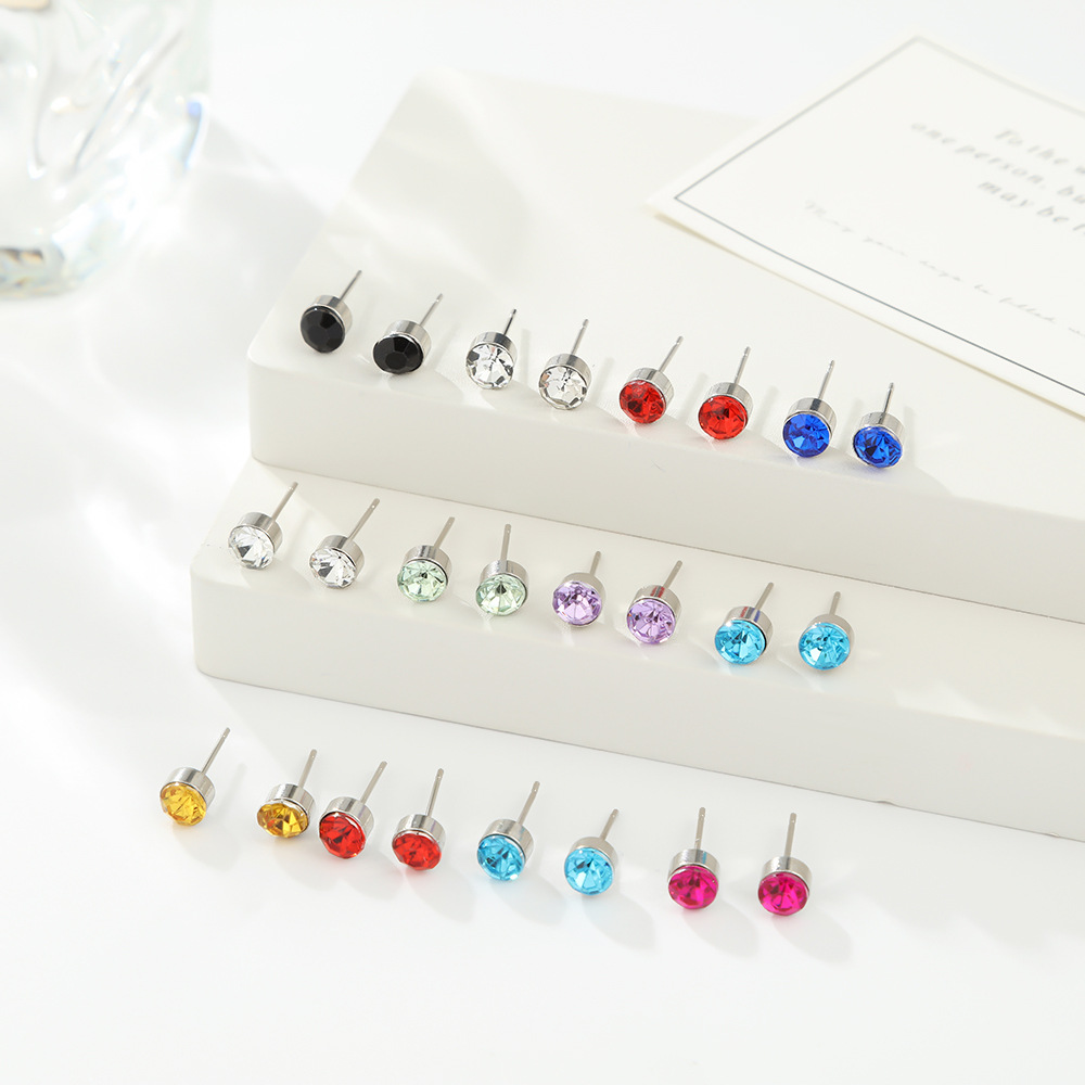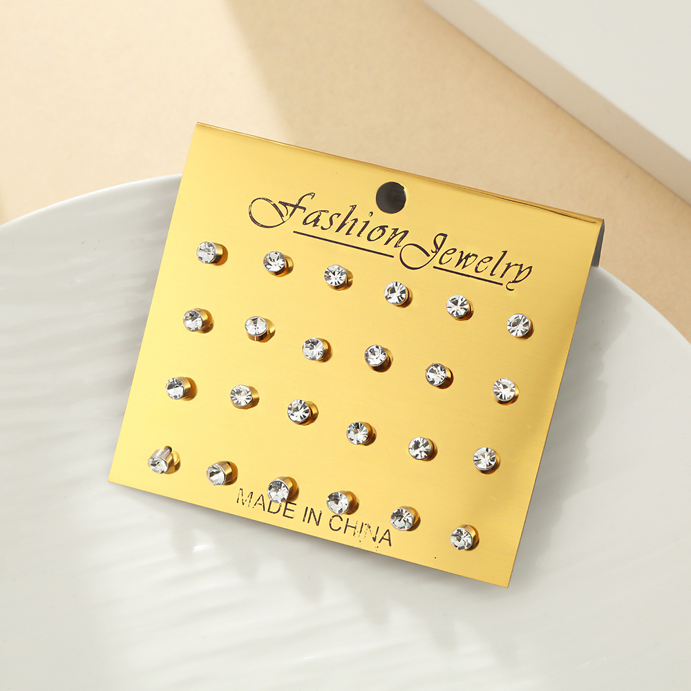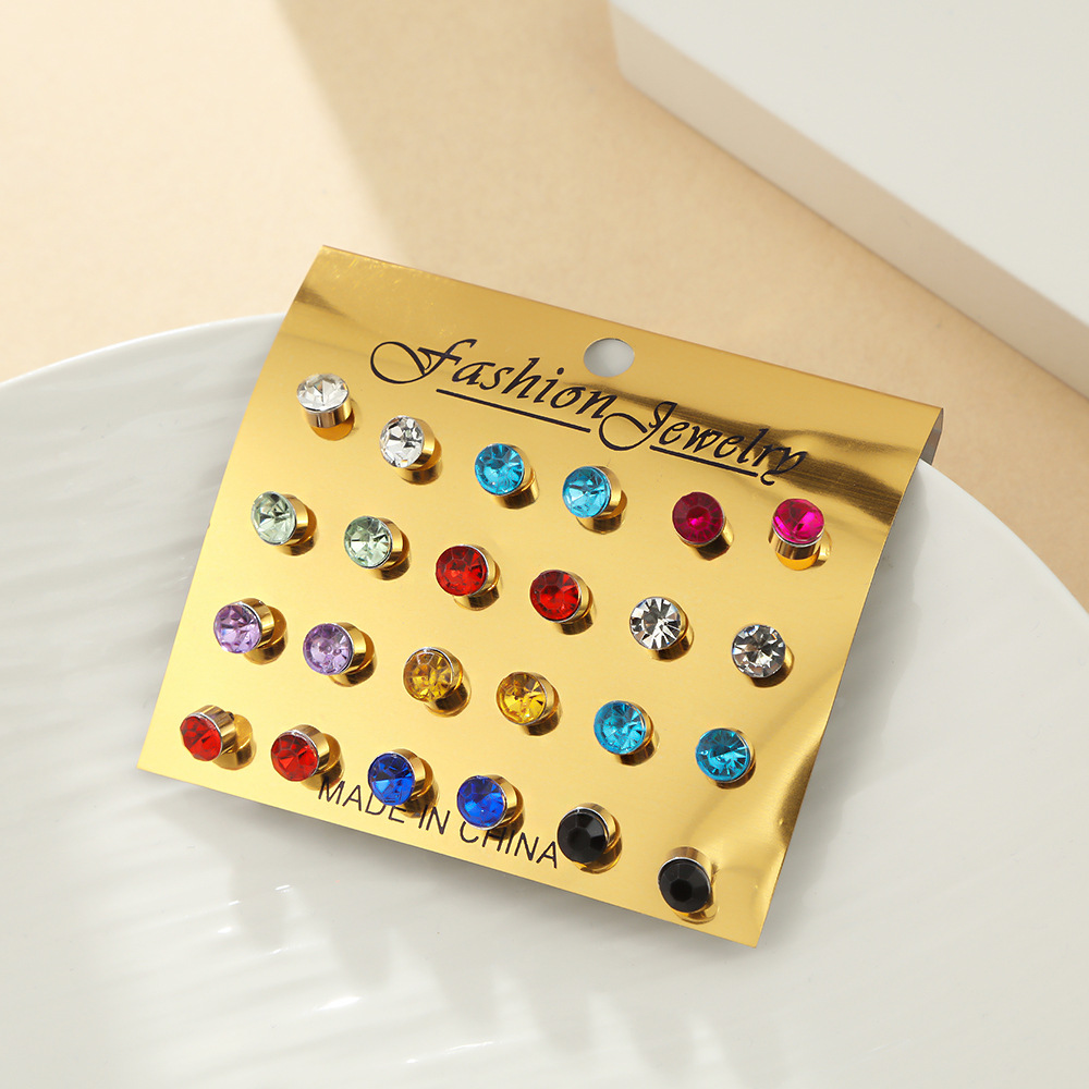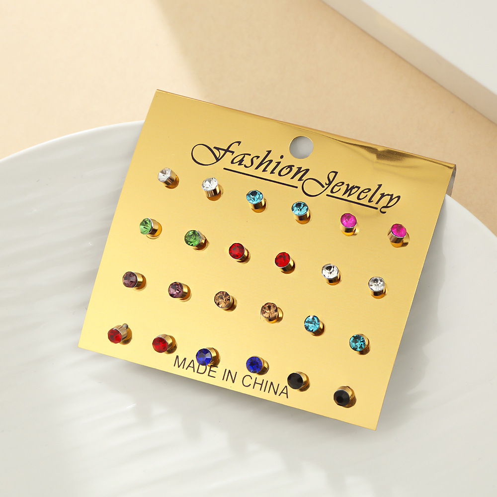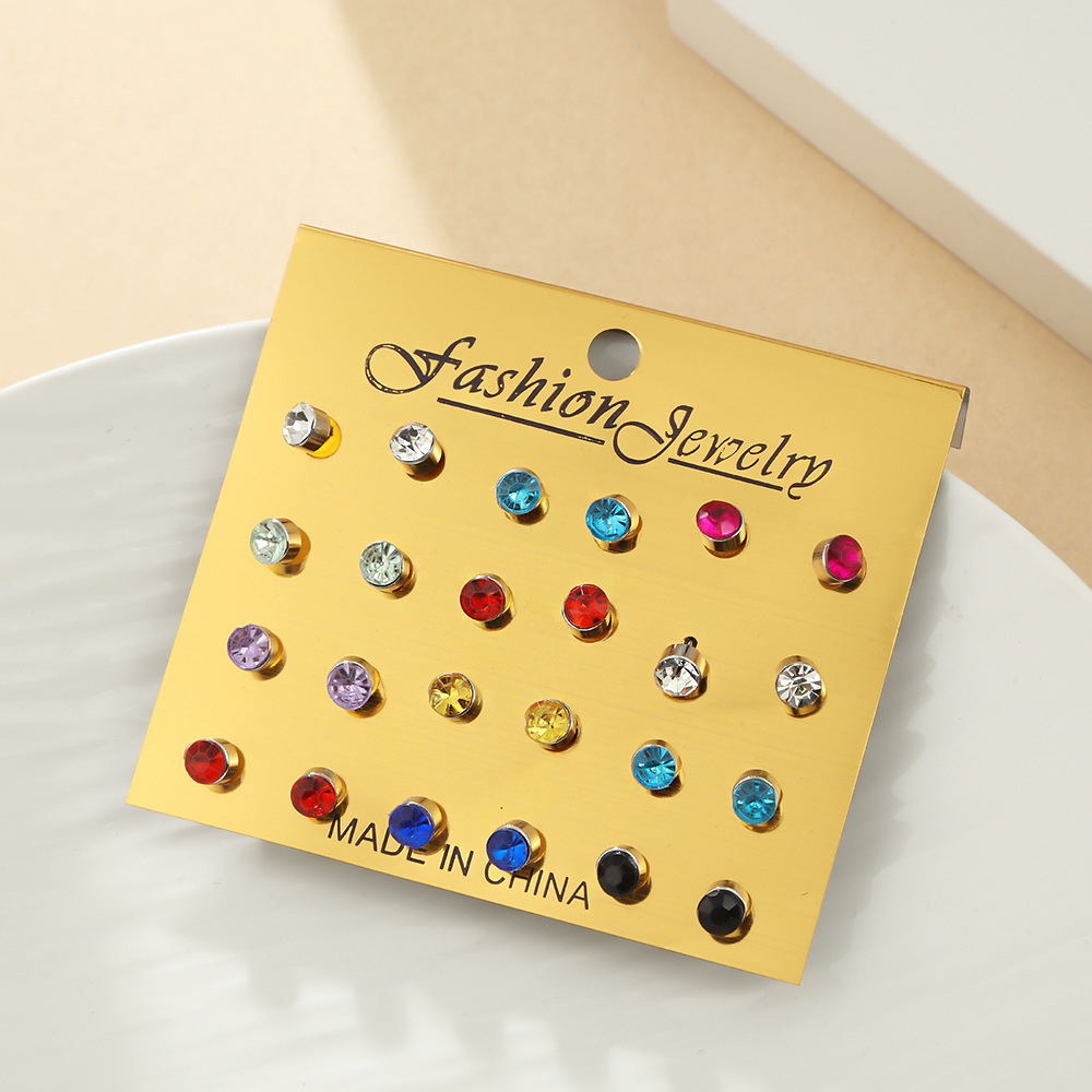 跨境镶钻耳钉套装 韩版彩钻耳饰 彩色锆石一卡式多色耳钉装饰品
