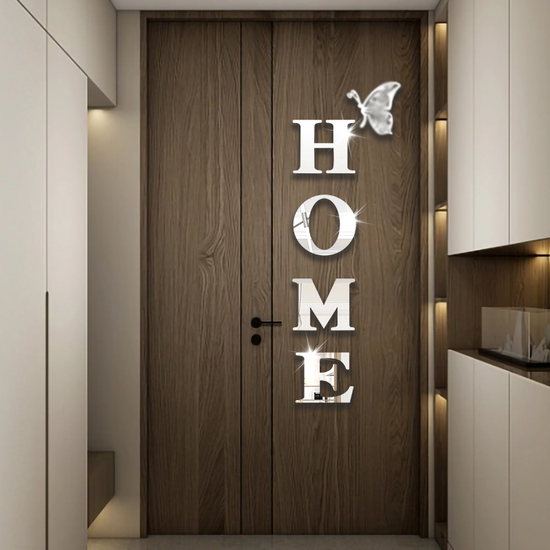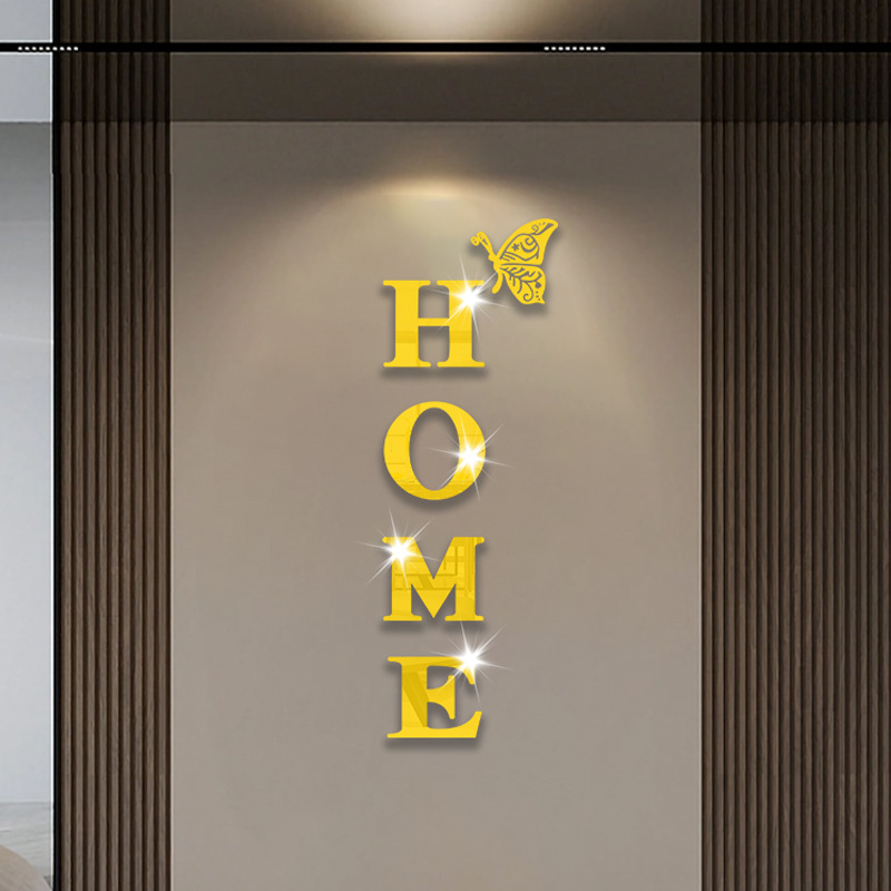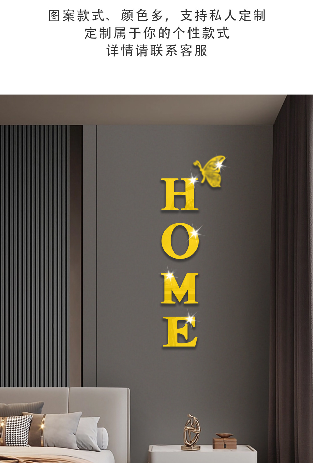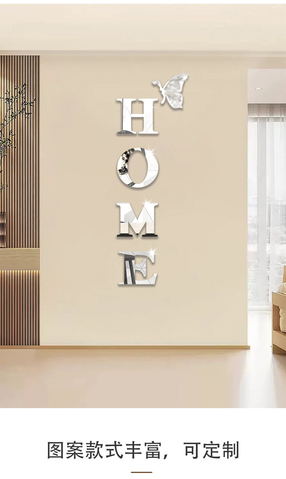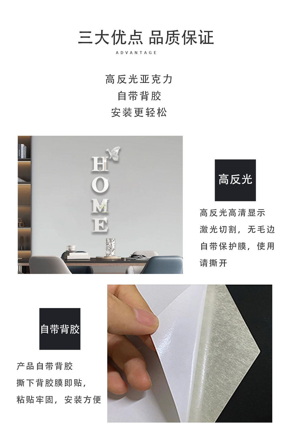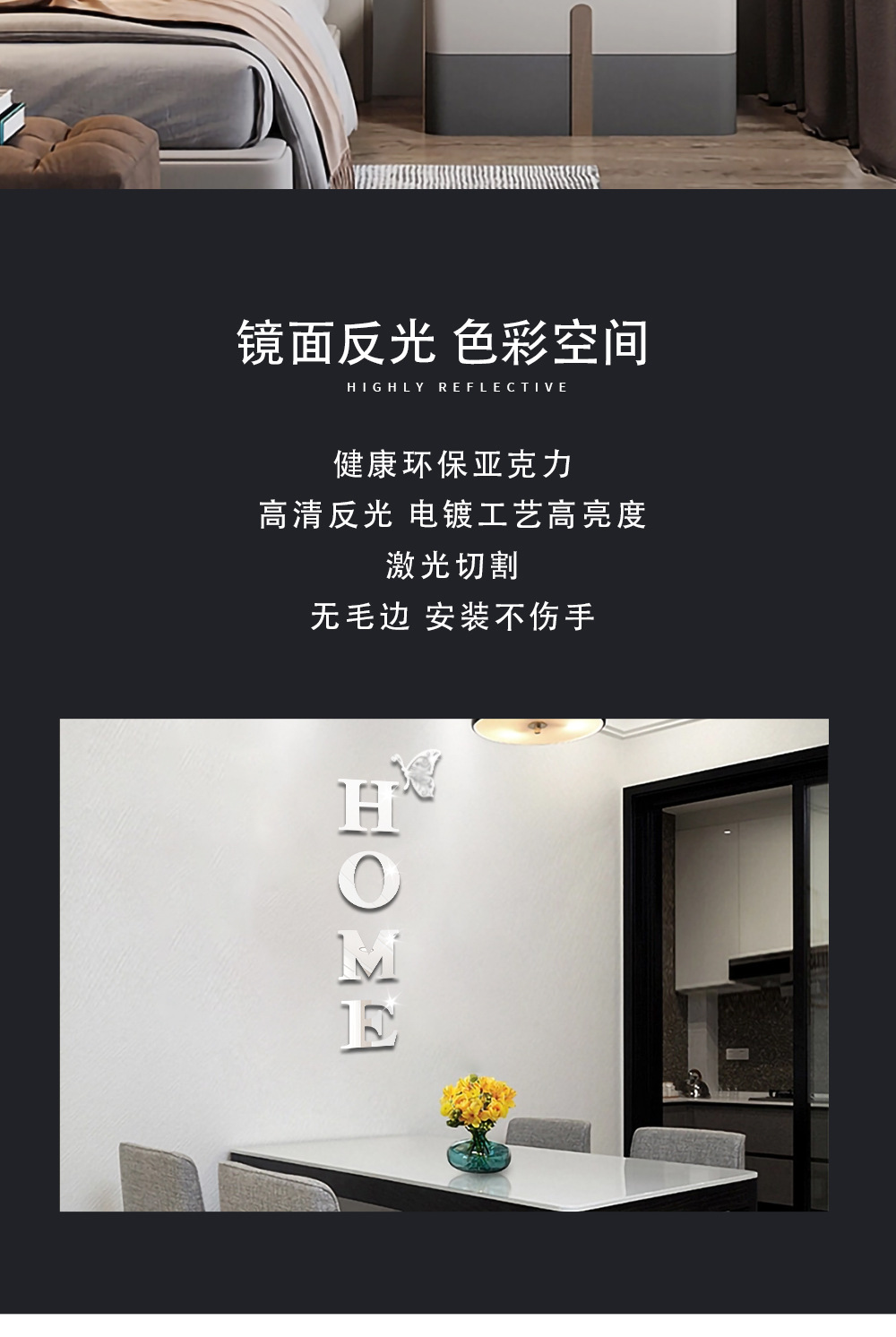跨境专供亚克力镜面墙贴HOME蝴蝶多边形自粘带背胶组合装饰软镜子