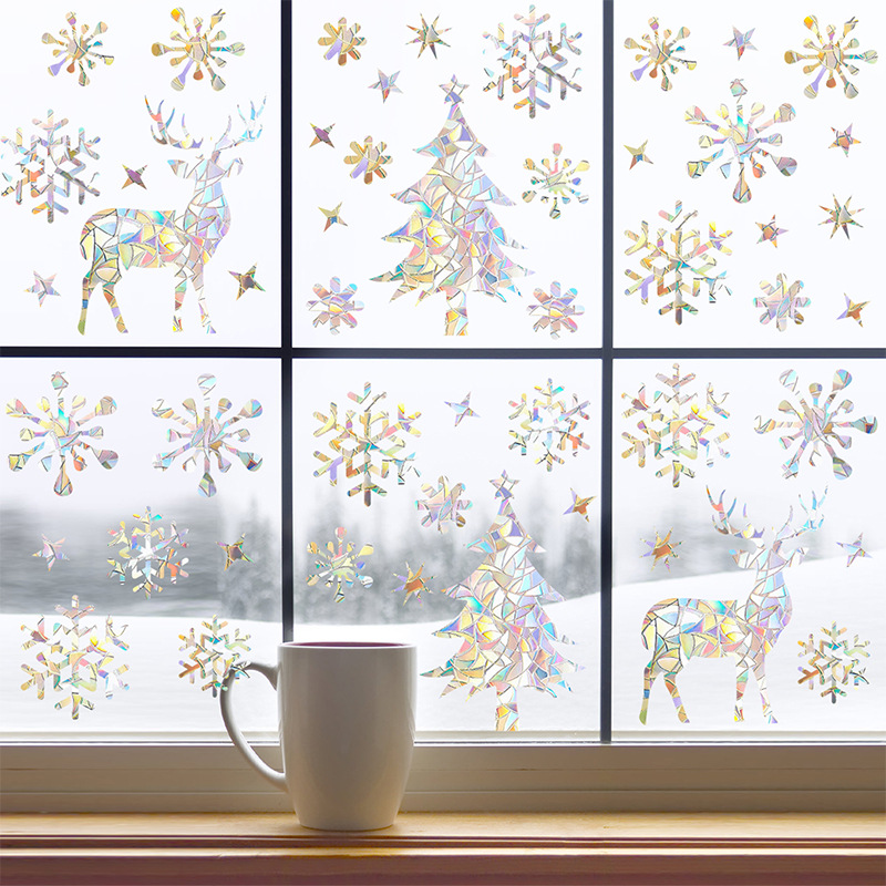 镭射玻璃纸川豪阳光捕手炫彩窗贴彩虹棱镜圣诞雪花玻璃贴防撞窗贴