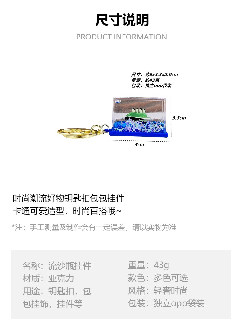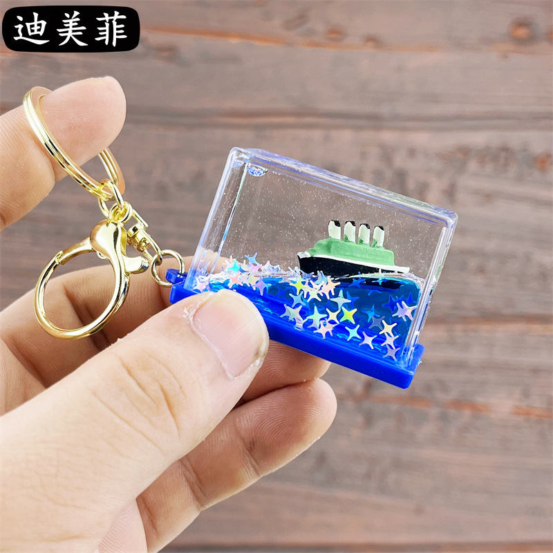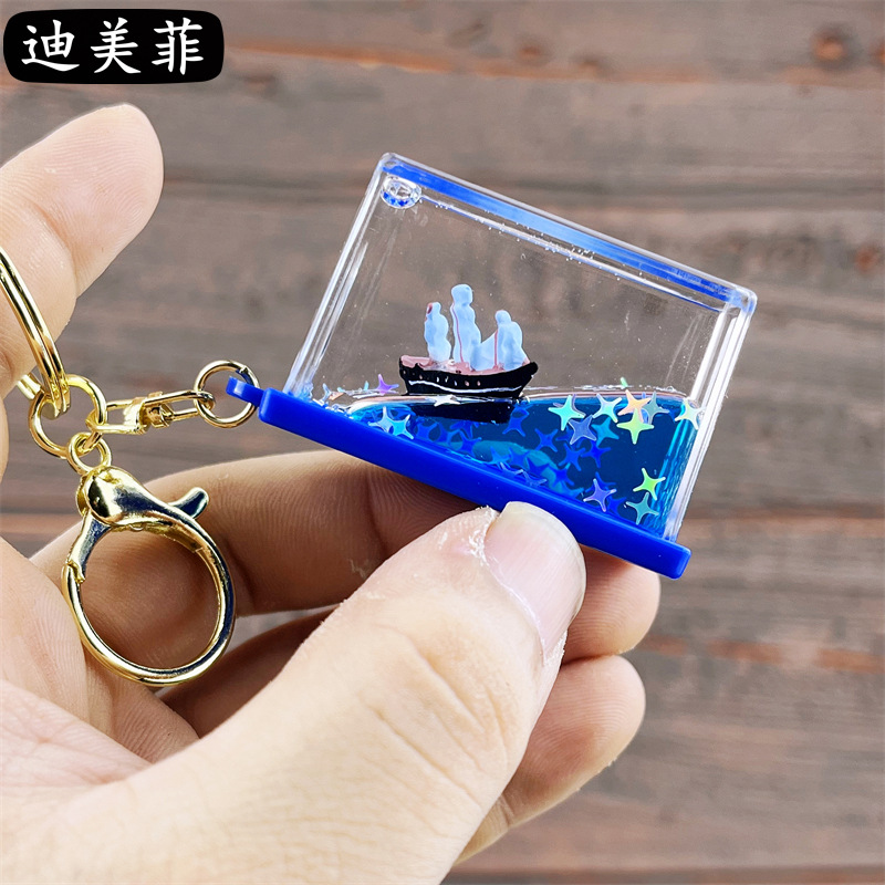 创意永不沉没泰坦尼克漂流瓶钥匙扣挂件海盗船轮船入油流沙瓶礼品