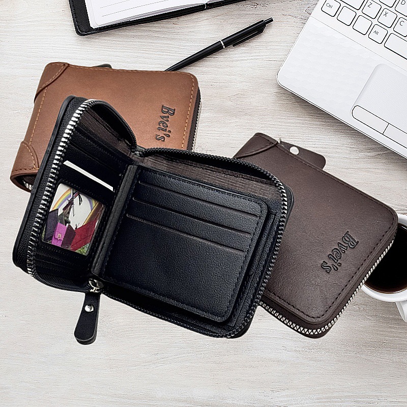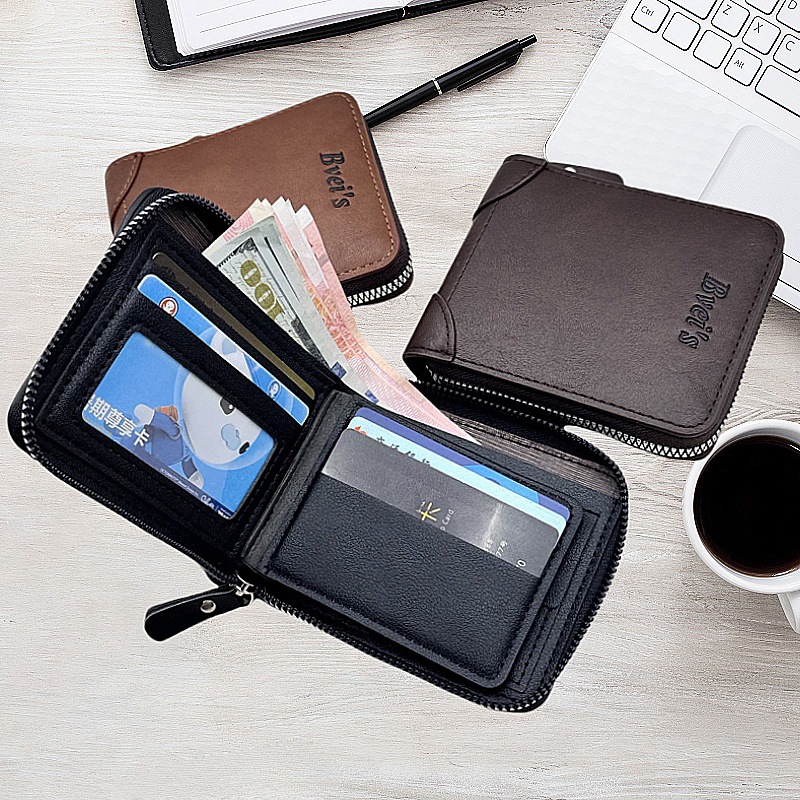 男士钱包短款拉链个性多功能卡包一体男式皮夹子横款钱夹