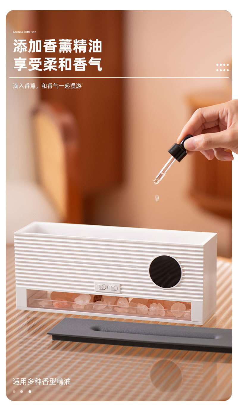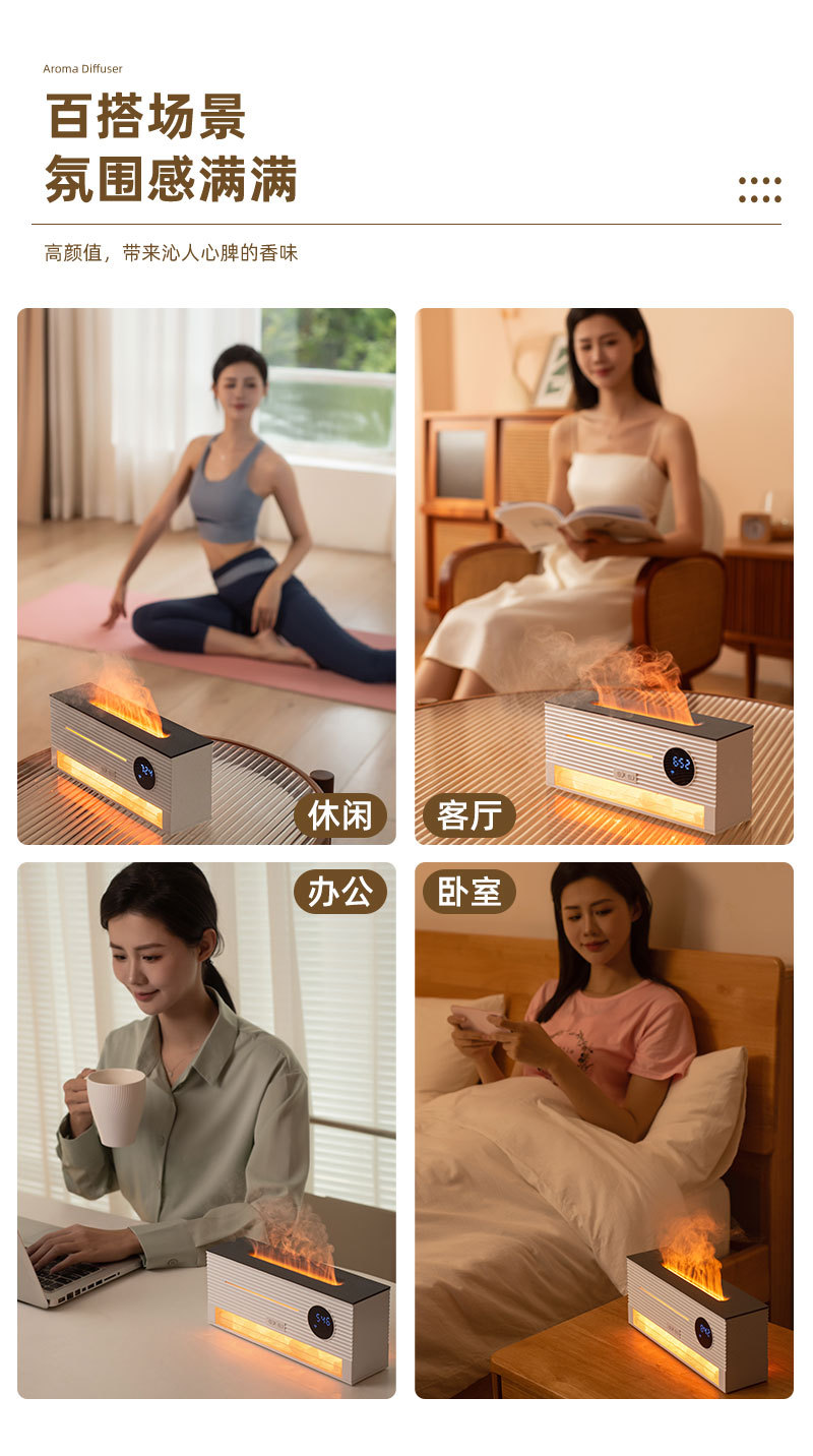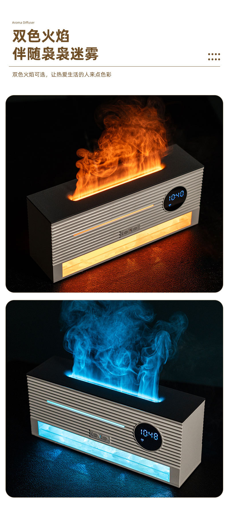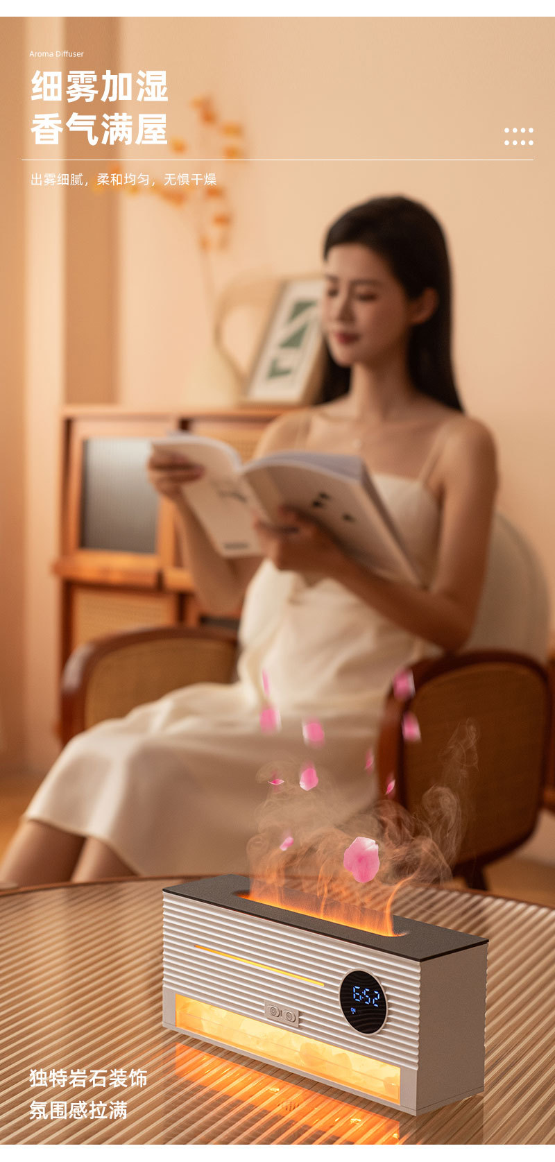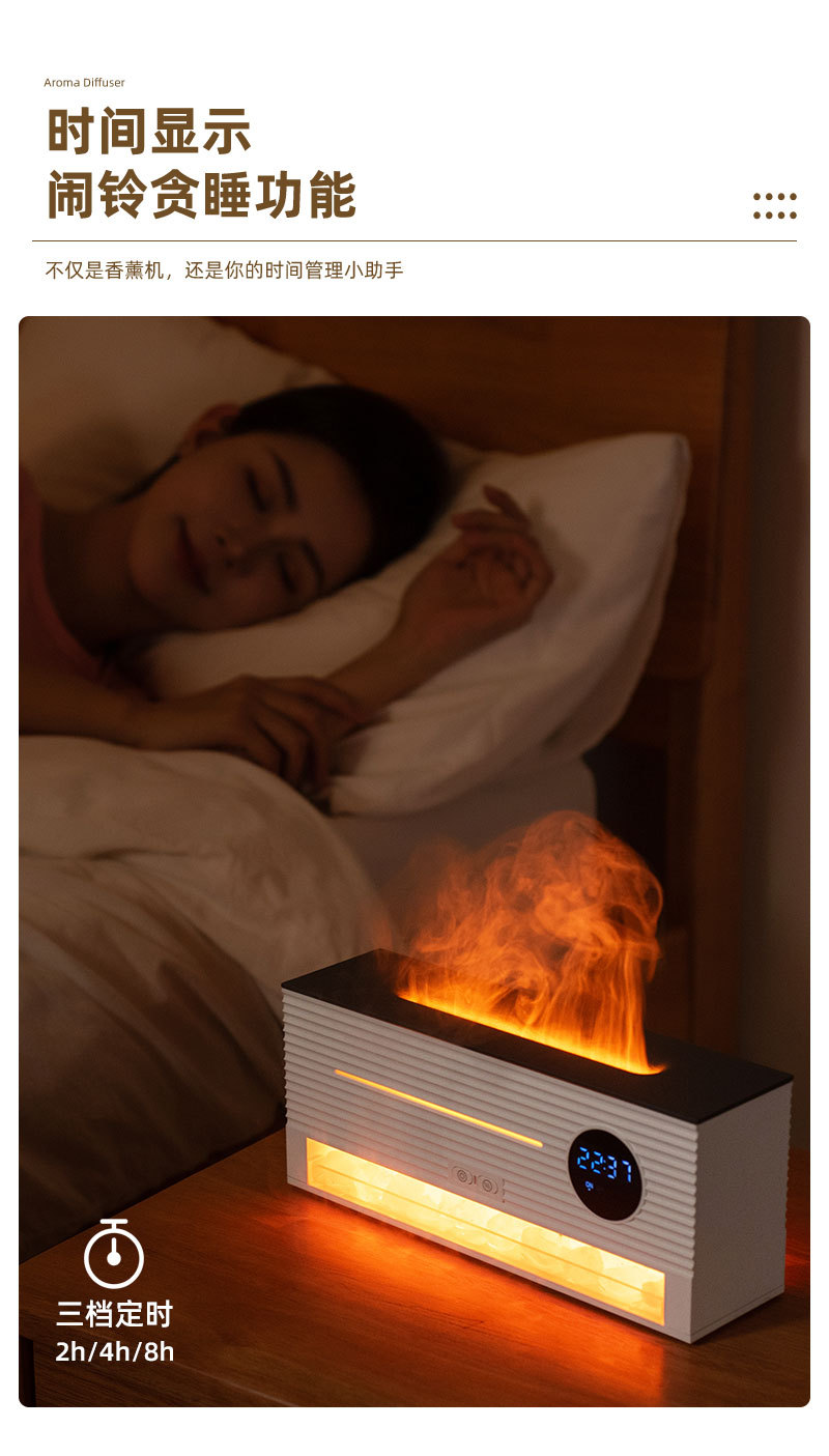 跨境遥控火焰香薰机 桌面时钟盐石氛围灯空气加湿精油香氛机