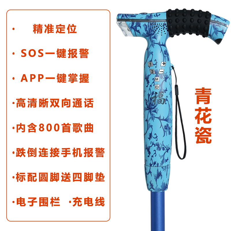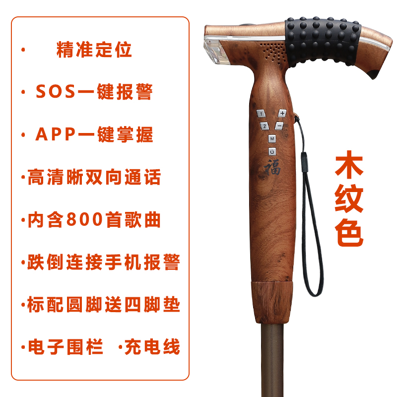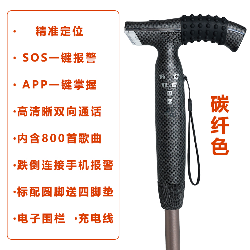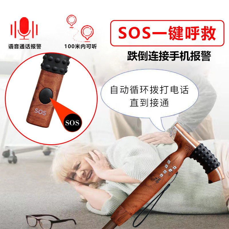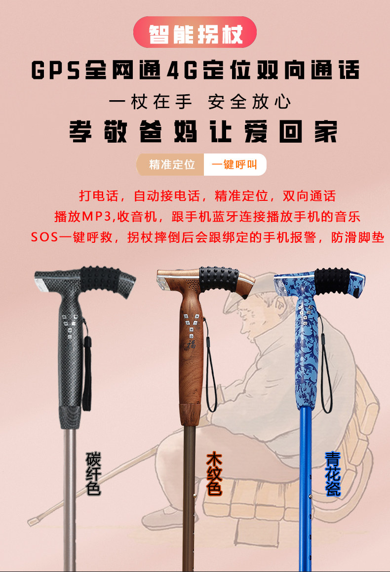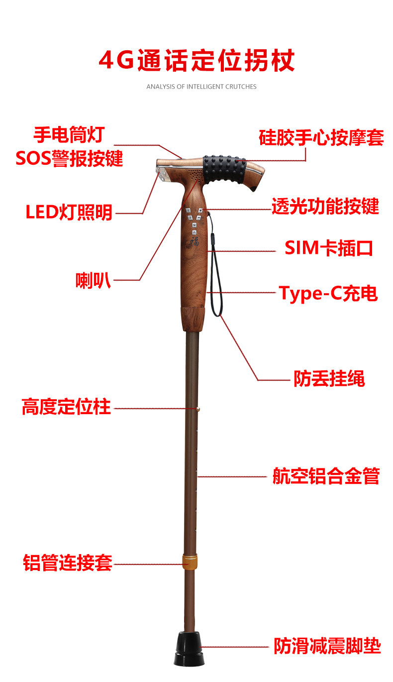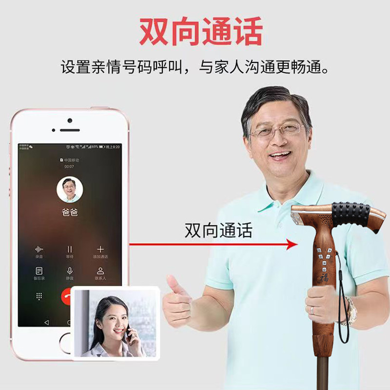 北斗GPS4G双向通话定位拐棍跌倒连接手机报警智能拐杖老年人手杖