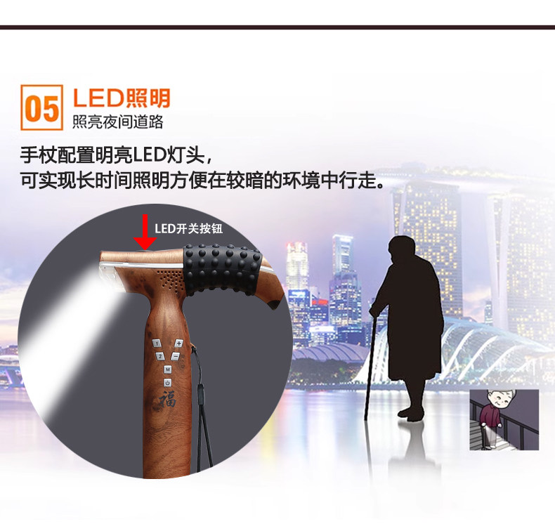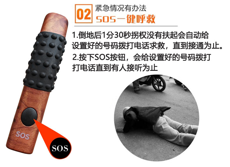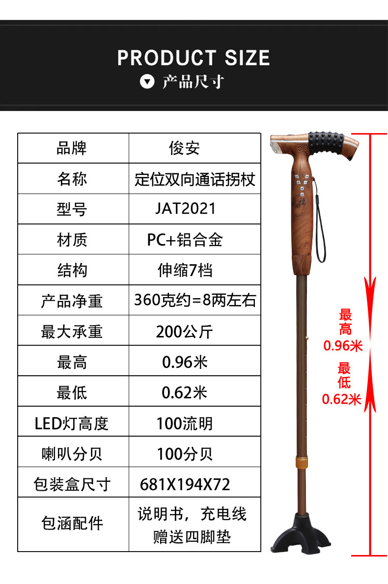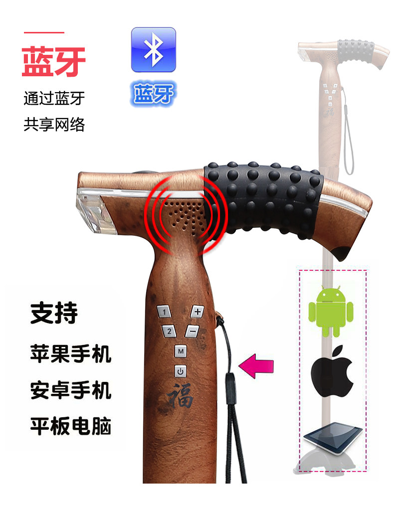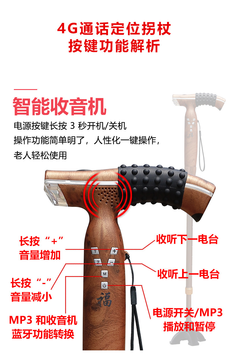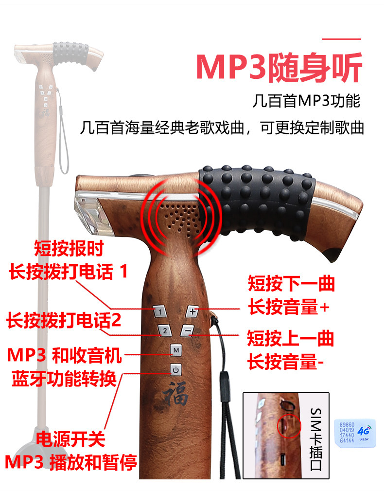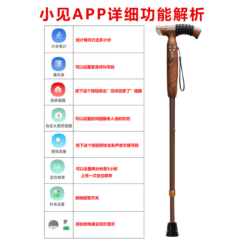 北斗GPS4G双向通话定位拐棍跌倒连接手机报警智能拐杖老年人手杖