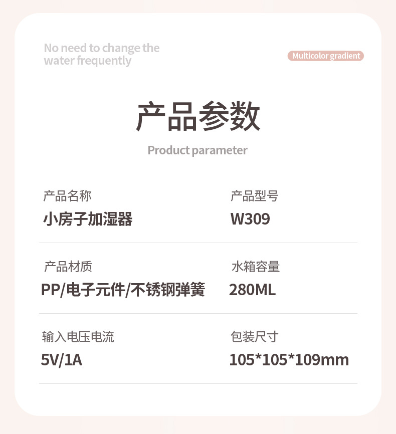 新款迷你USB加湿器 卧室用桌面小型大雾量静音小房子加湿器礼品