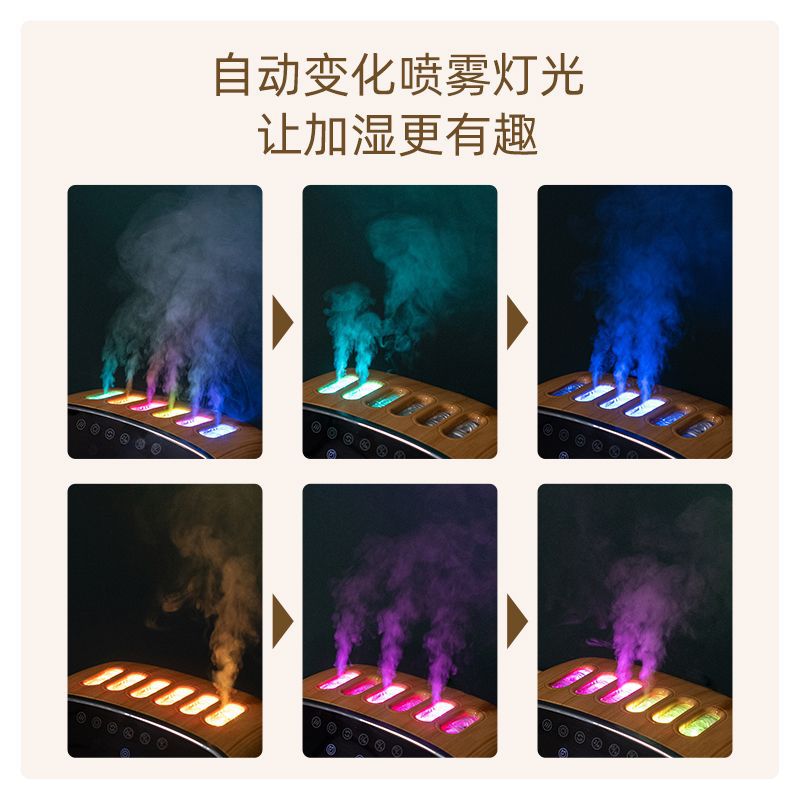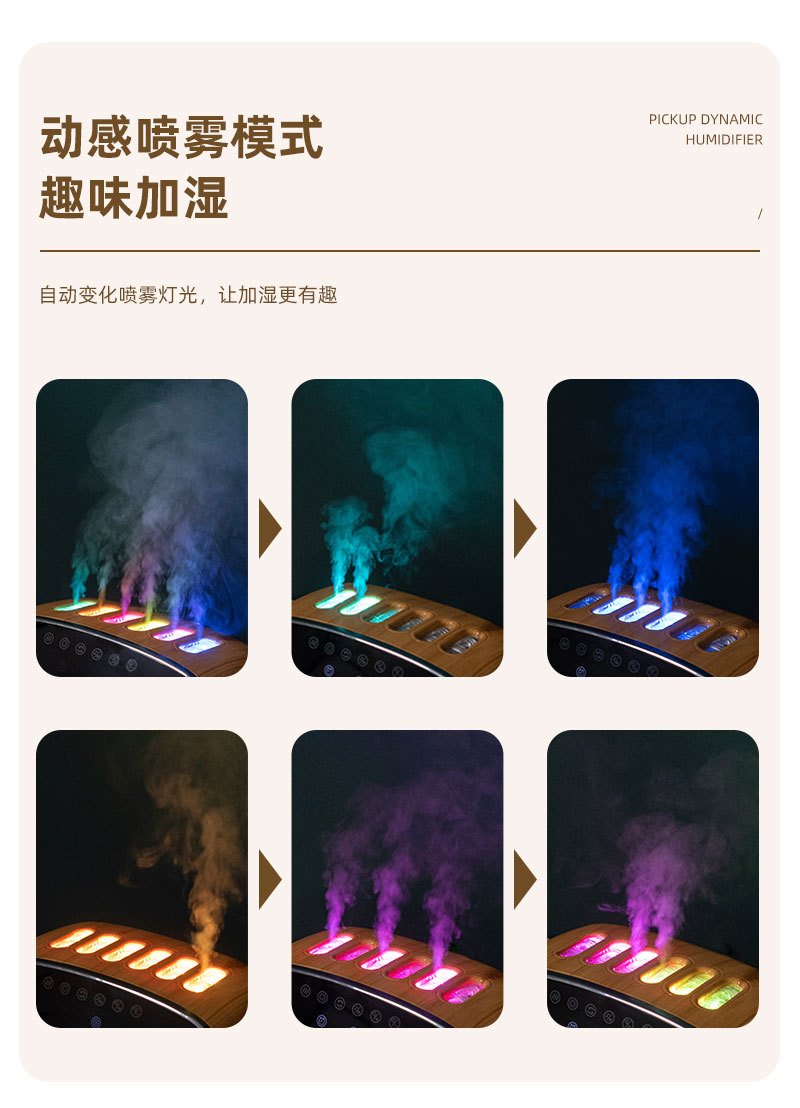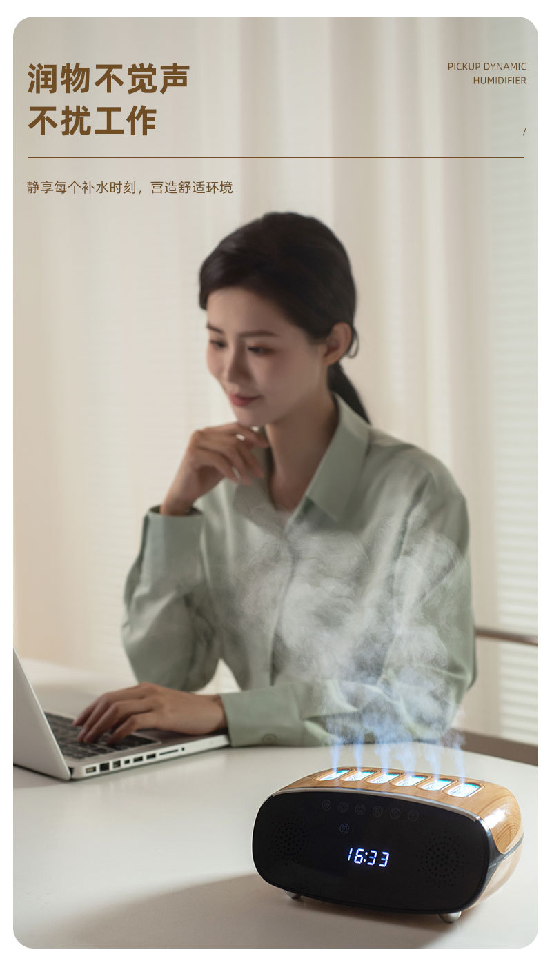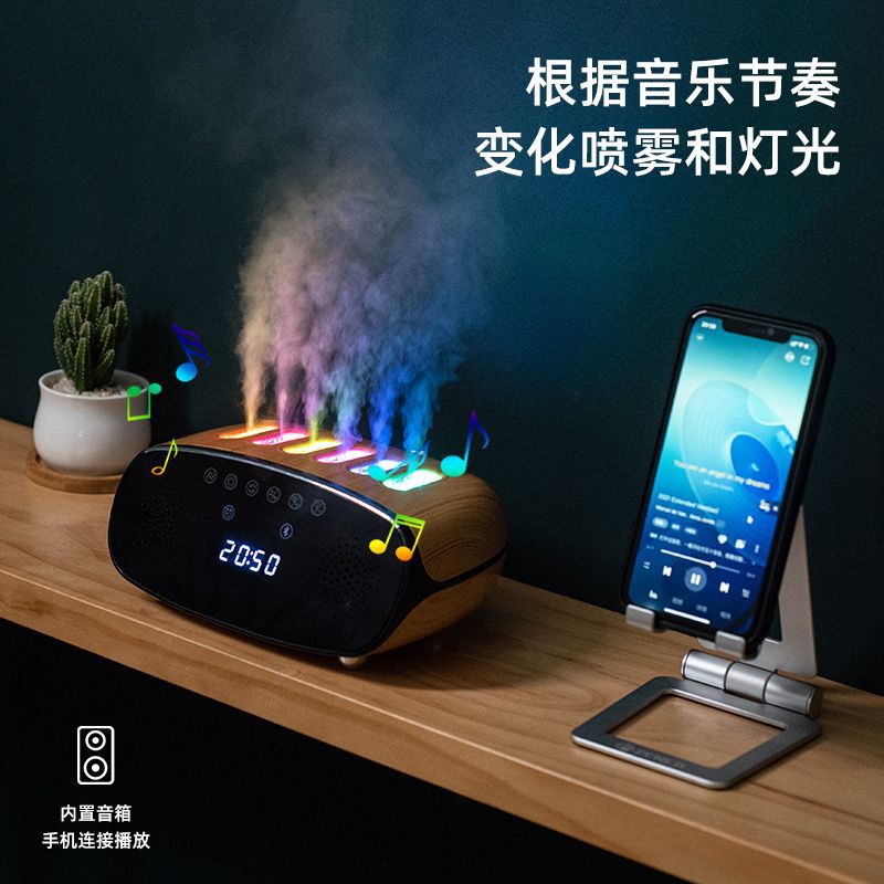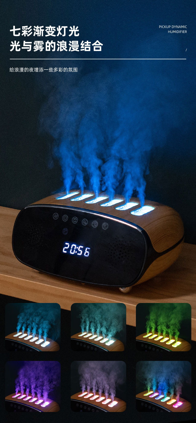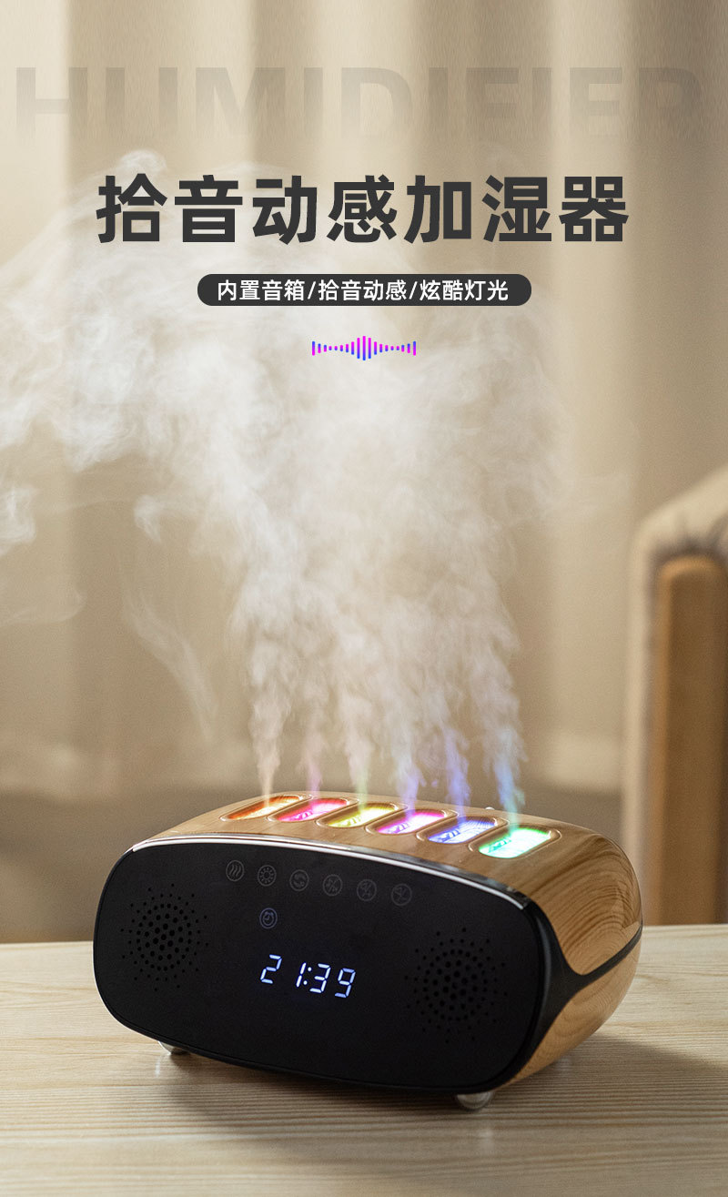 创意动感拾音加湿器 USB数显时钟氛围灯蓝牙音箱大容量木纹加湿器
