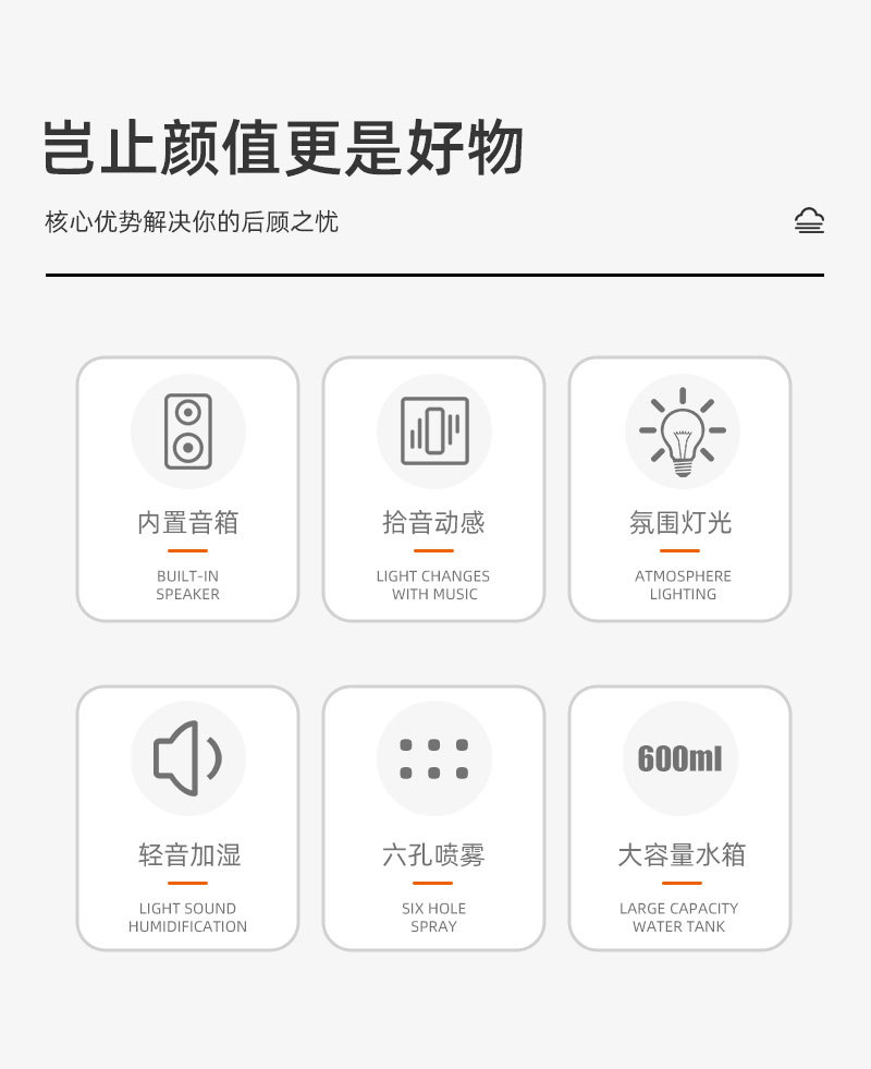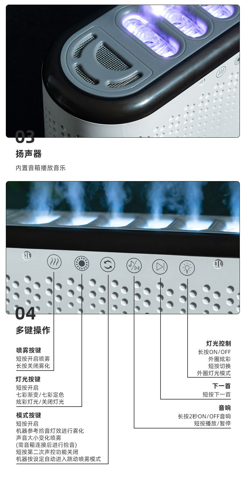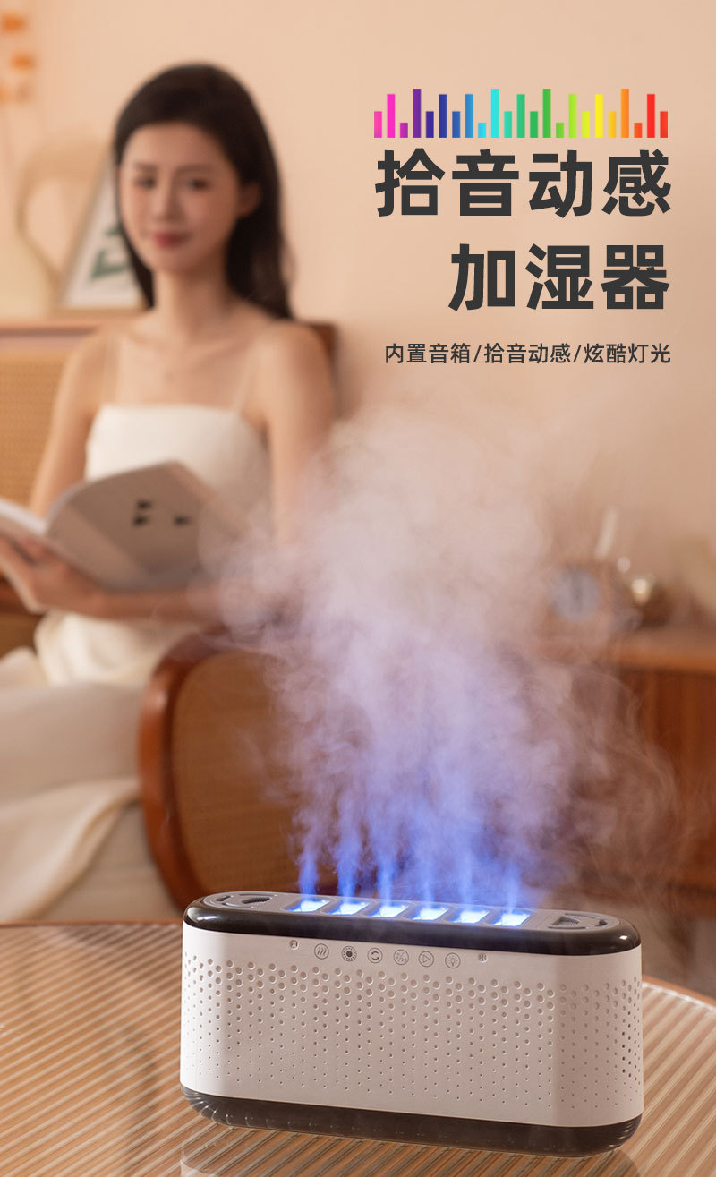 动感音乐加湿器 七彩跑马灯律动蓝牙音箱超声波大容量六孔雾化器
