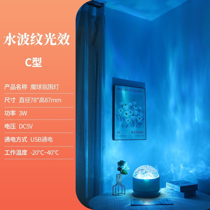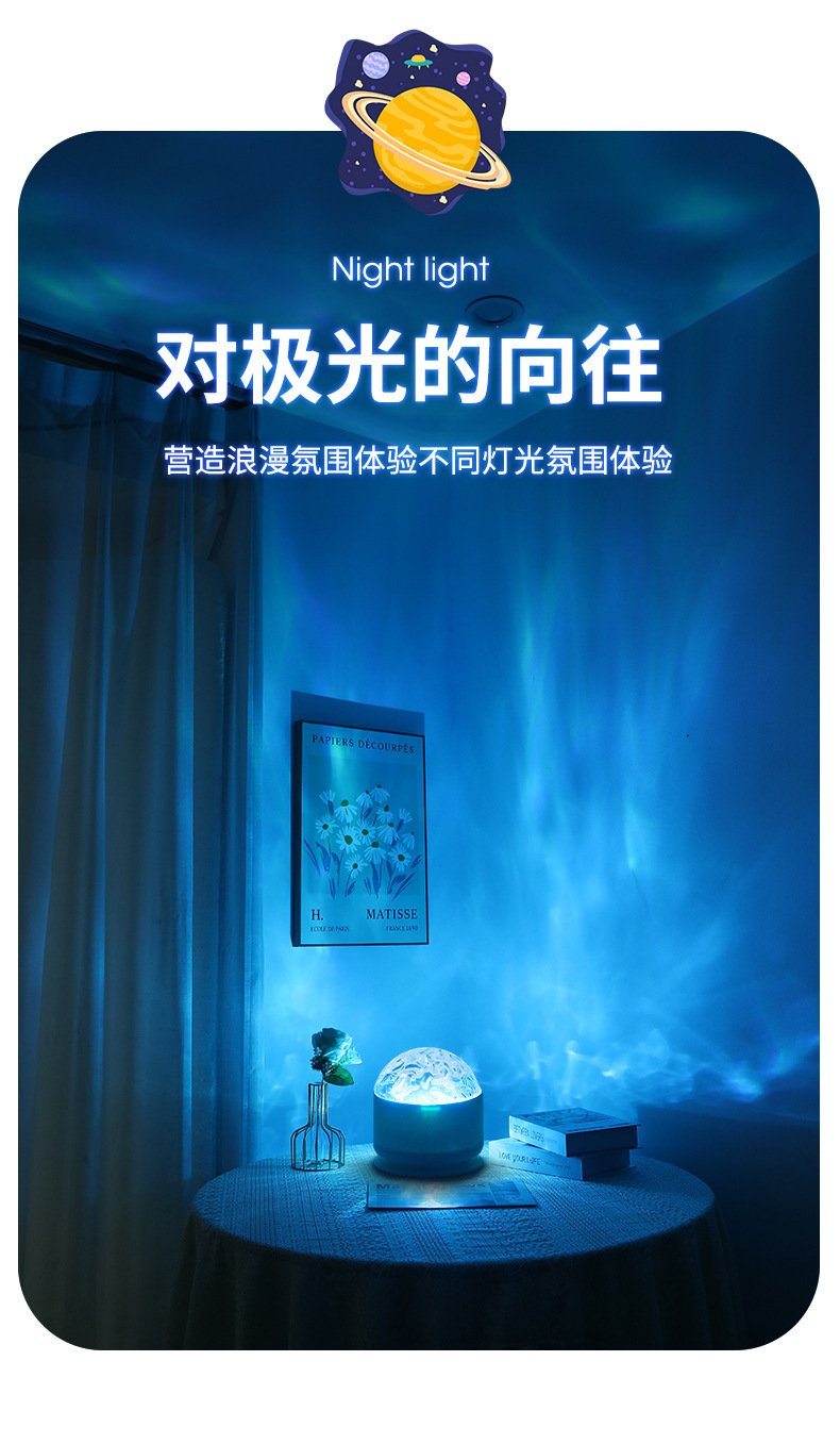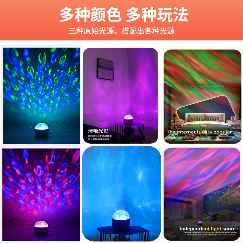 跨境氛围灯极光水波纹投影氛围台灯USB水纹灯卧室床头遥控小夜灯