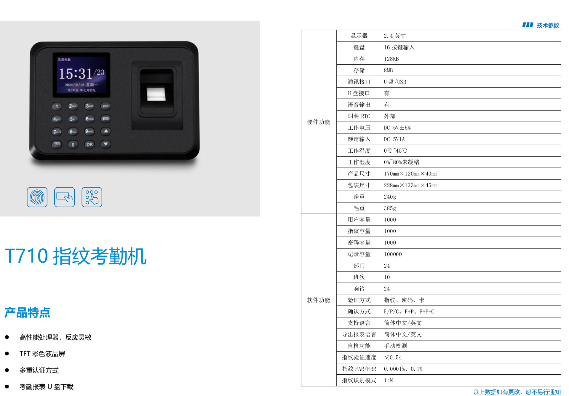 跨境热销T710打卡机中英文上下班公司员工智能指纹签到报表考勤机