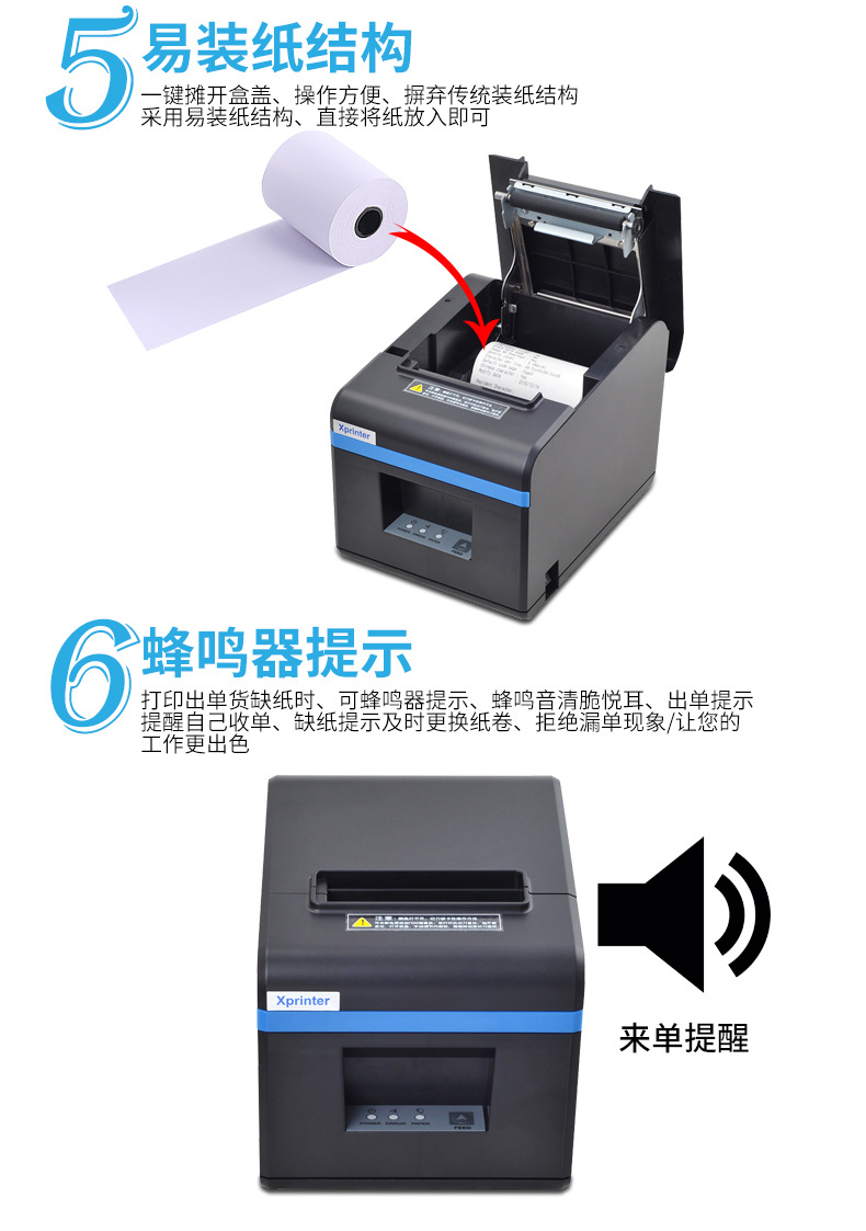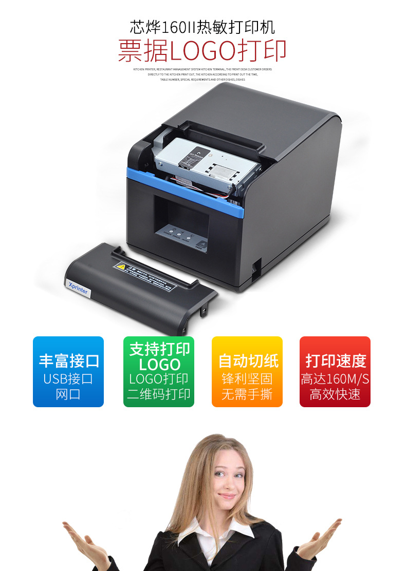 芯烨XP-N160II热敏80mm打印网口饭店后厨前台厨房餐饮点菜单小票