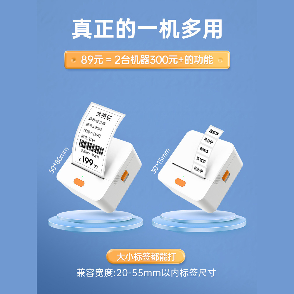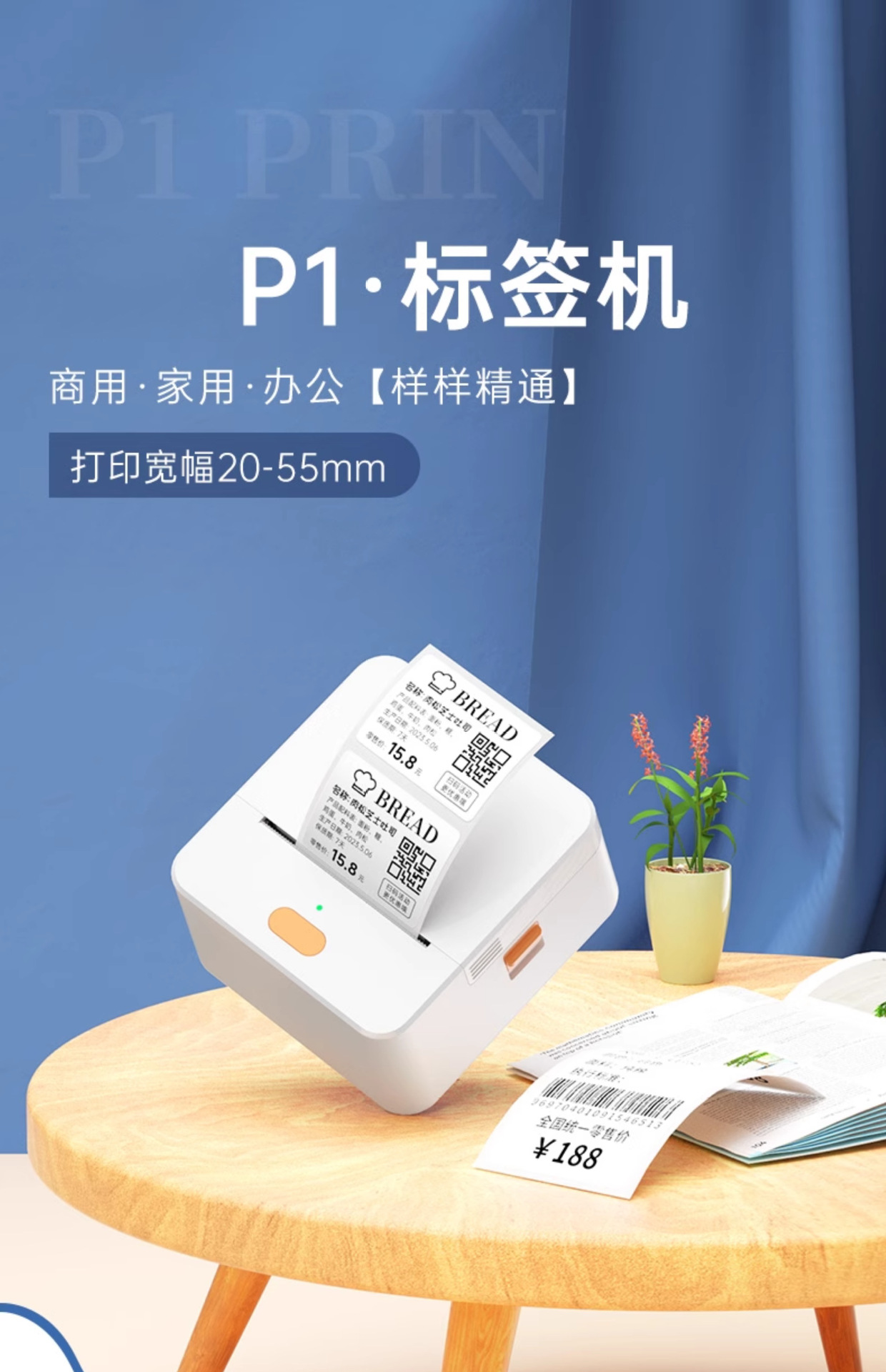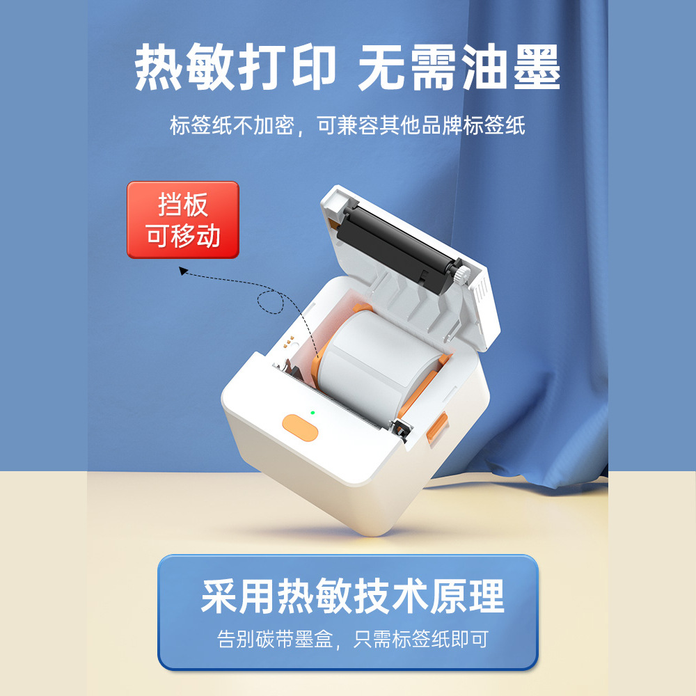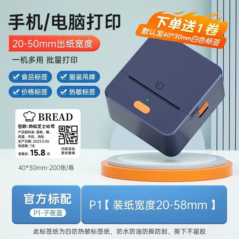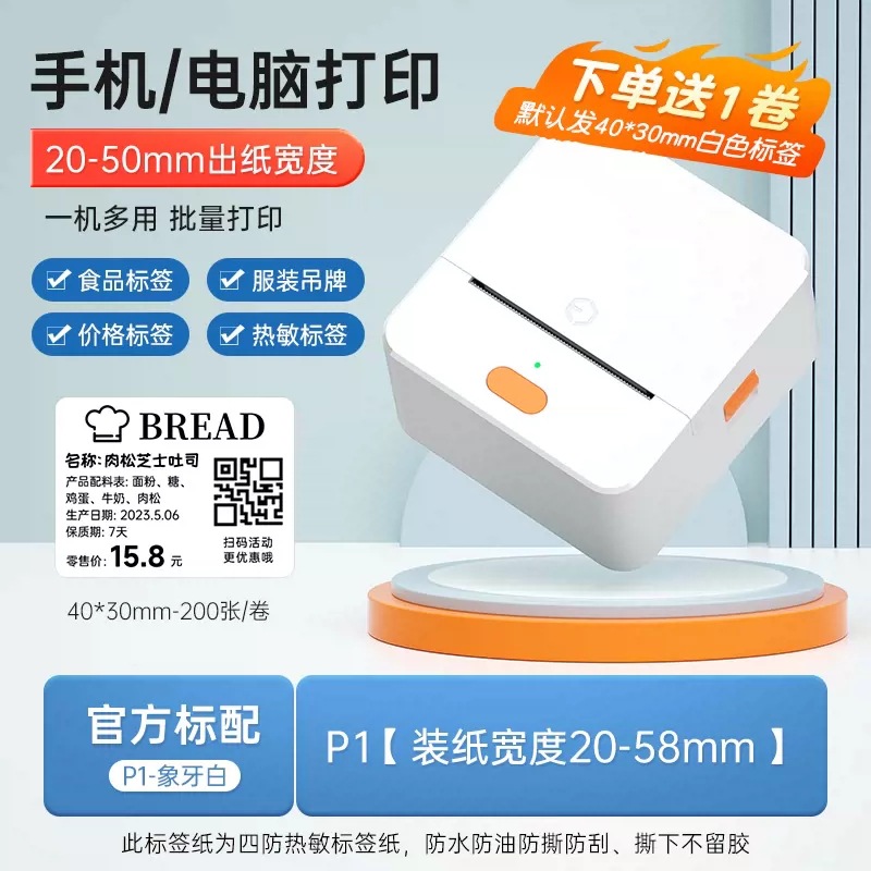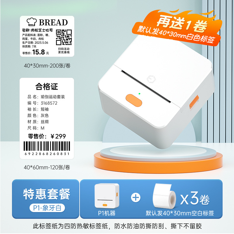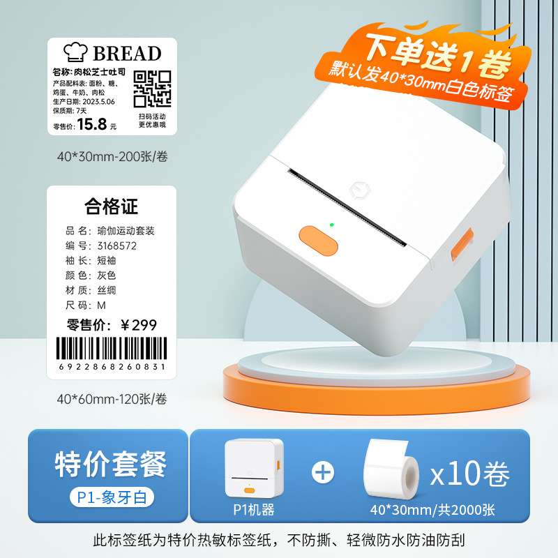 P1标签打印机手持便携蓝牙热敏价签不干胶贴纸二维条码服装吊牌机