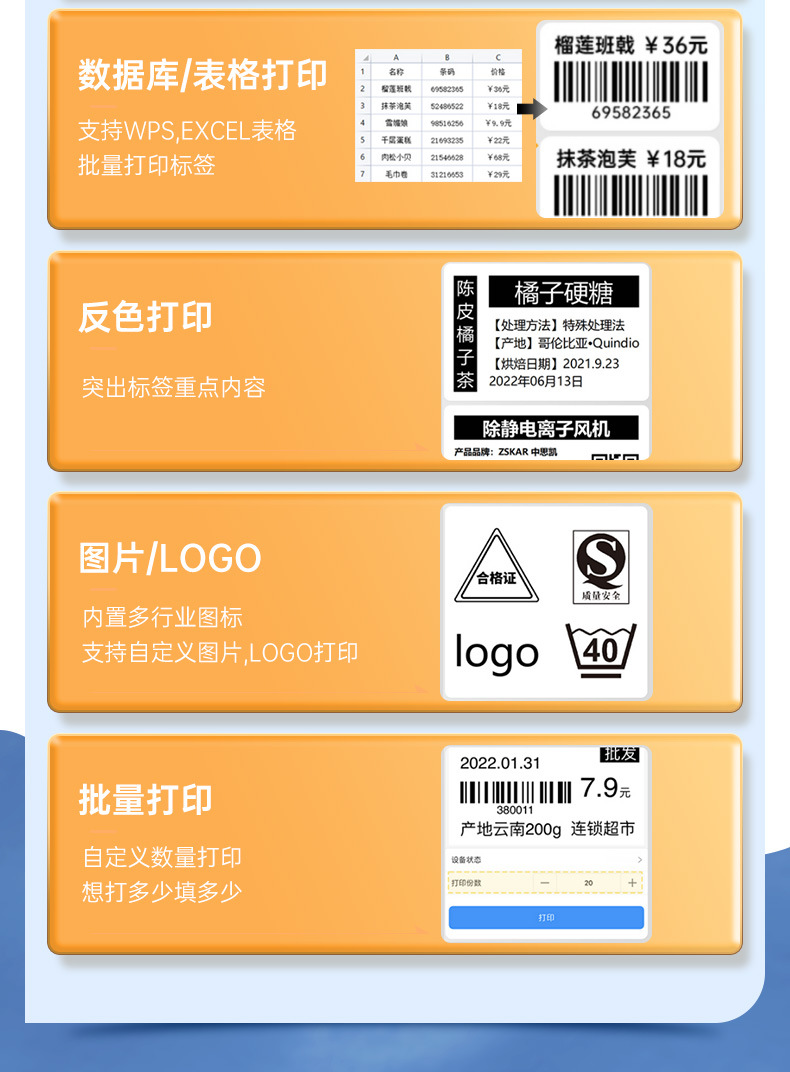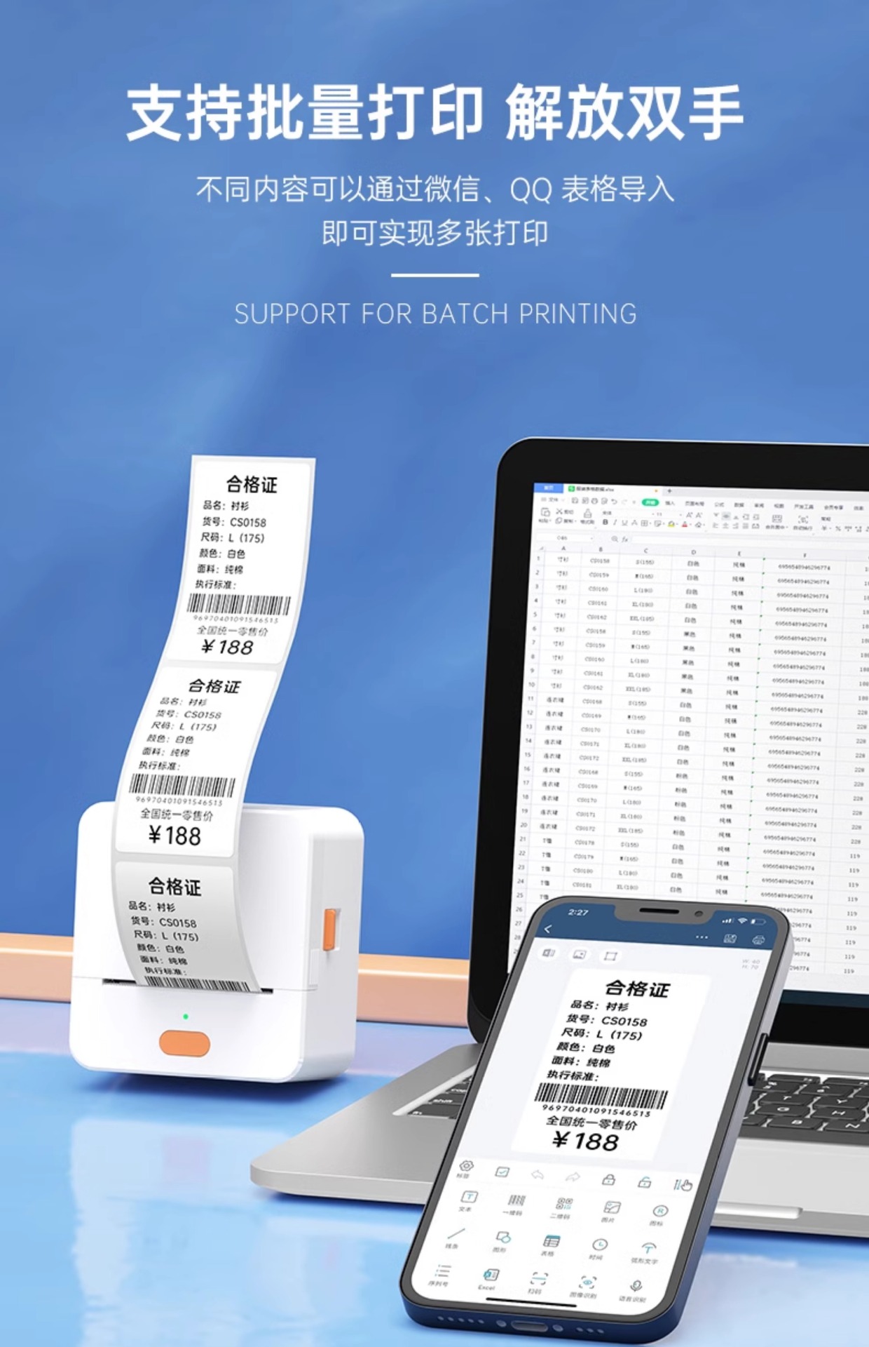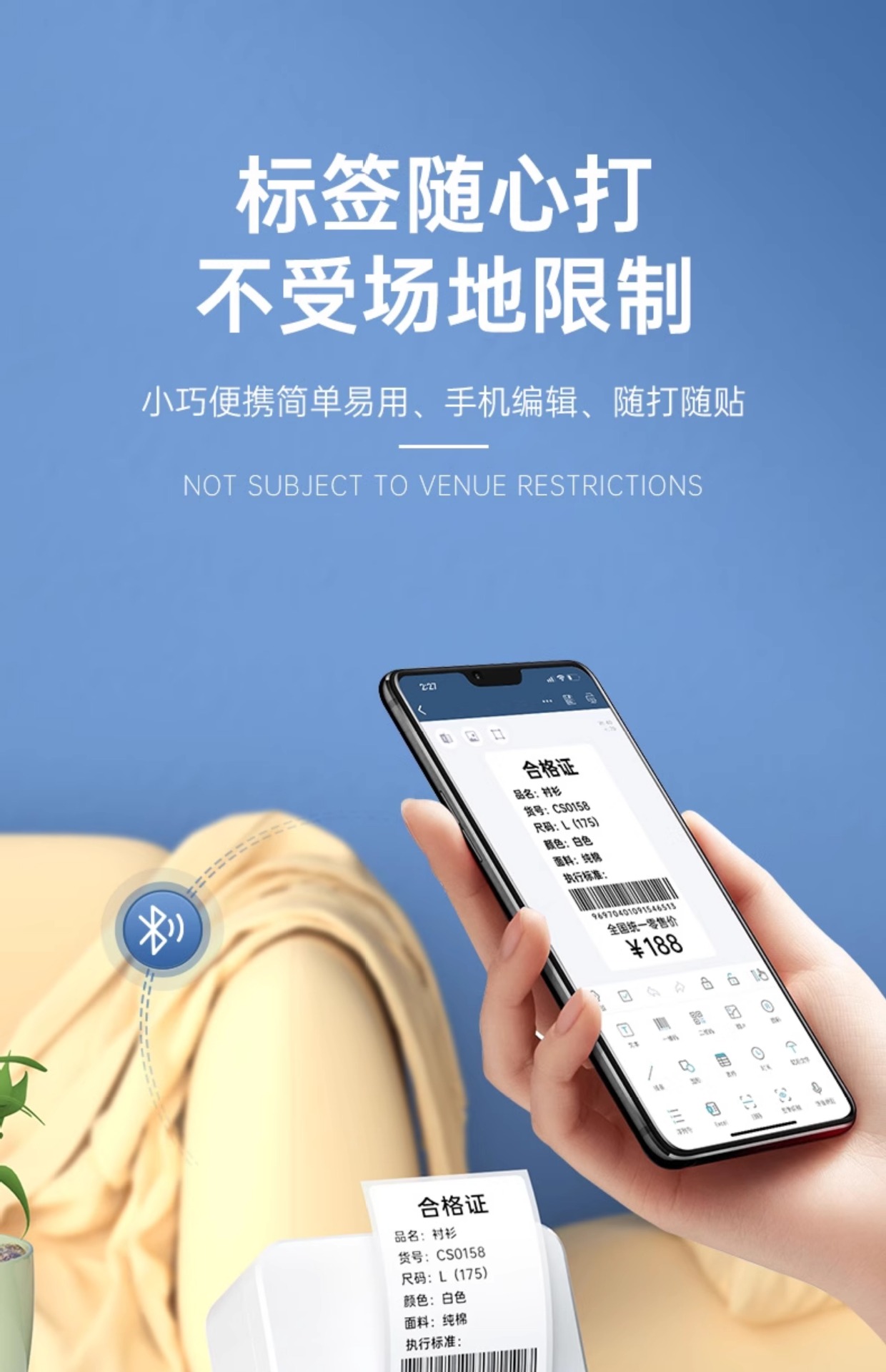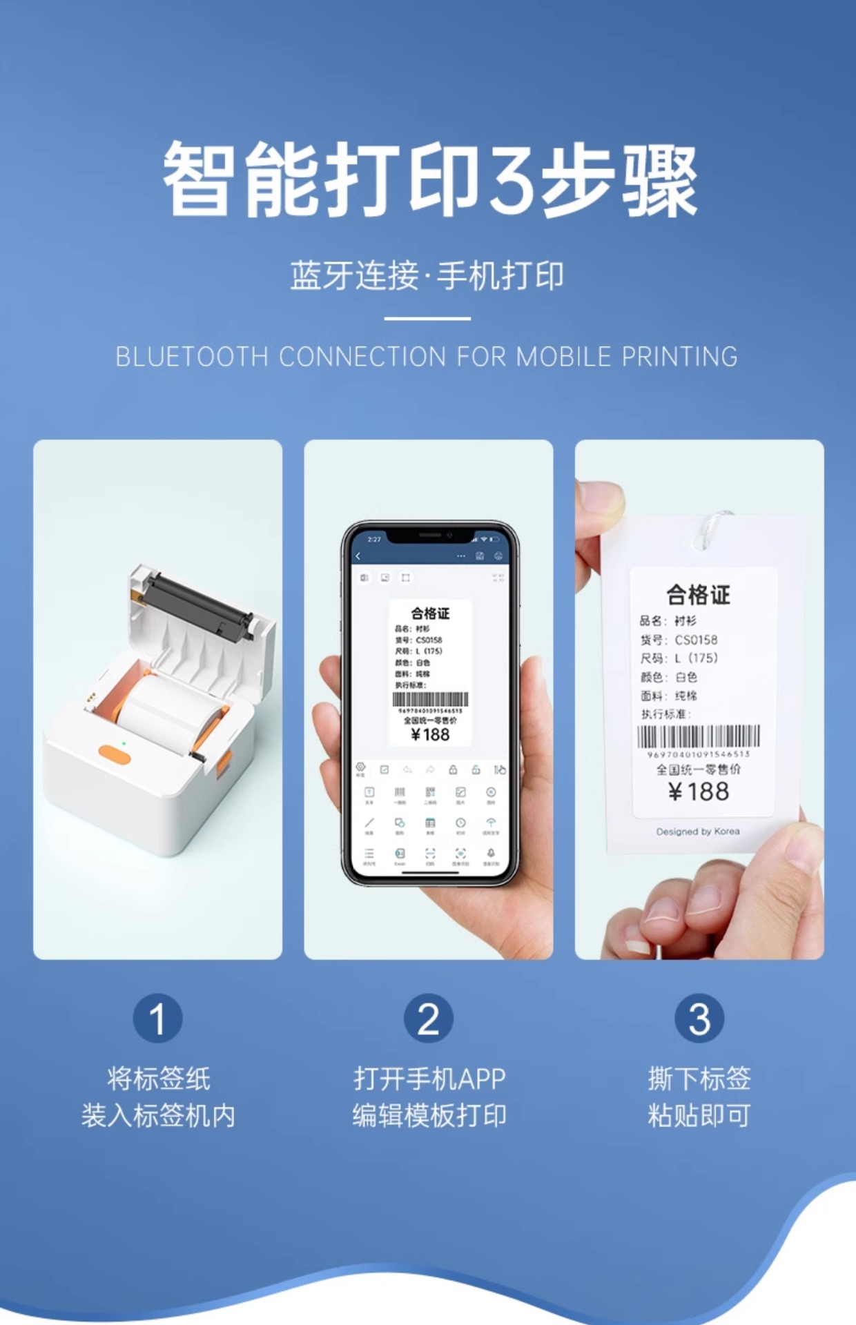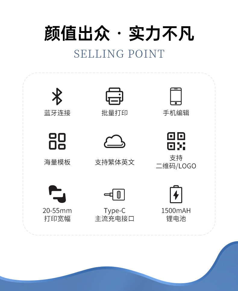 P1标签打印机手持便携蓝牙热敏价签不干胶贴纸二维条码服装吊牌机