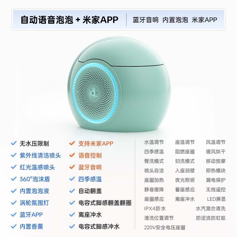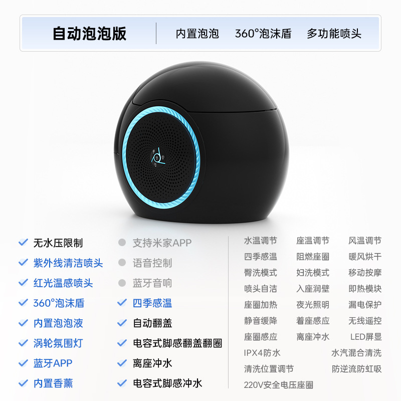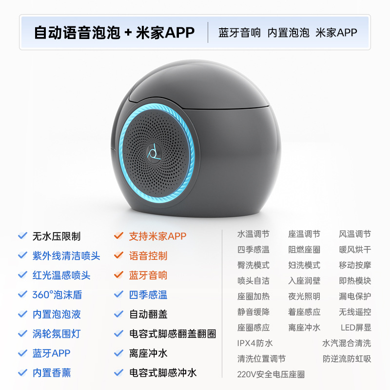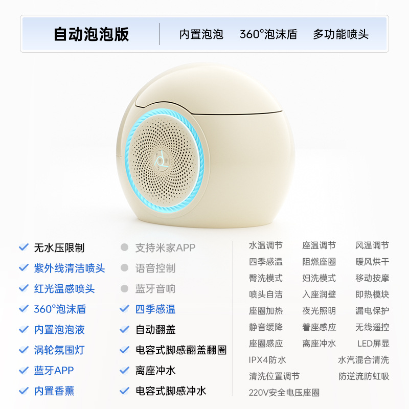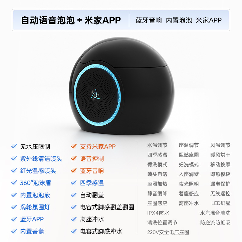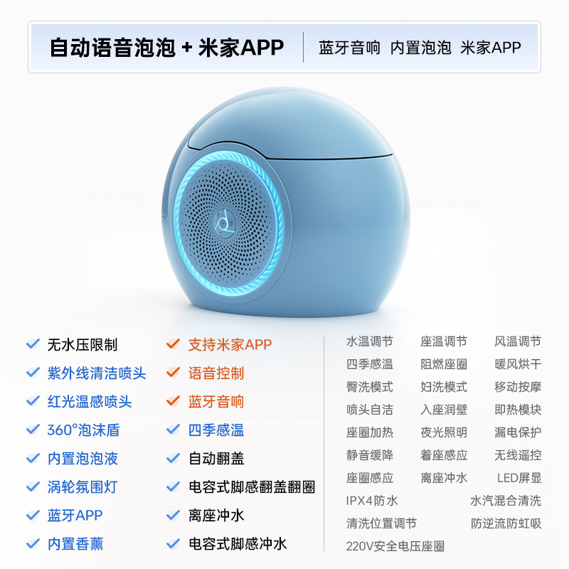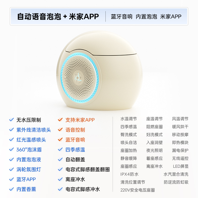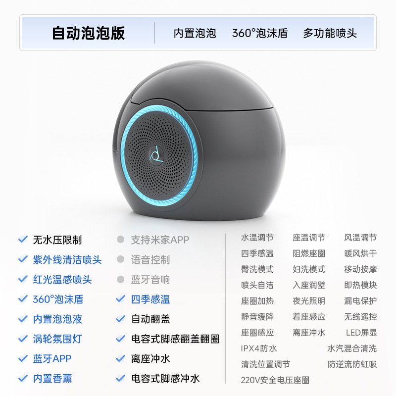 新款蛋型智能马桶全自动虹吸式米家APP圆形坐便器360°旋转泡沫盾