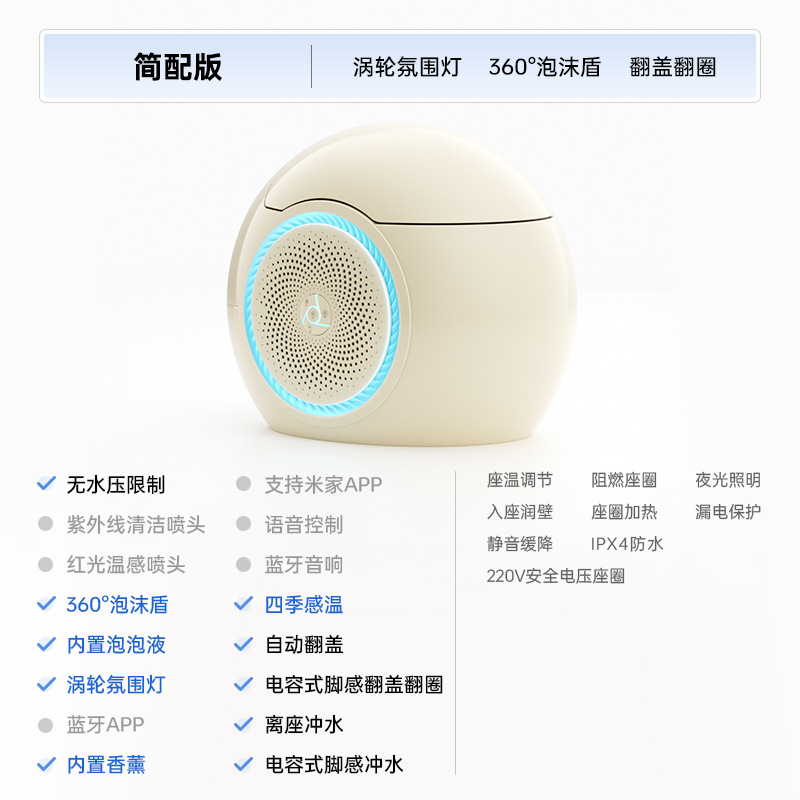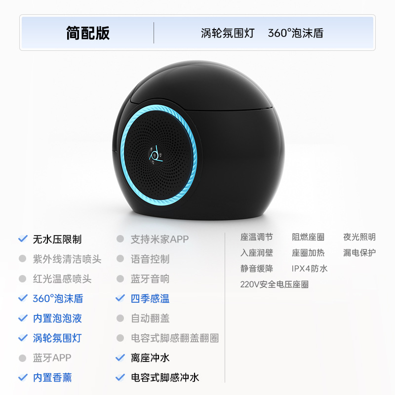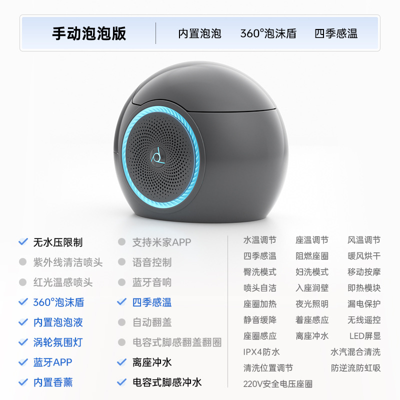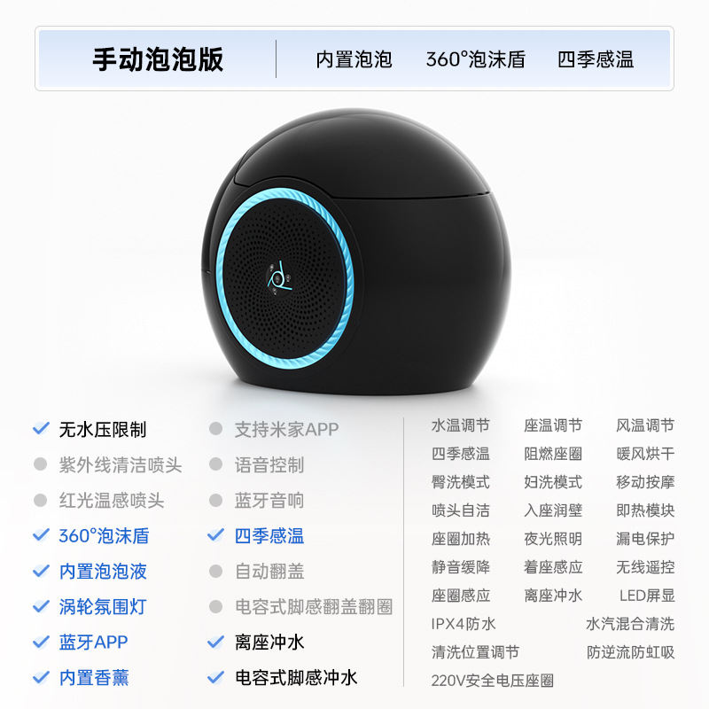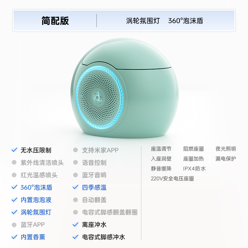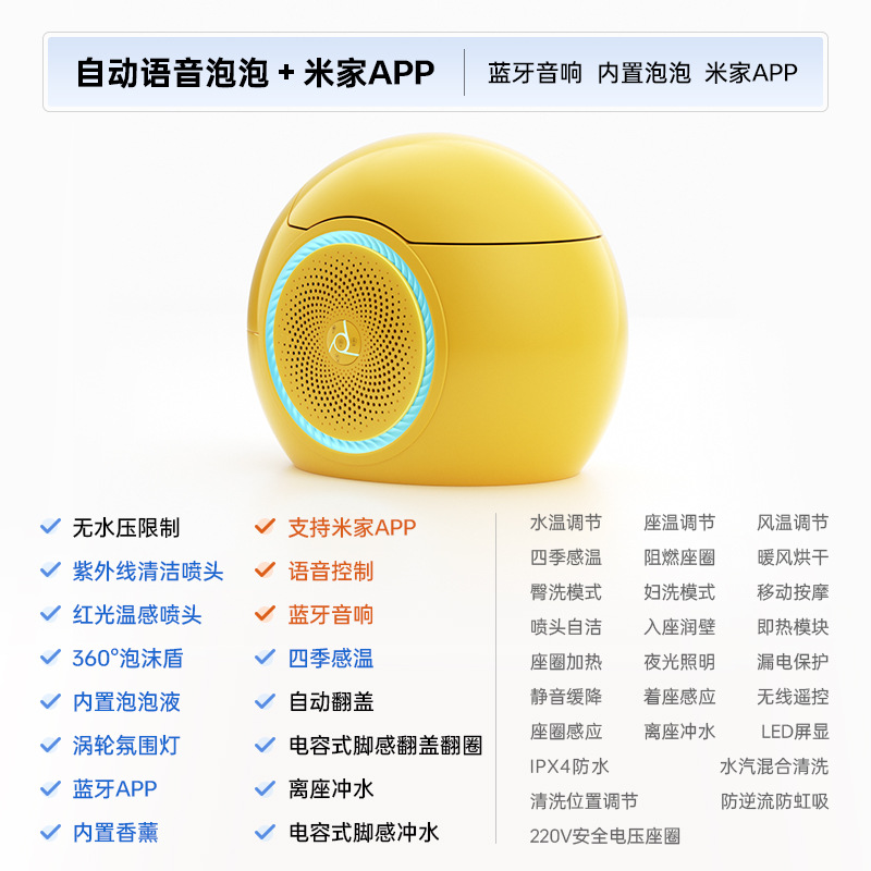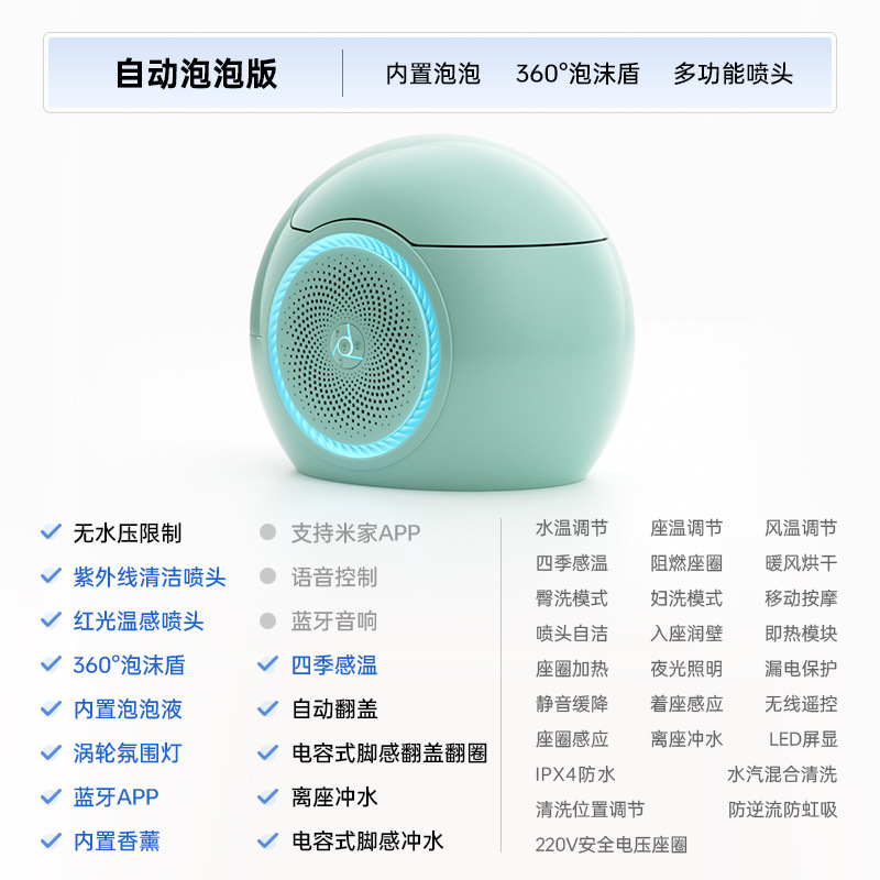 新款蛋型智能马桶全自动虹吸式米家APP圆形坐便器360°旋转泡沫盾
