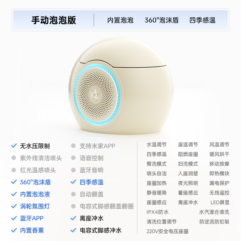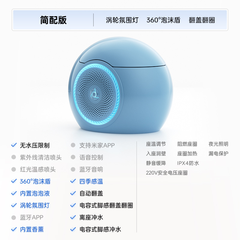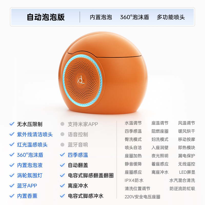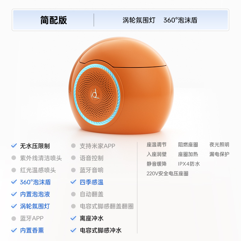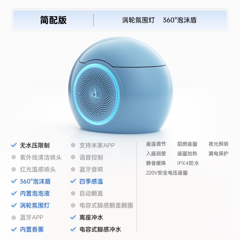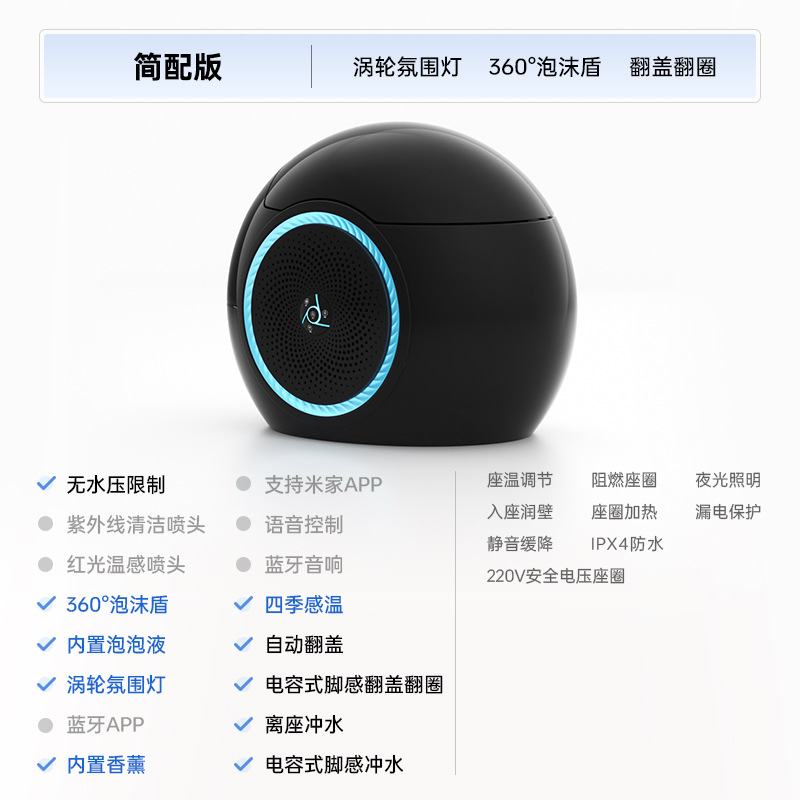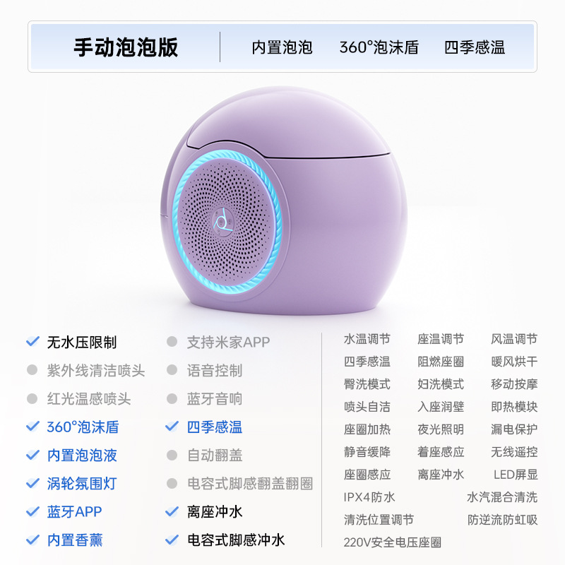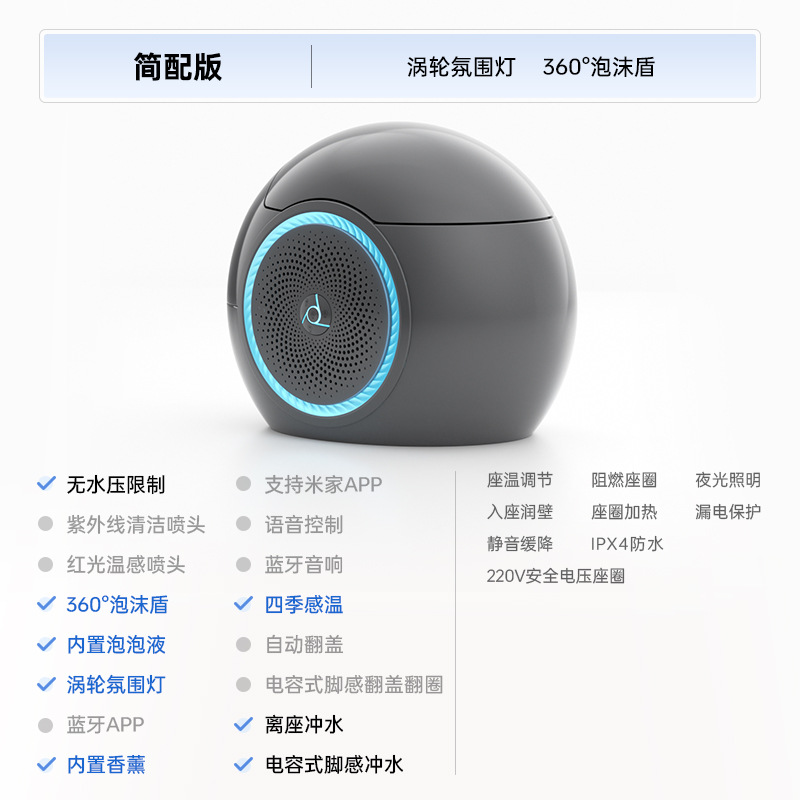 新款蛋型智能马桶全自动虹吸式米家APP圆形坐便器360°旋转泡沫盾