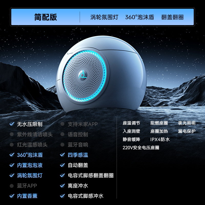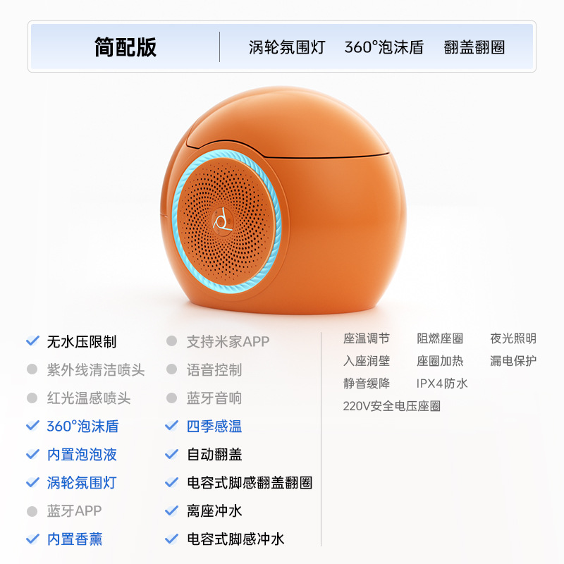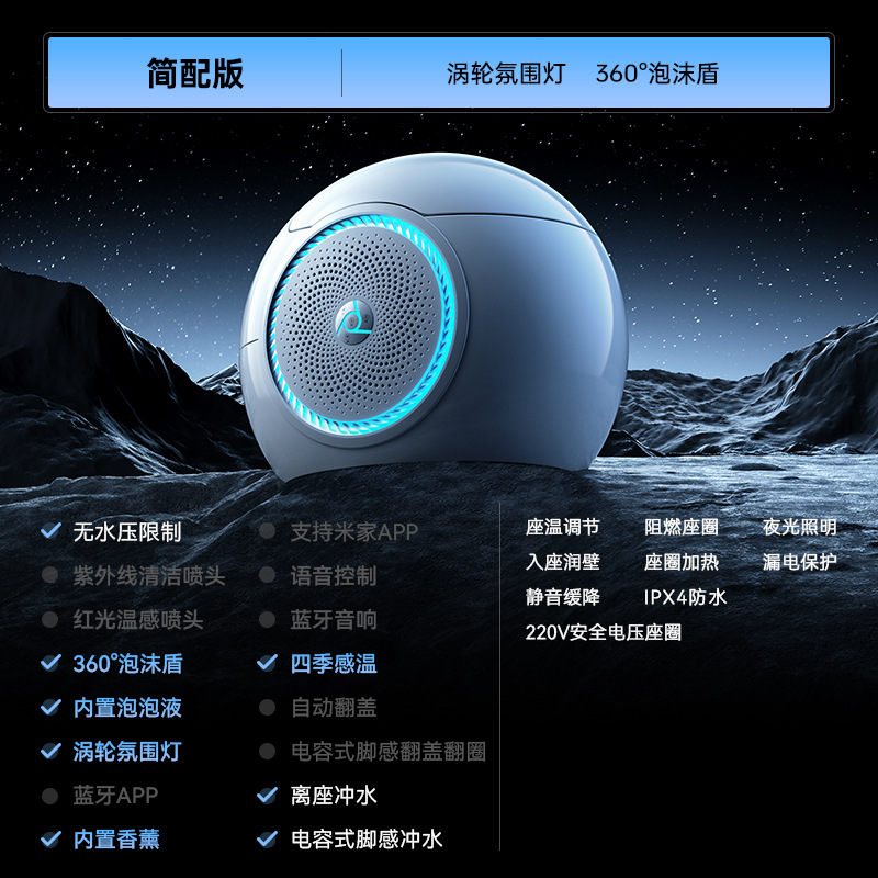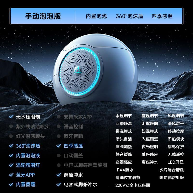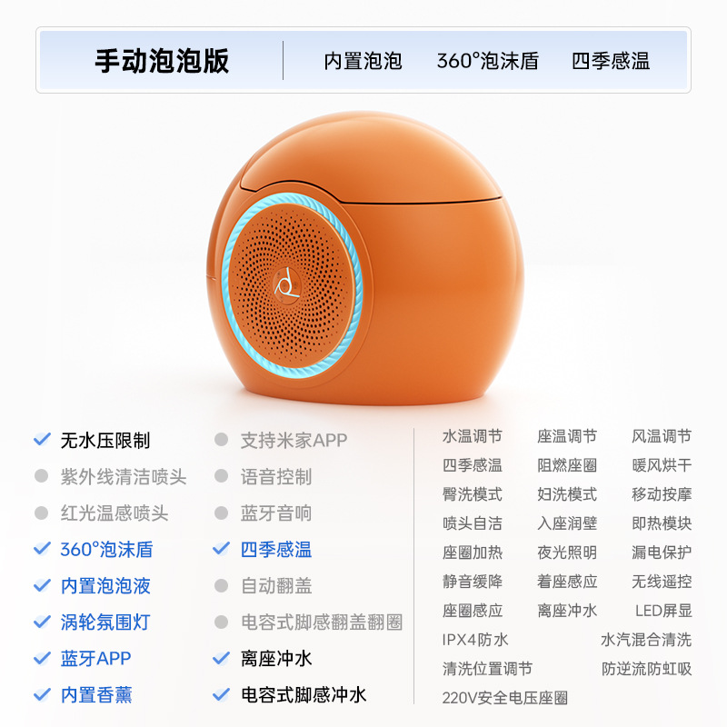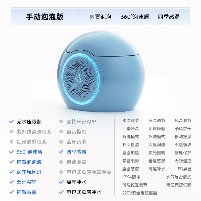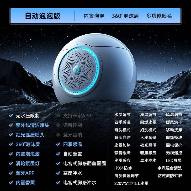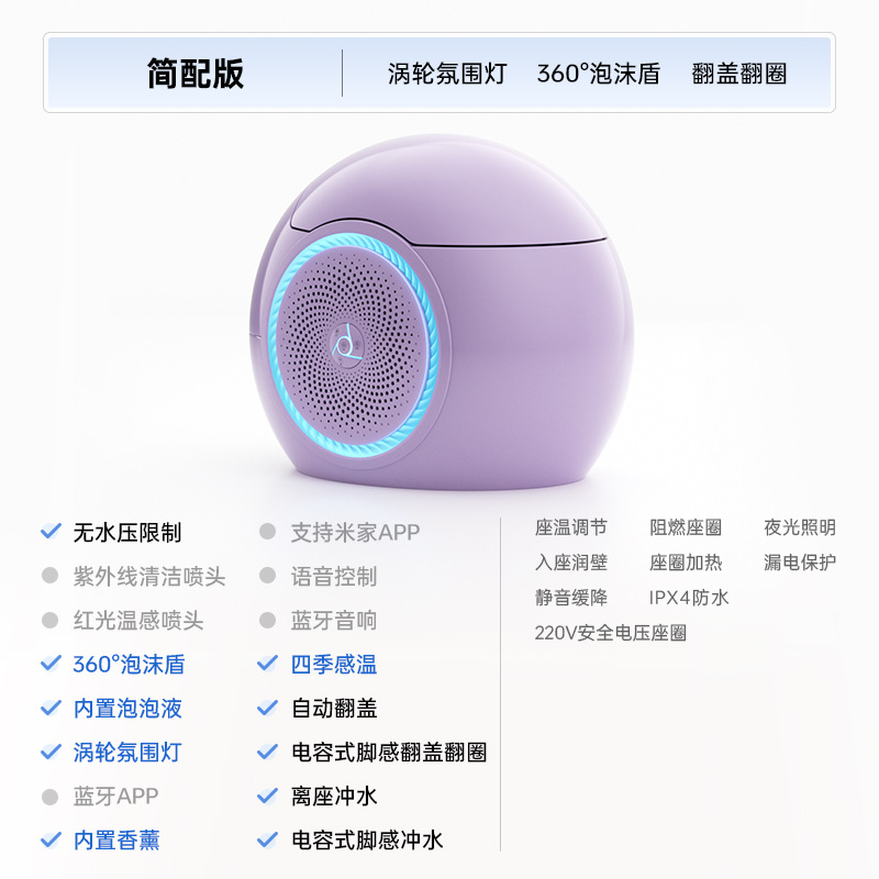 新款蛋型智能马桶全自动虹吸式米家APP圆形坐便器360°旋转泡沫盾