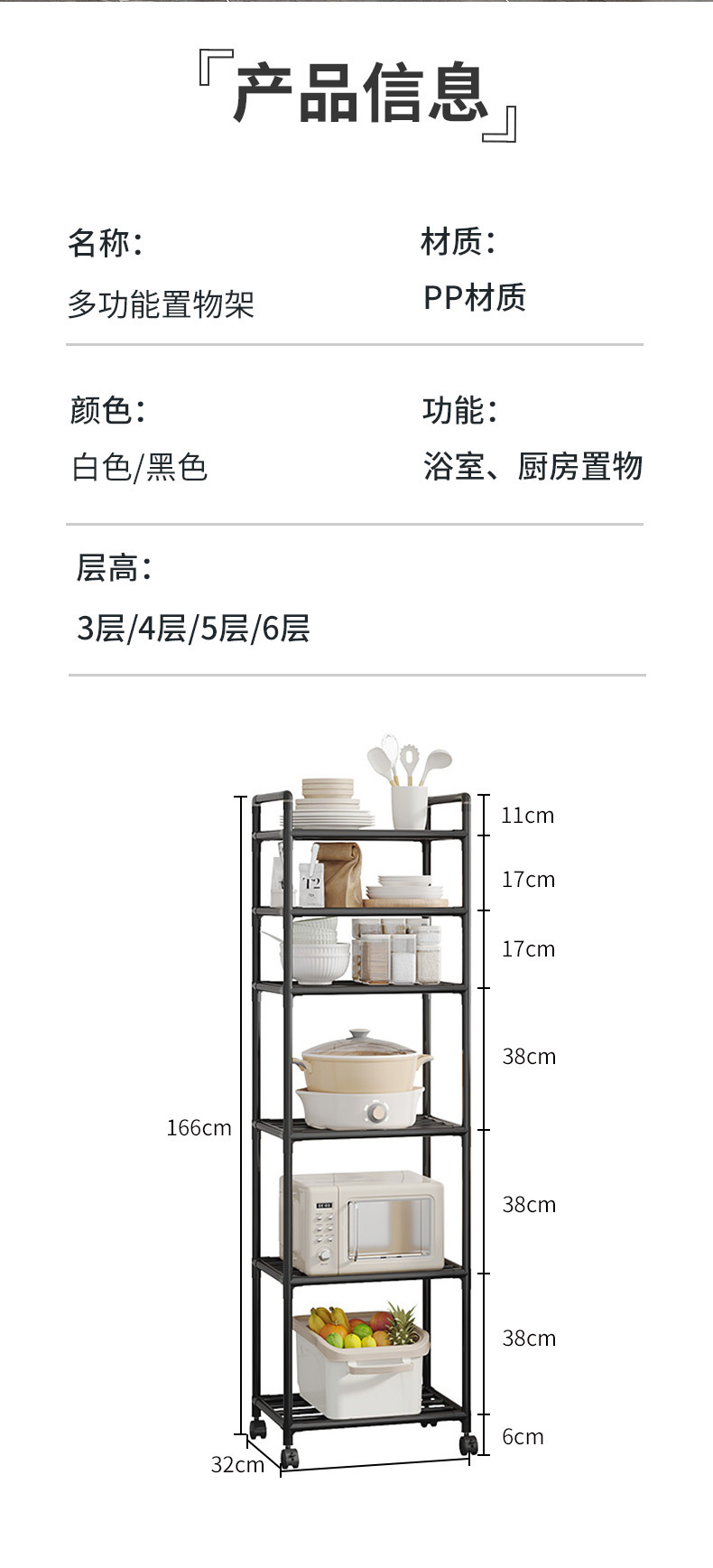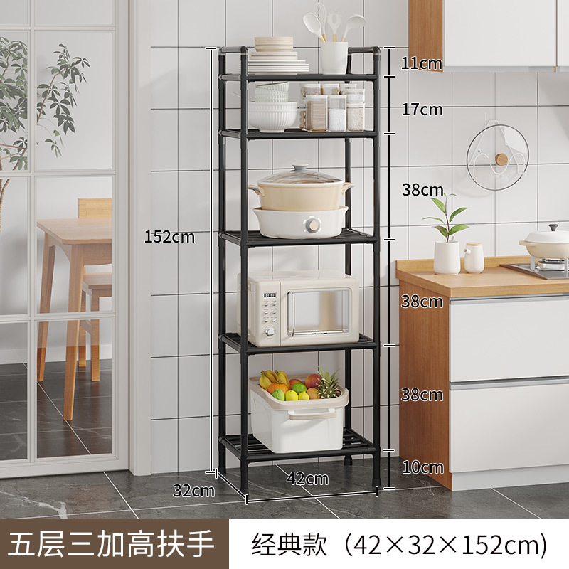 厨房置物架落地多层家用微波炉收纳架柜子分层零食架免打孔架子