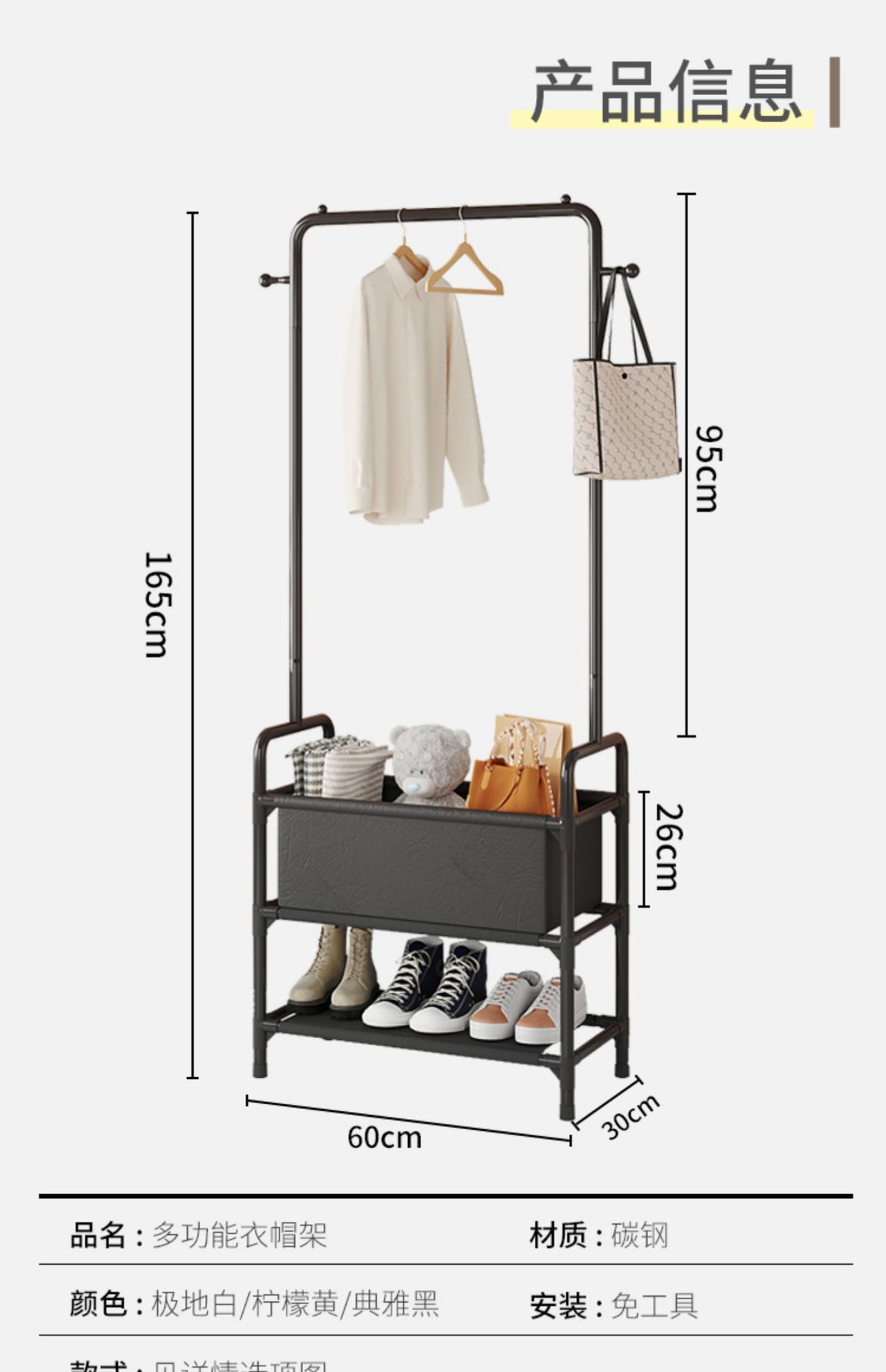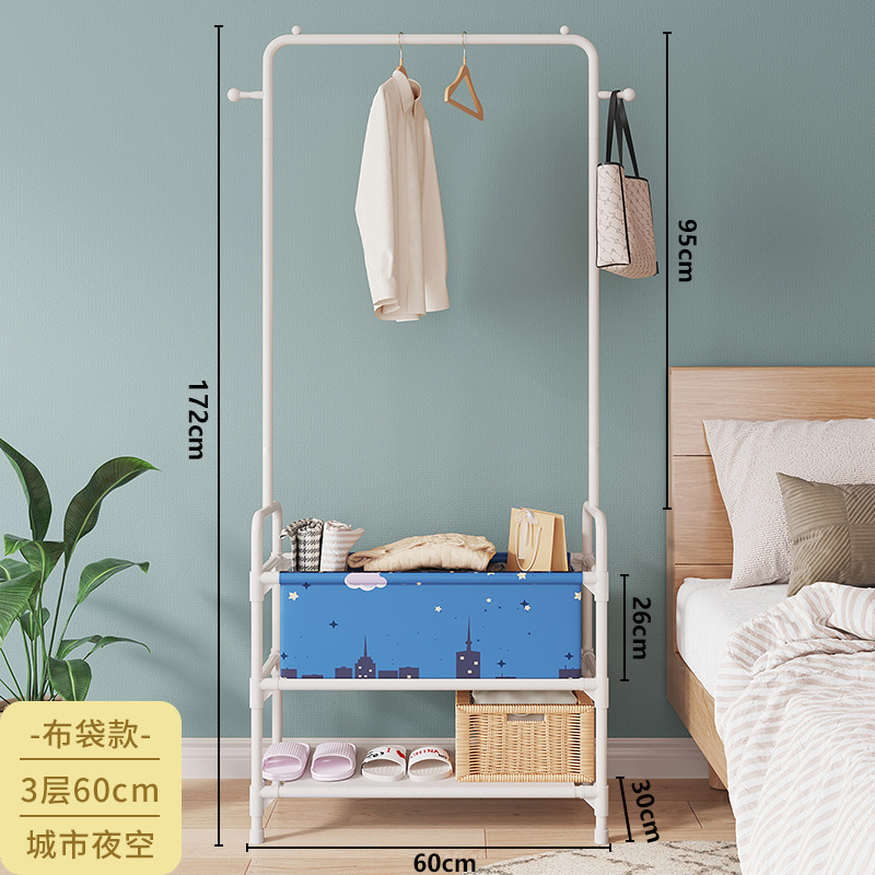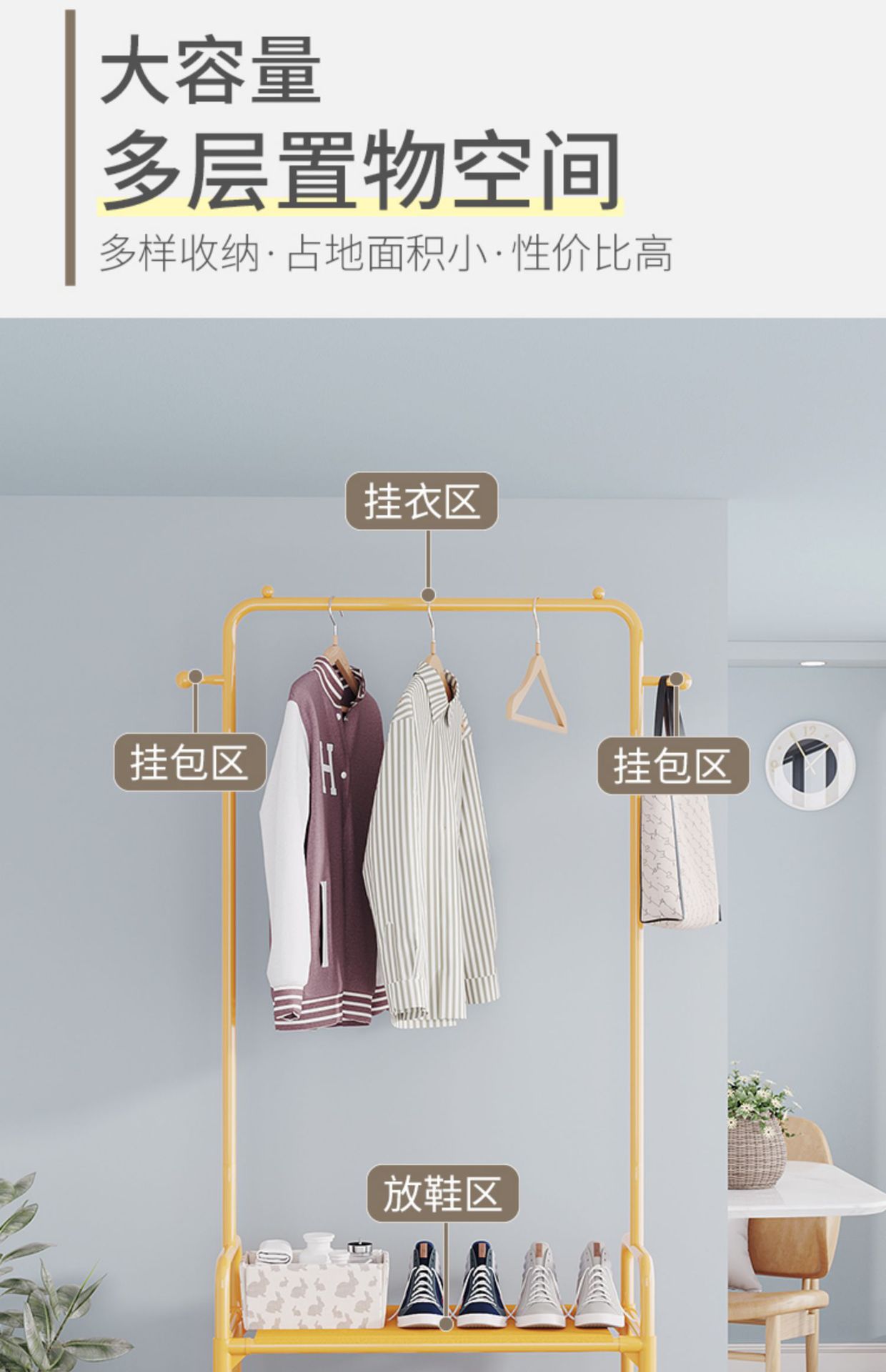 晾衣架落地简易家用卧室宿舍室内隔夜挂衣服架子杆收纳置物衣帽架