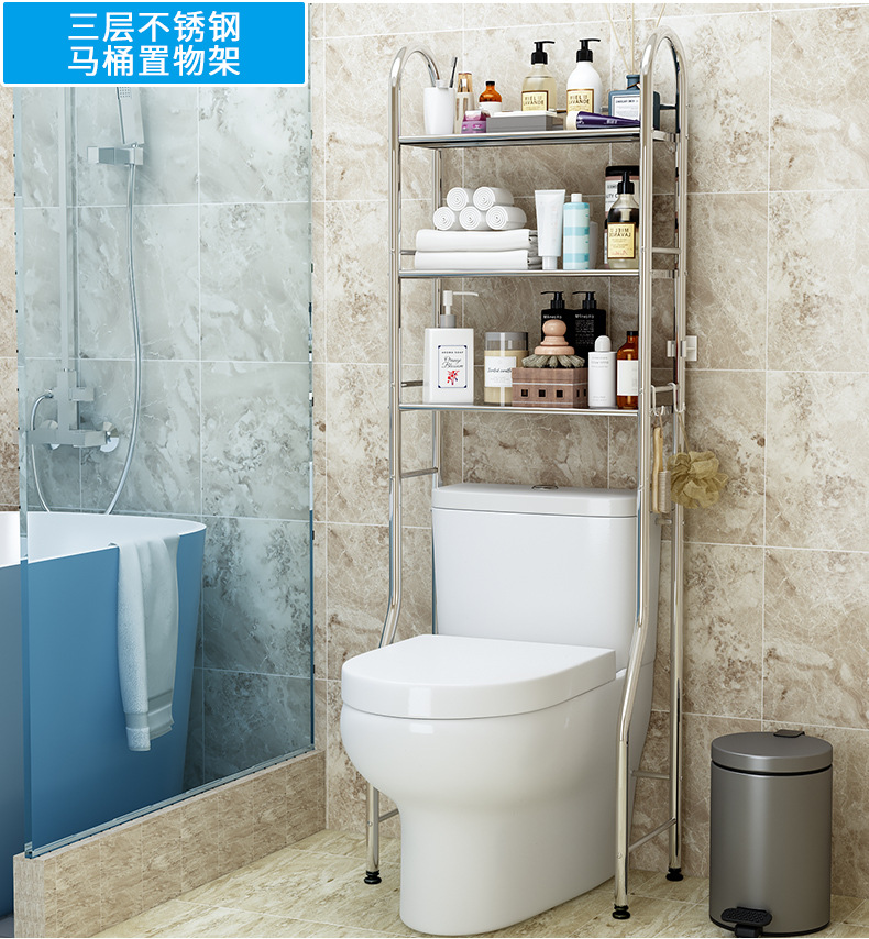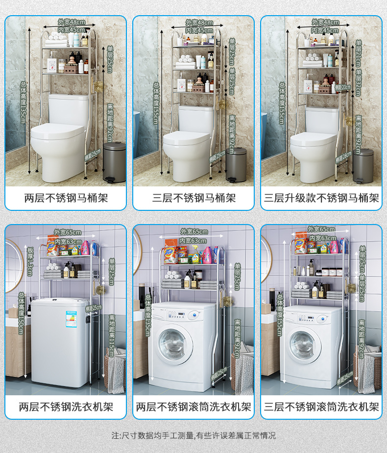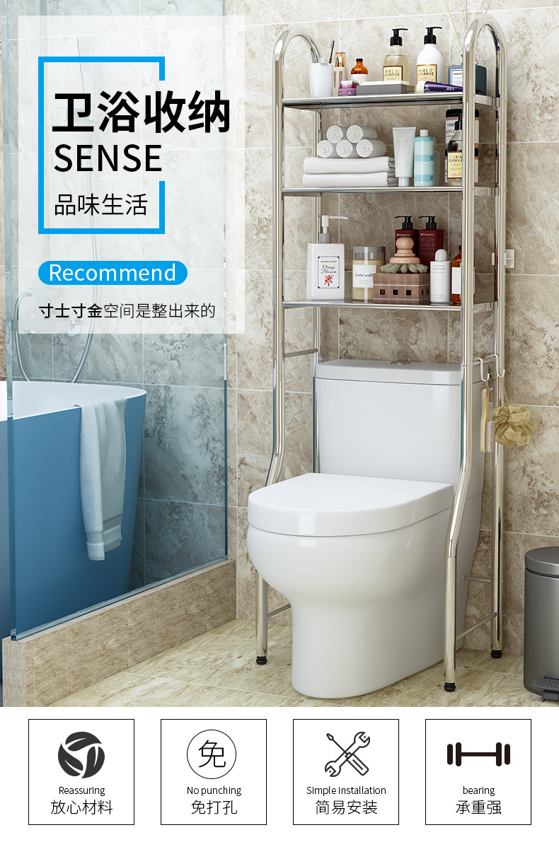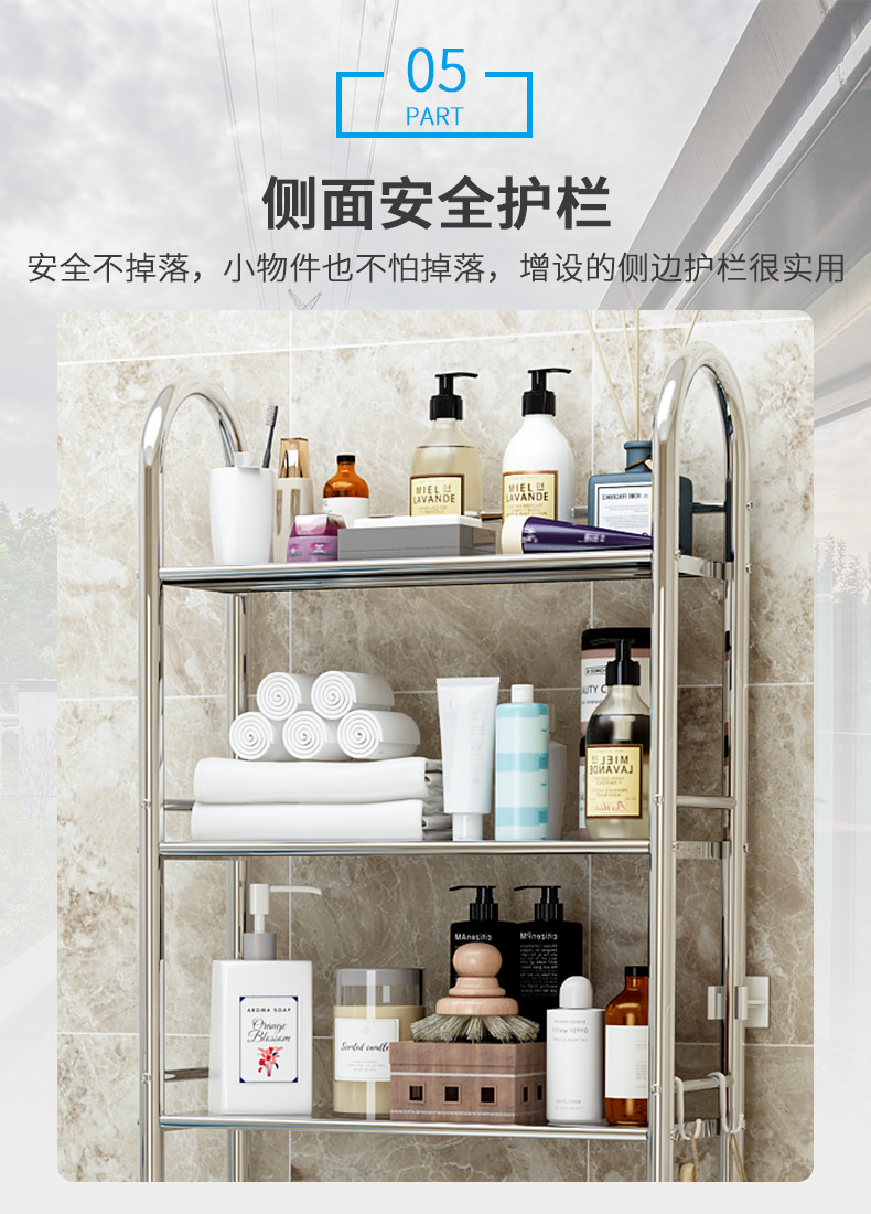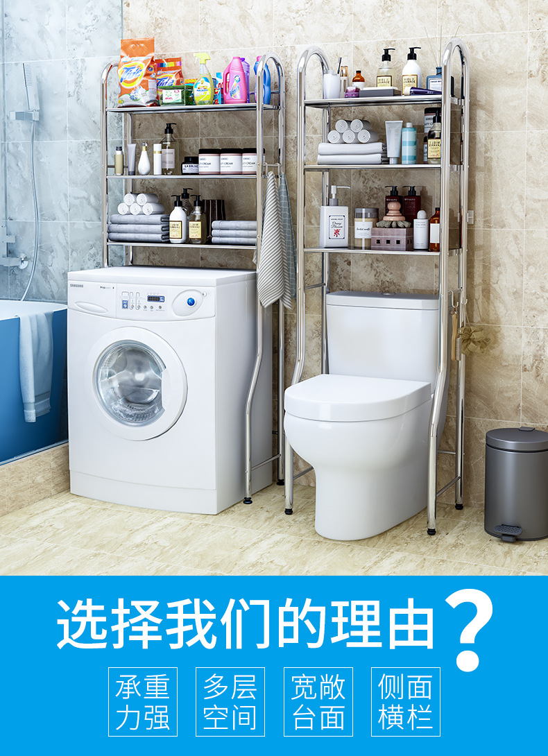 免打孔不锈钢卫生间浴室置物架厕所洗手间脸盆架洗衣机马桶收纳架