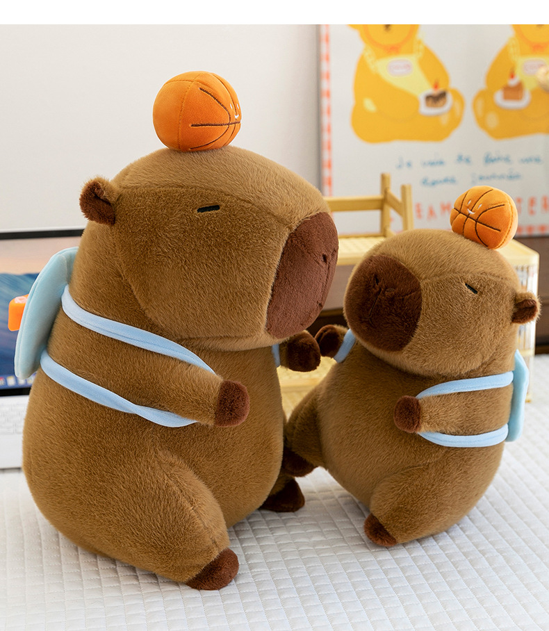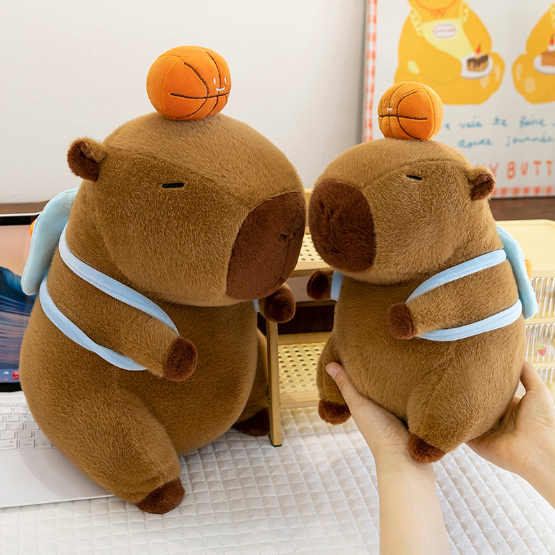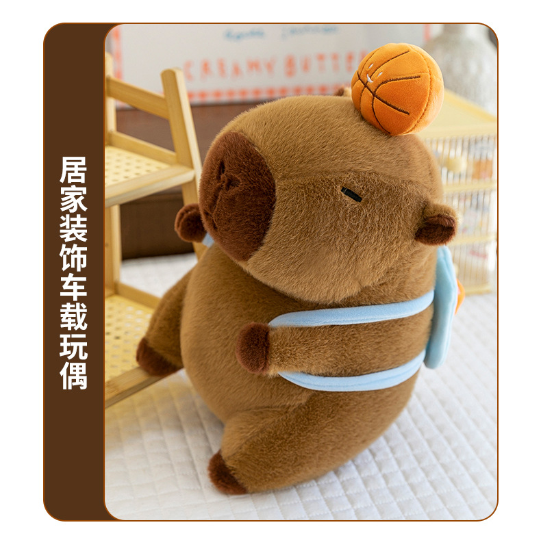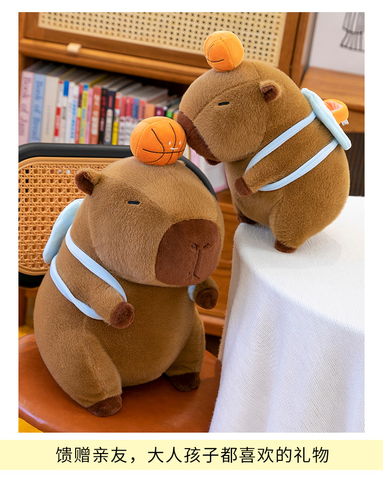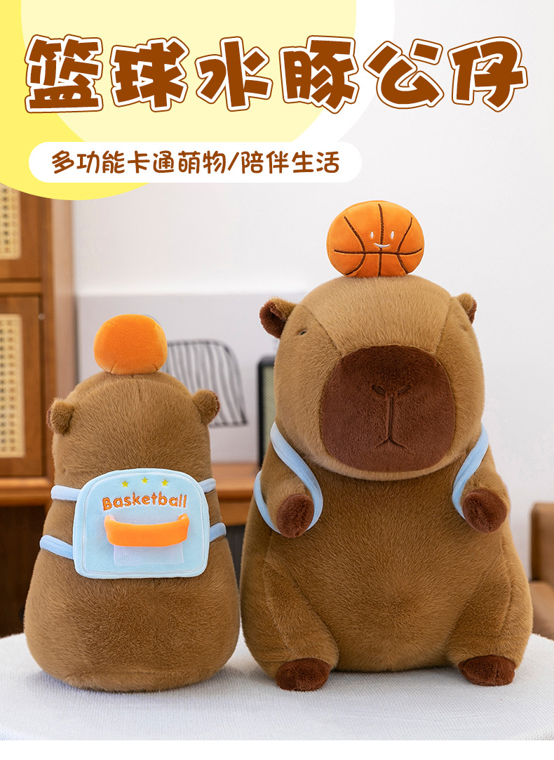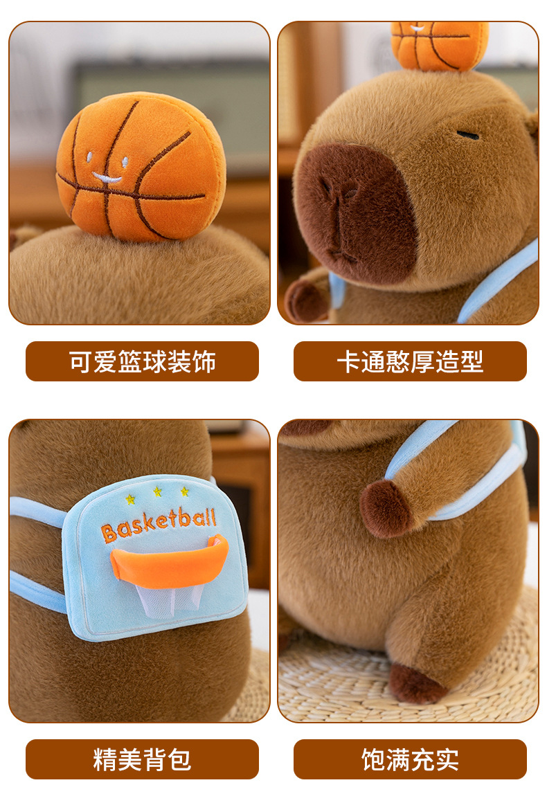 新款篮球背包水豚玩偶毛绒玩具创意卡皮巴拉背包公仔布偶娃娃礼物