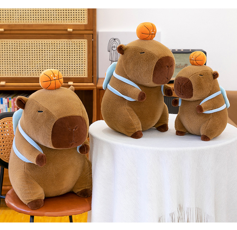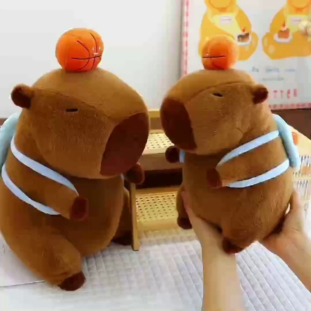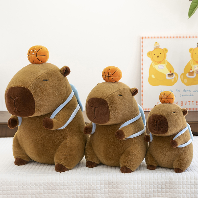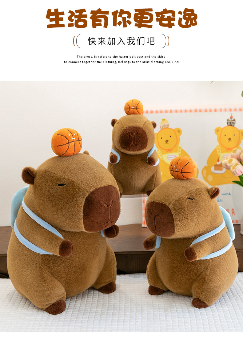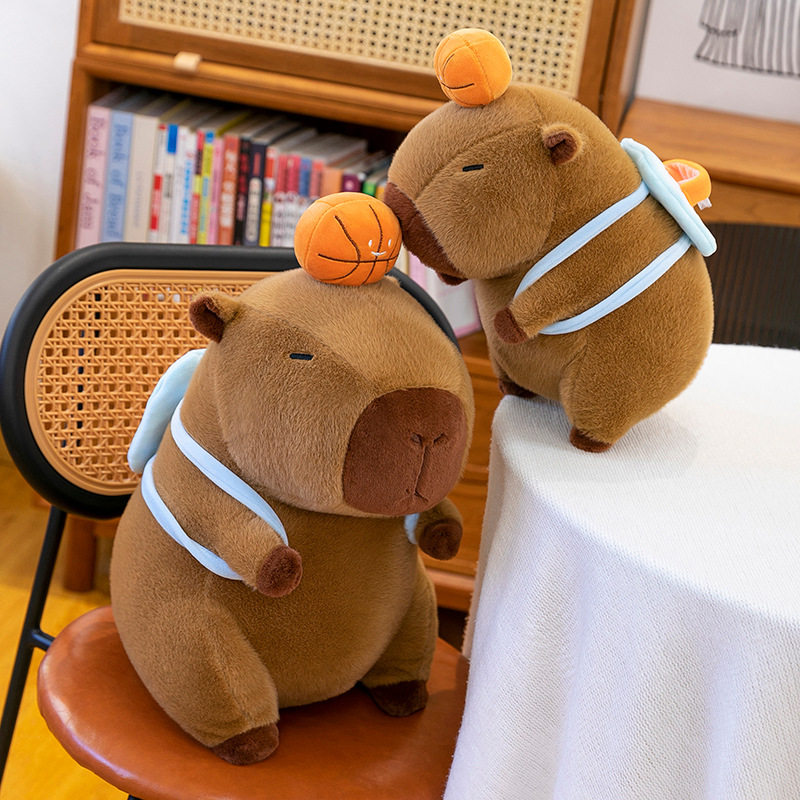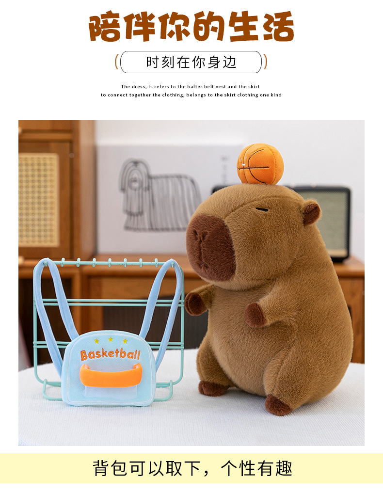 新款篮球背包水豚玩偶毛绒玩具创意卡皮巴拉背包公仔布偶娃娃礼物