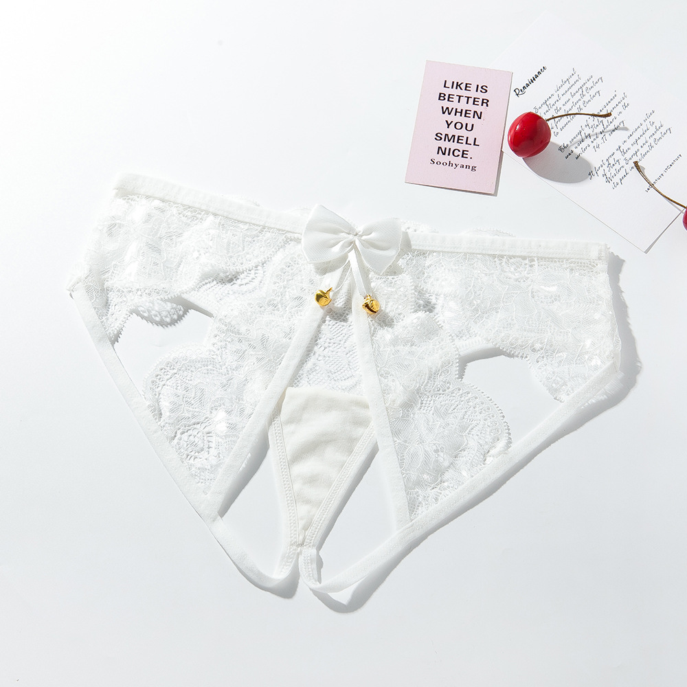 火辣分叉蕾丝诱惑情趣内裤女激情镂空美臀调情铃铛胖MM大码三角裤
