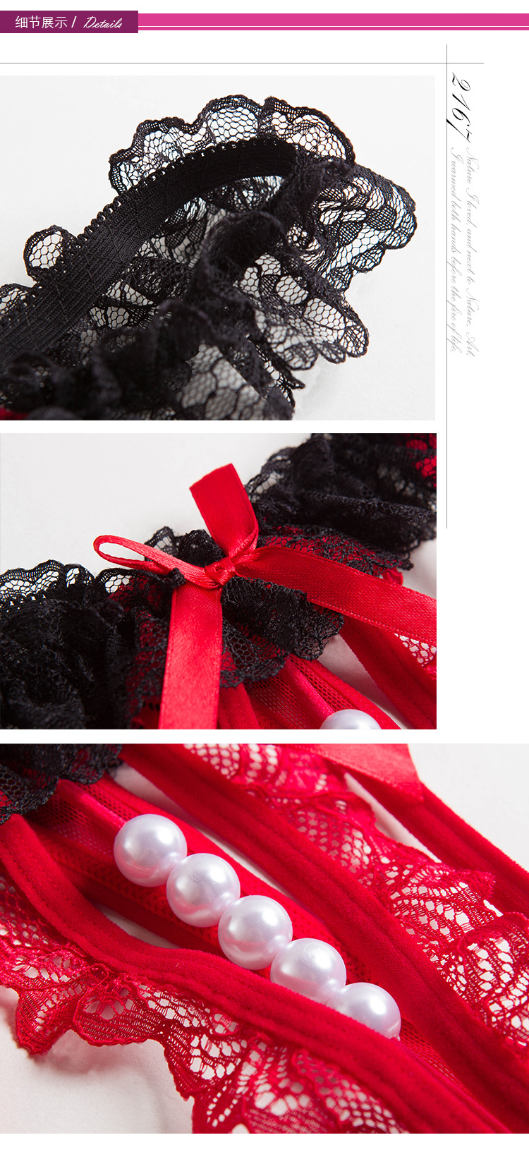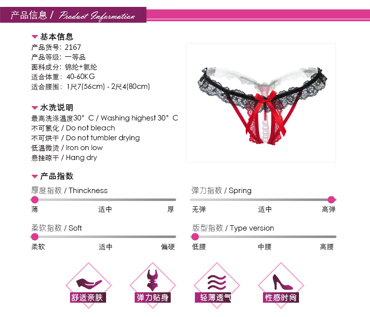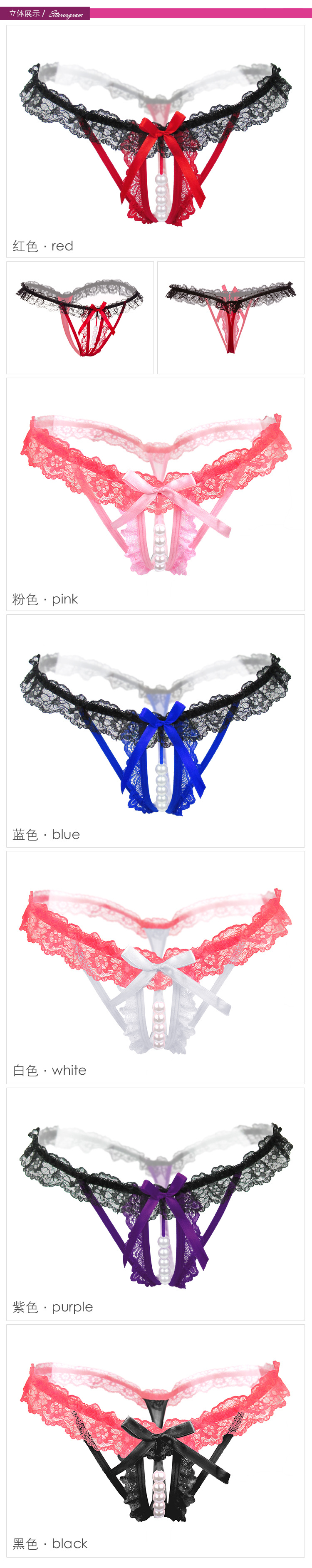 珍珠按摩开裆诱惑蕾丝丁字裤镂空性感女士内裤透明弹力T裤 2167