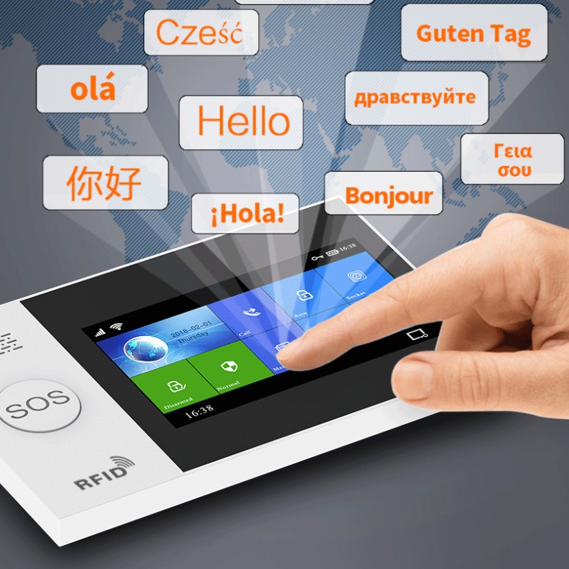 本款Wifi+GSM 、 WIFI 4G 报警器现配有 中文,英文,意大利,波兰,西班牙,俄文,德文,法文,多种语言,远销海外。