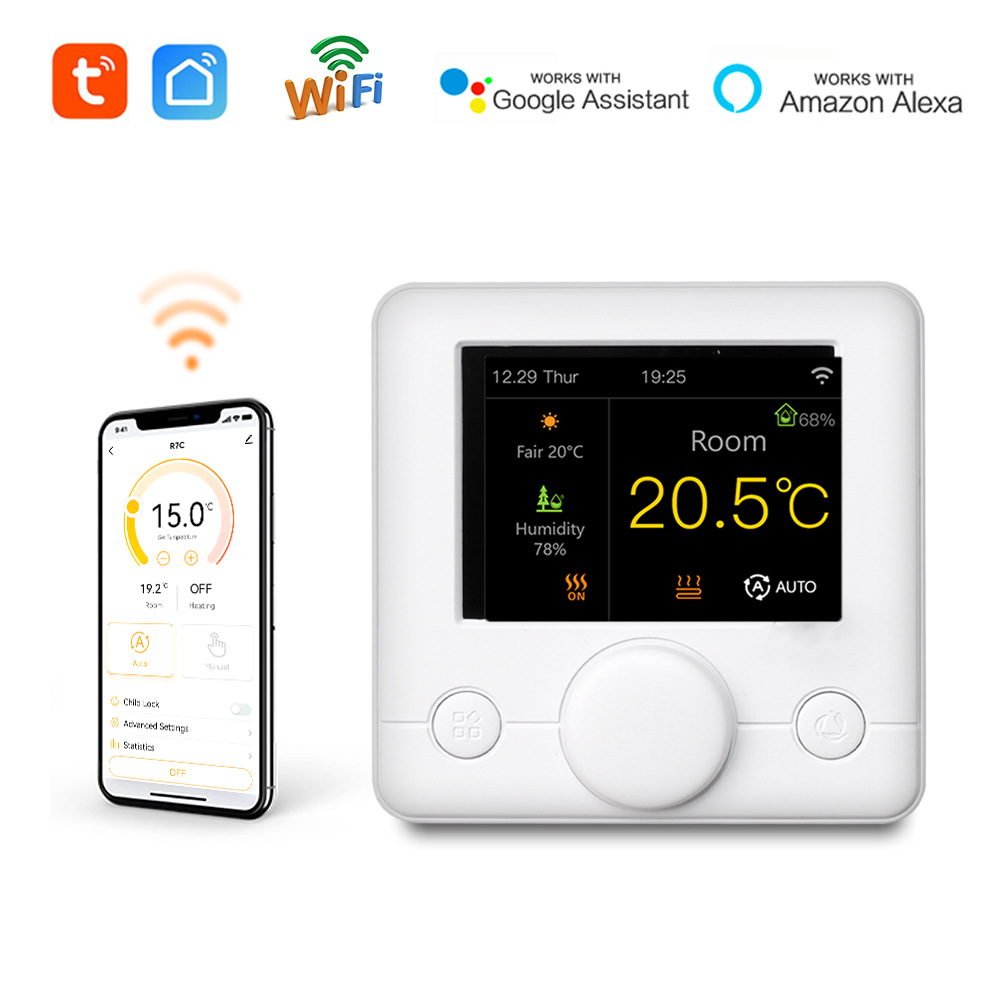 彩屏地暖WIFI智能采暖温控器电暖水暖燃气壁挂炉手机TUYA控制 R7C