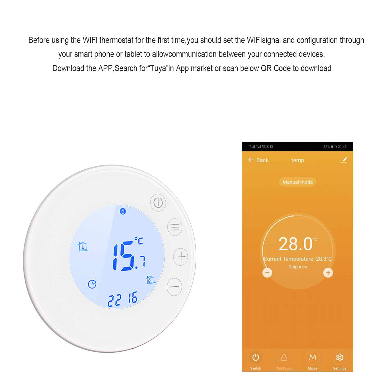 WIFI圆形调温触摸屏白色电地暖温控器16A智能涂鸦APP手机控制
