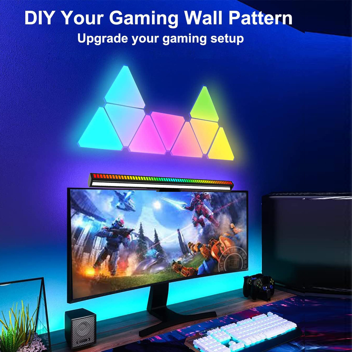 三角量子灯奇光板智能拾音节奏音乐灯电竞拼接氛围灯背景墙壁灯