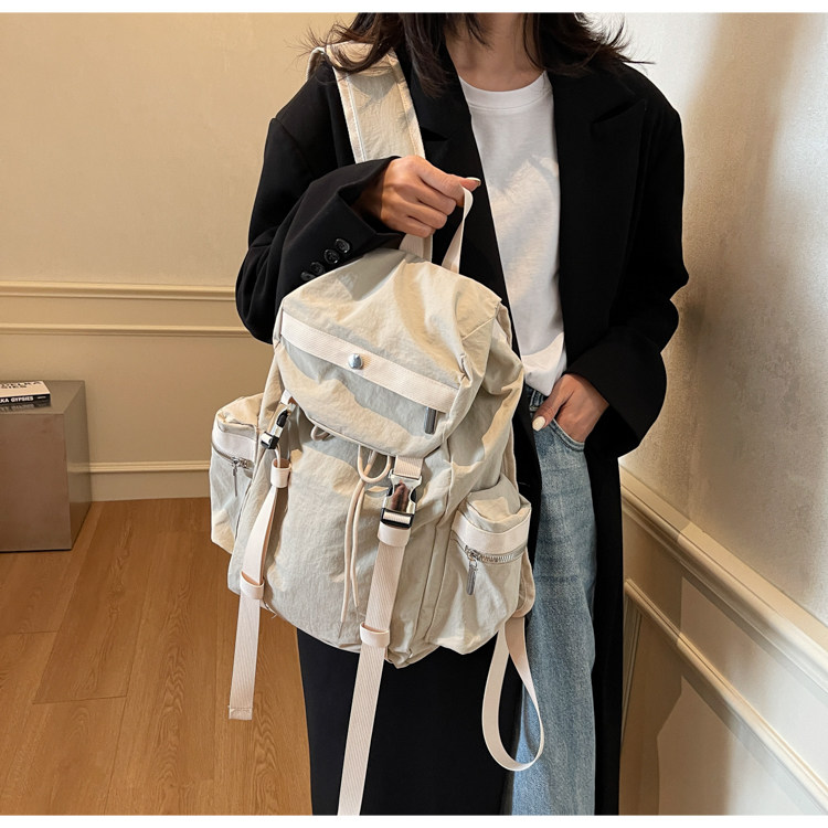森系校园日系简约ins女大学生慵懒风大容量尼龙布书包休闲双肩包