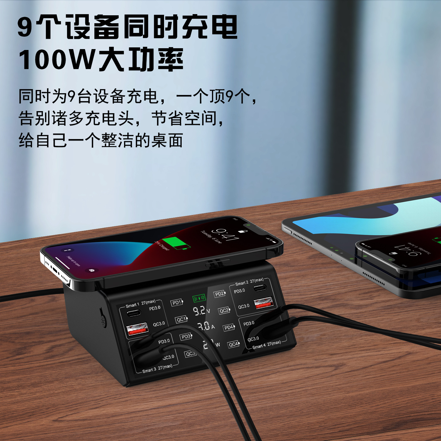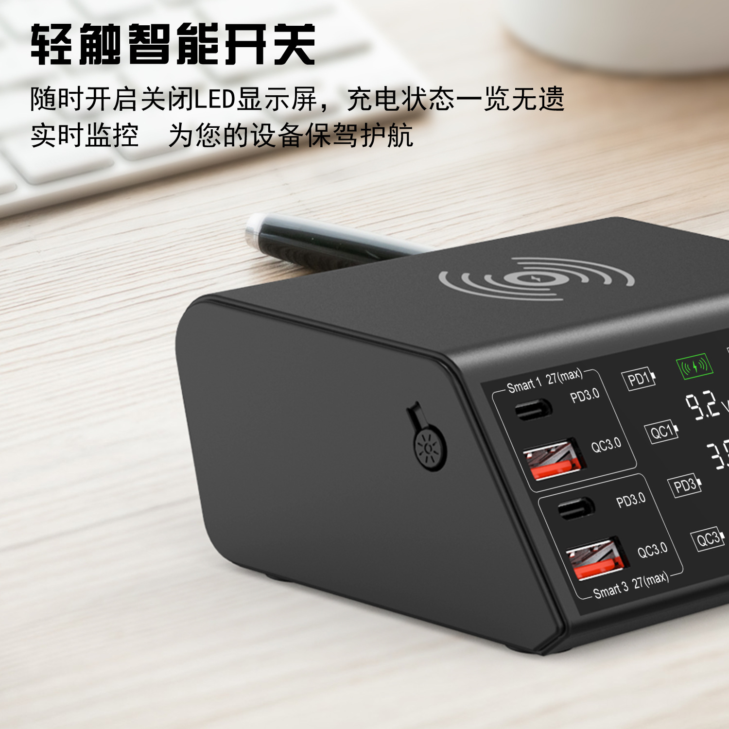新款多口手机充电器4路超级快充100W总功率超强兼容LED智能数显屏