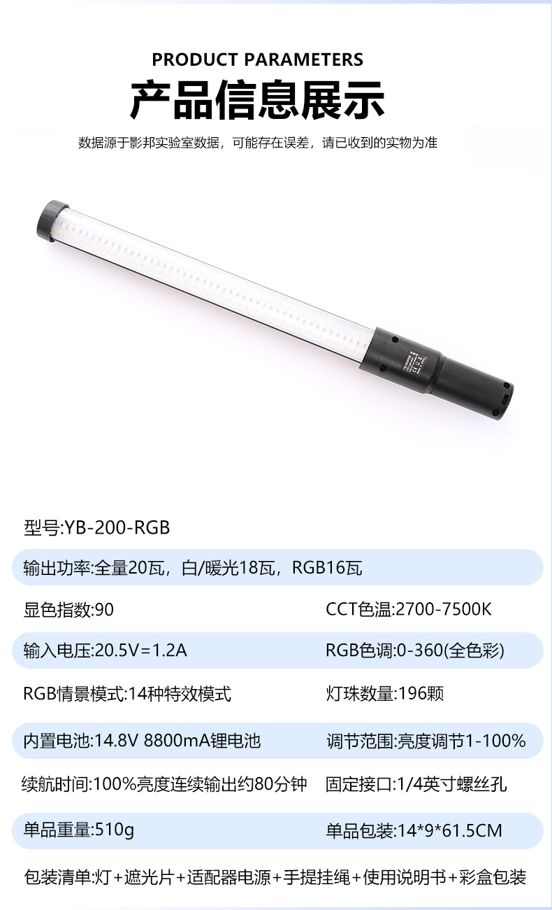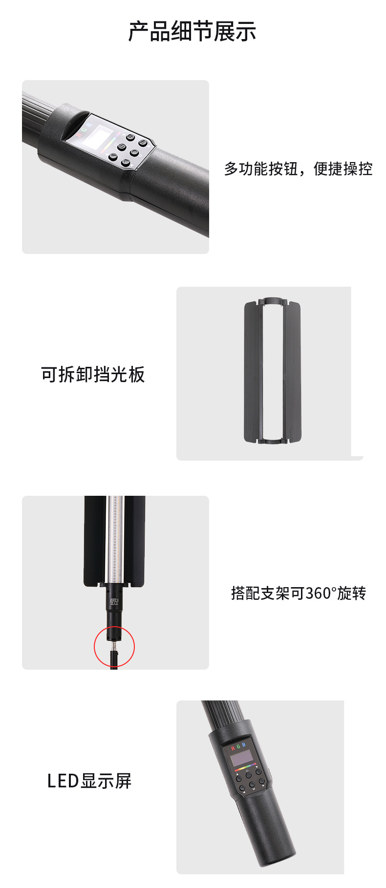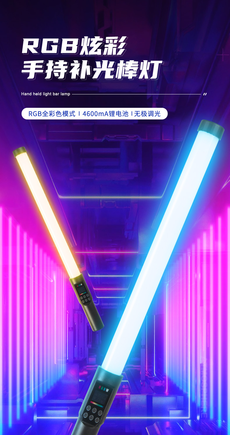 手持棒灯全彩RGB灯棒摄影灯直播补光灯发丝拍摄led移动光棒补光棒