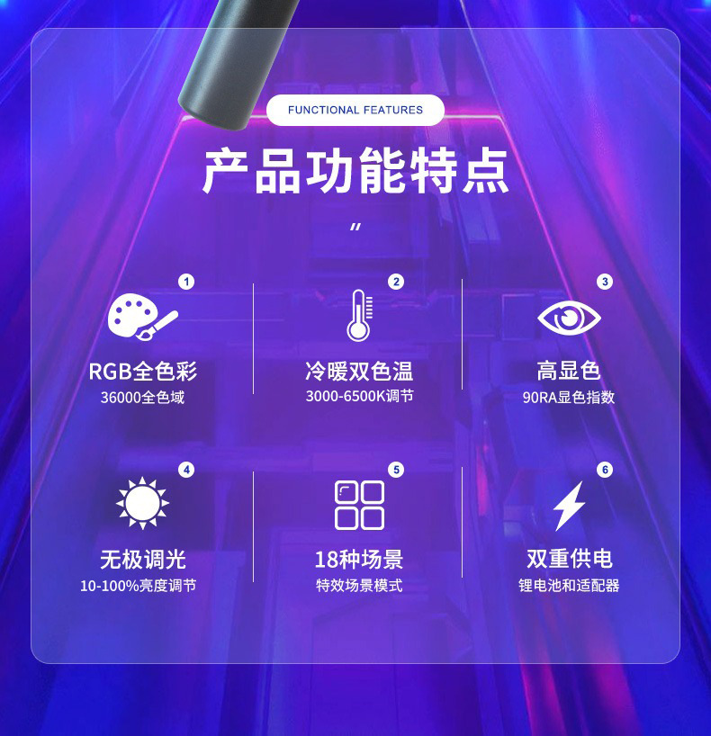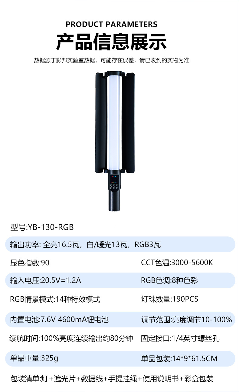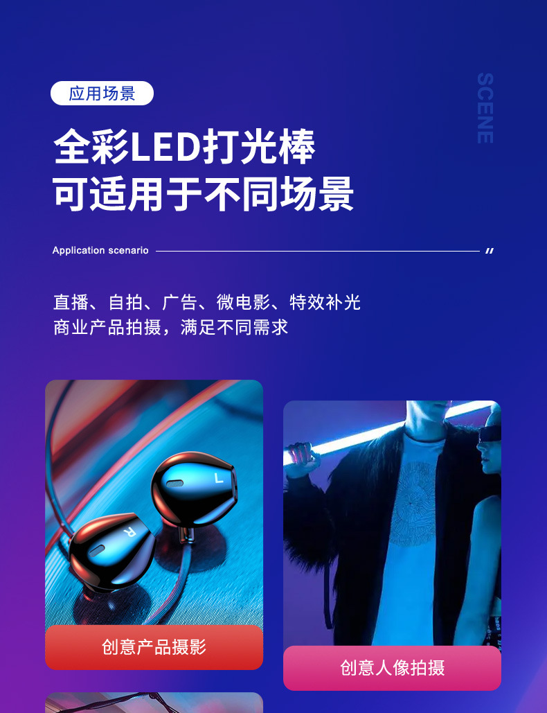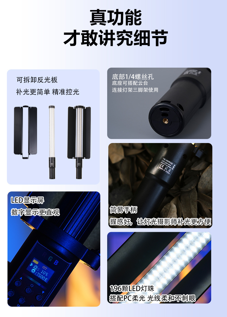 手持棒灯全彩RGB灯棒摄影灯直播补光灯发丝拍摄led移动光棒补光棒