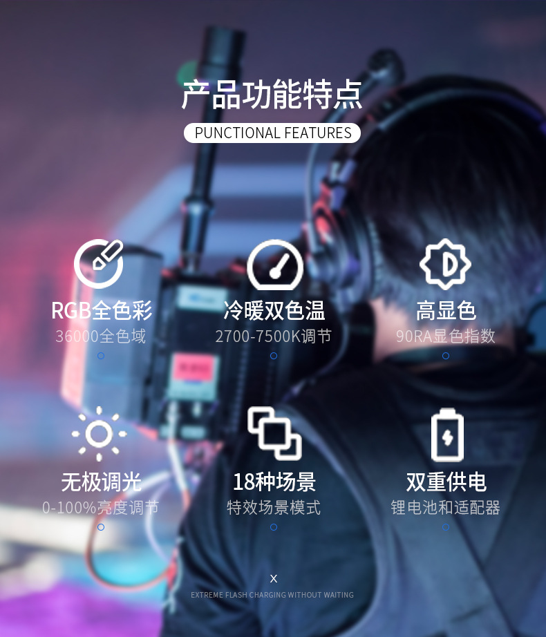RGB全色彩灯棒手持棒灯LED补光灯直播间氛围灯户外拍照摄影打光灯