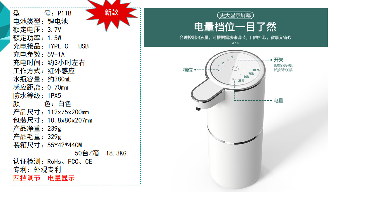 P11B自动皂液器感应泡沫洗手机电动皂液机洗手液挂壁桌面酒店