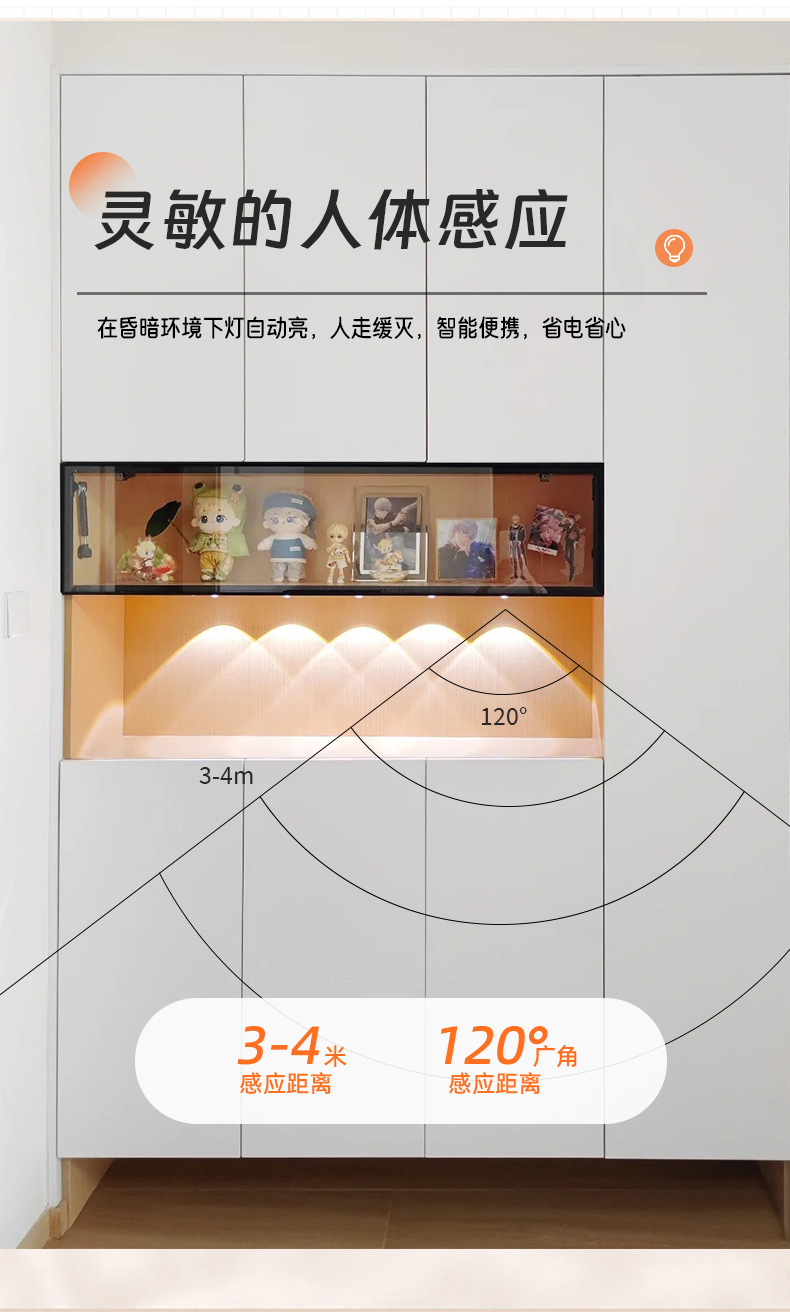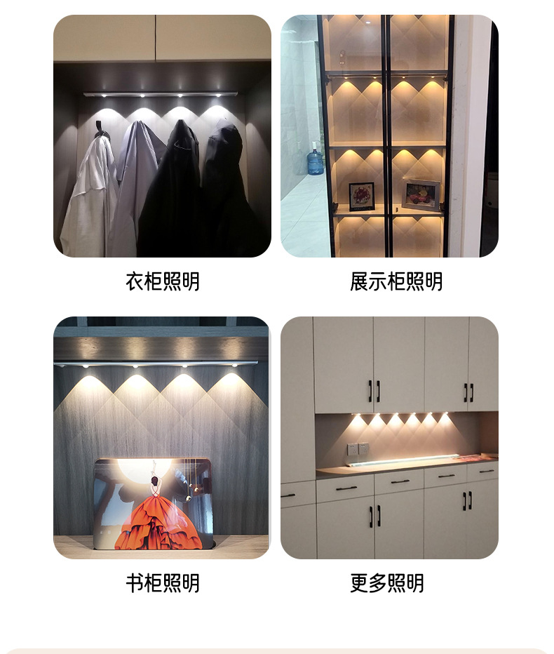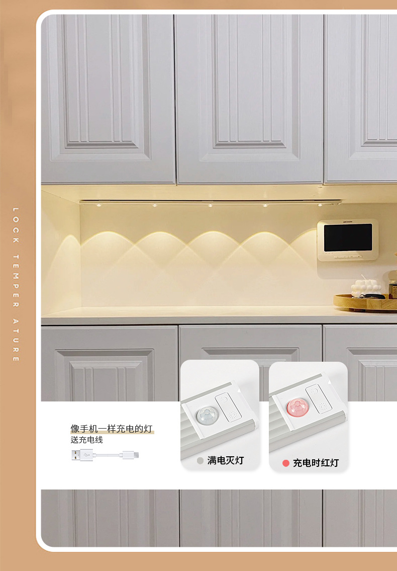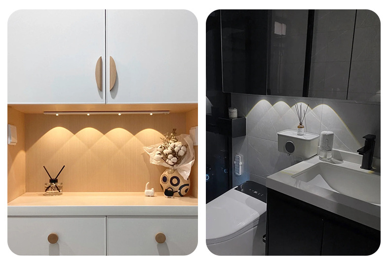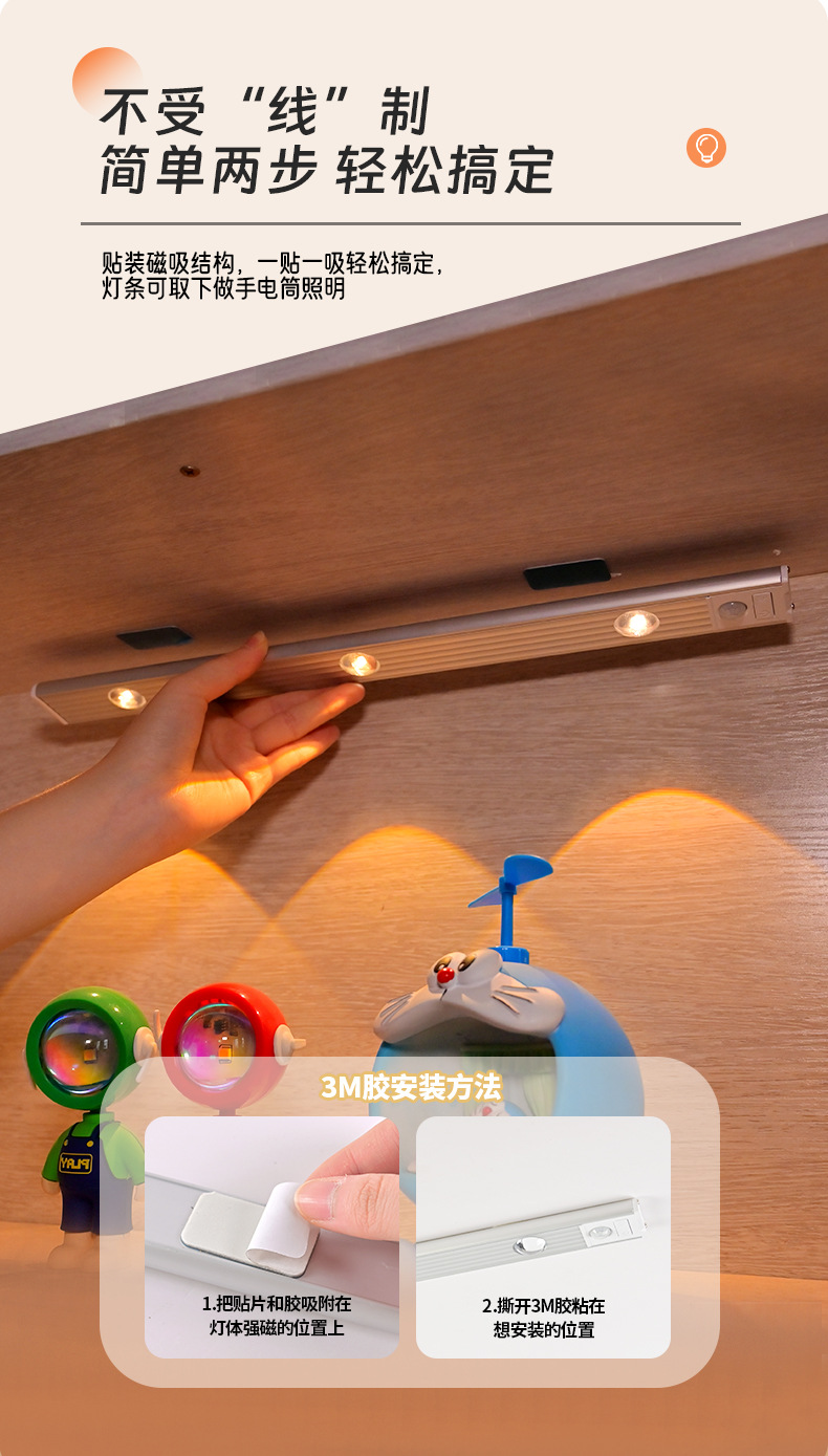led人体感应灯超薄猫眼山丘波纹灯条充电式衣柜橱柜灯带小夜灯