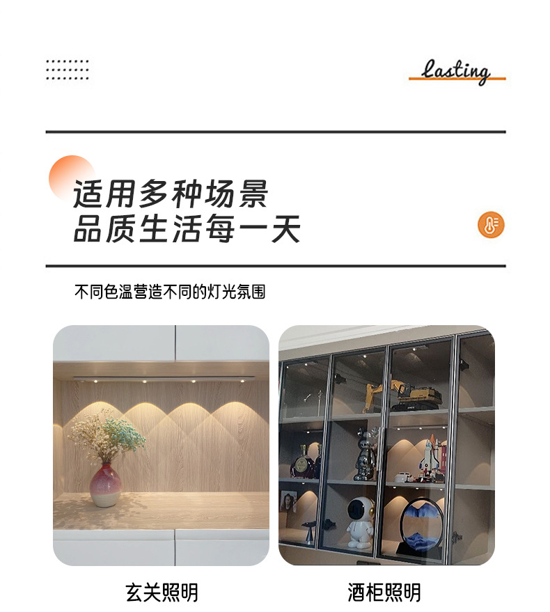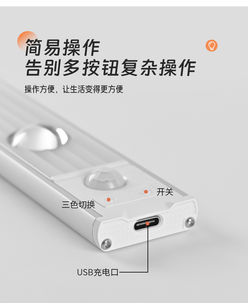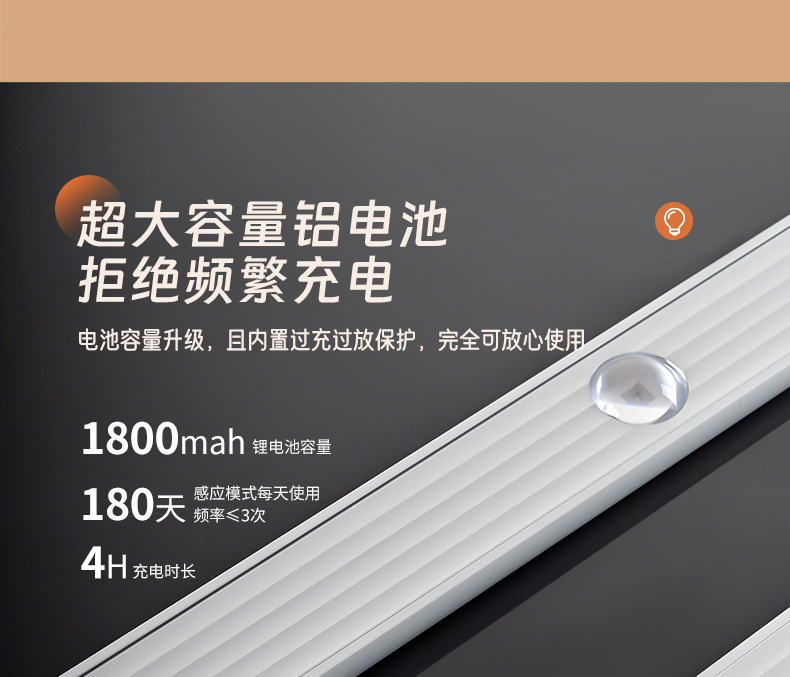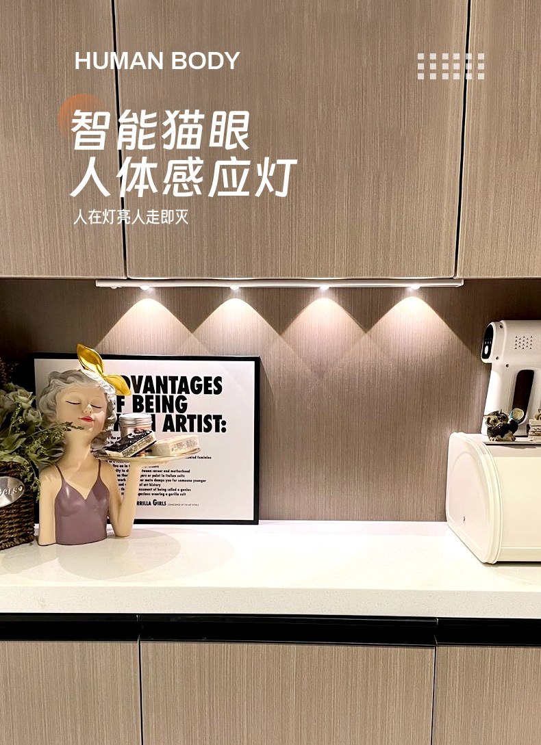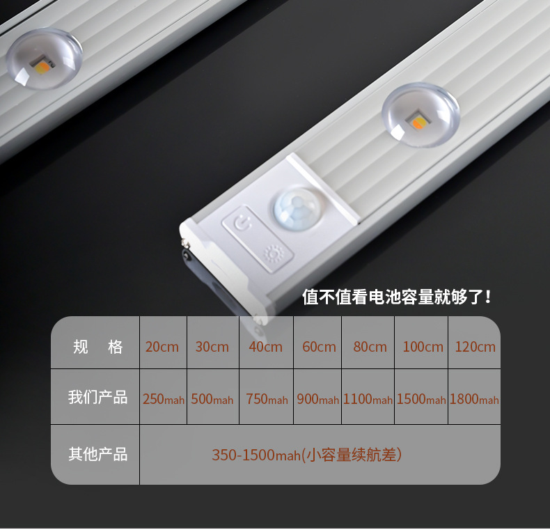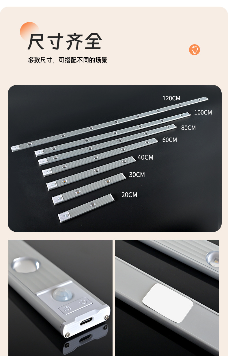 led人体感应灯超薄猫眼山丘波纹灯条充电式衣柜橱柜灯带小夜灯