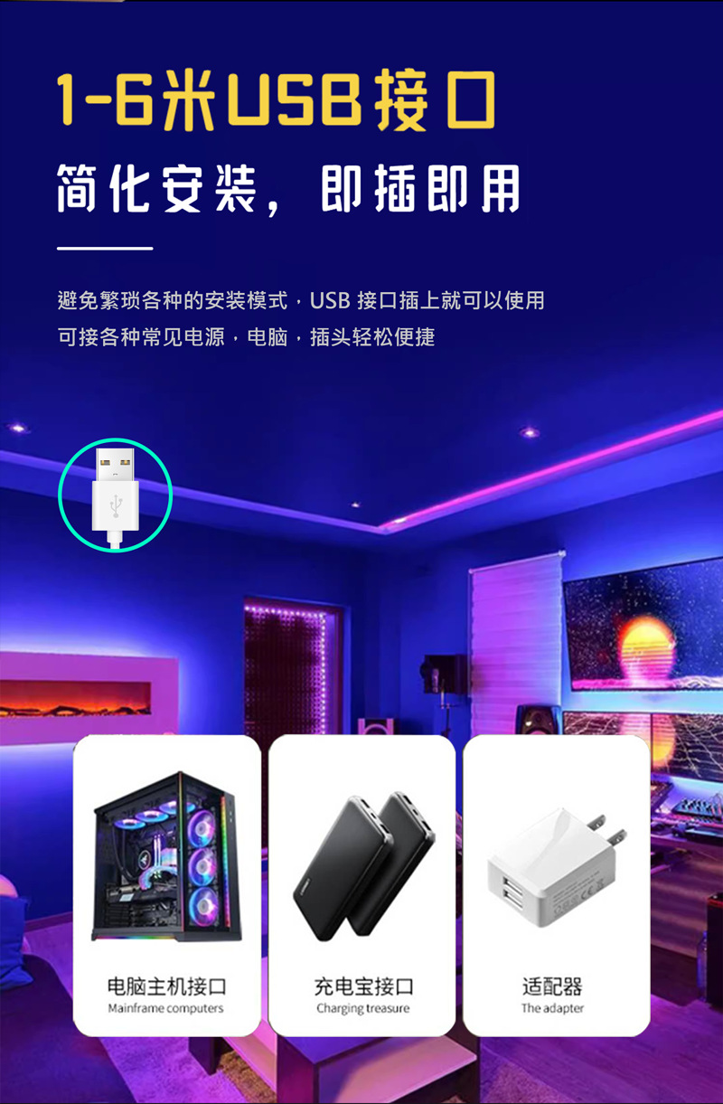 | 5v [2 m] usb interface no trace stickers/buckle magic color light strip(5V【2米】USB接口 无痕贴/卡扣 幻彩灯带) | USD $11.57 | 154511 piece available |