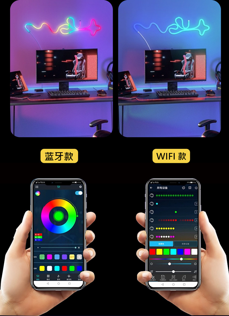 跨境智能贴片式蓝牙幻彩音乐挂式霓虹灯涂鸦拾音造型音乐霓虹灯带