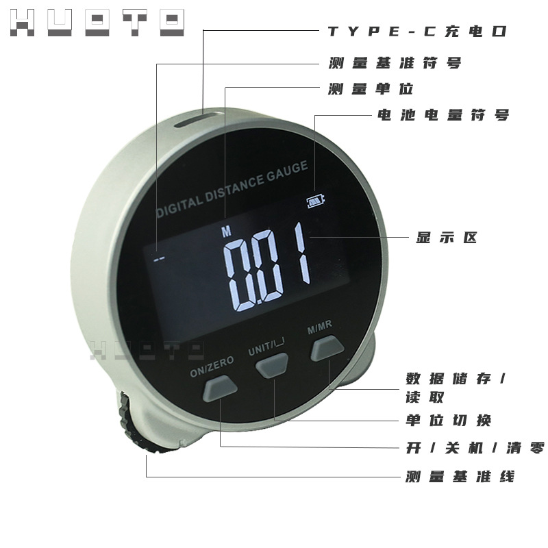 HUOTO电子测距仪/尺 量衣尺直曲面滚动测量多功能数显滚轮电子尺